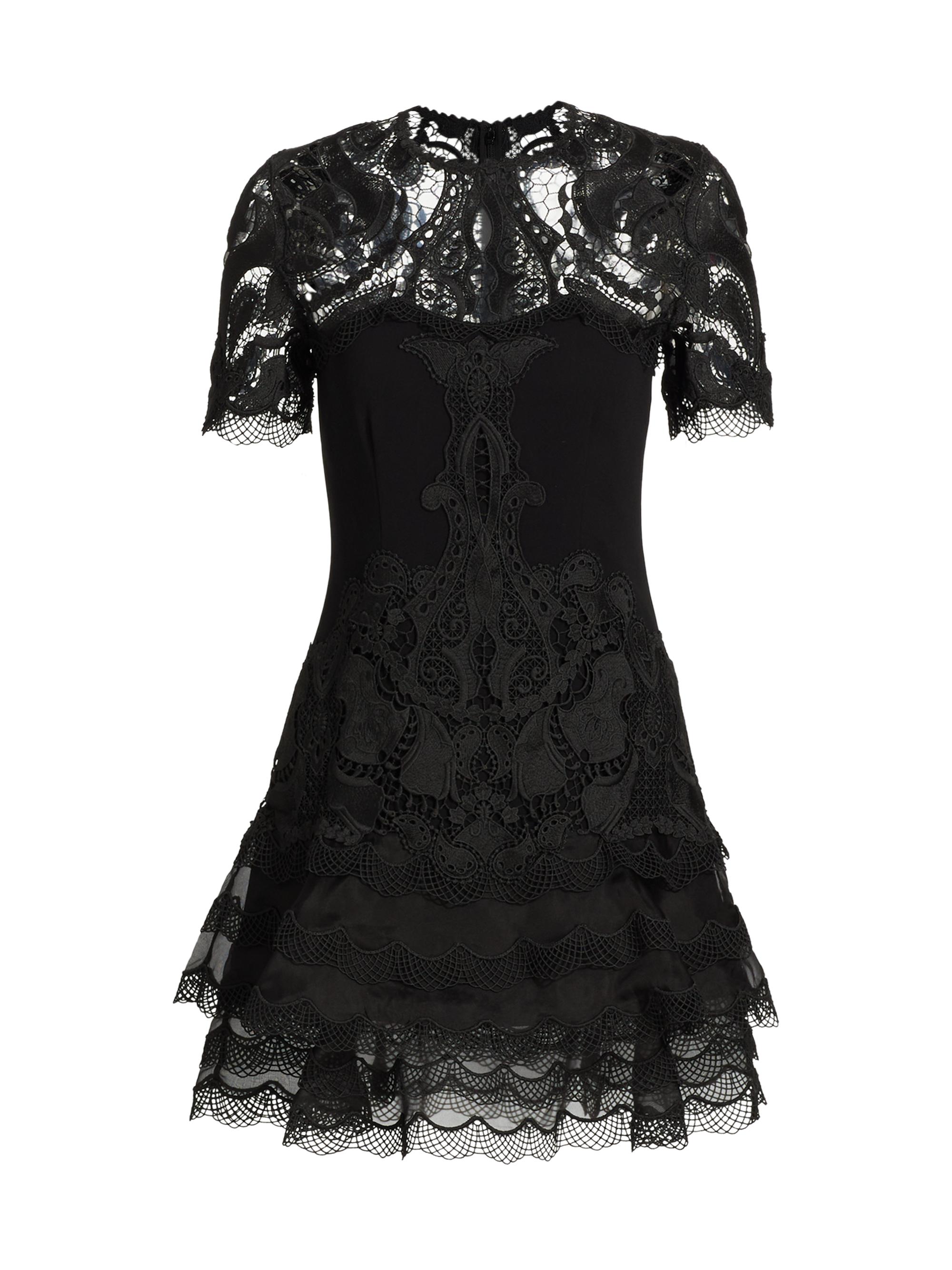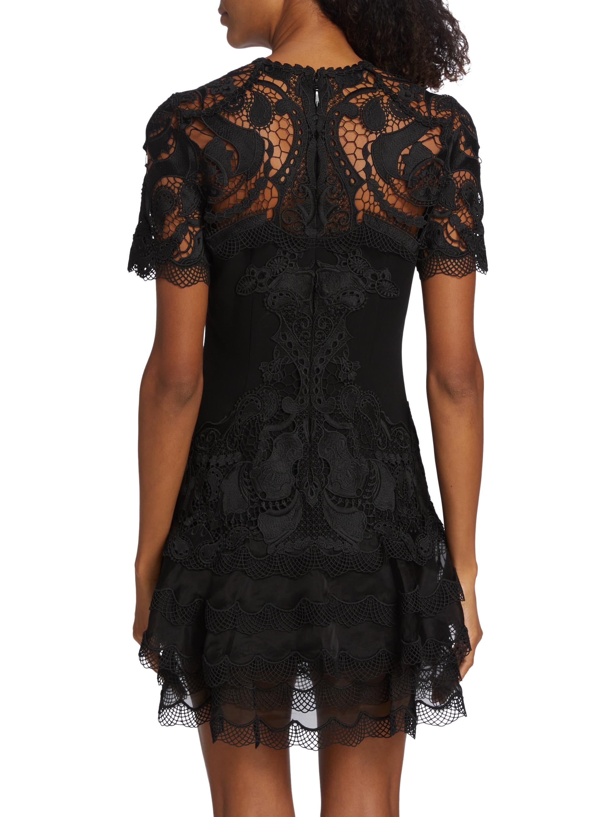 SIMKHAI Lace Applique A-Line Minidress BLACK