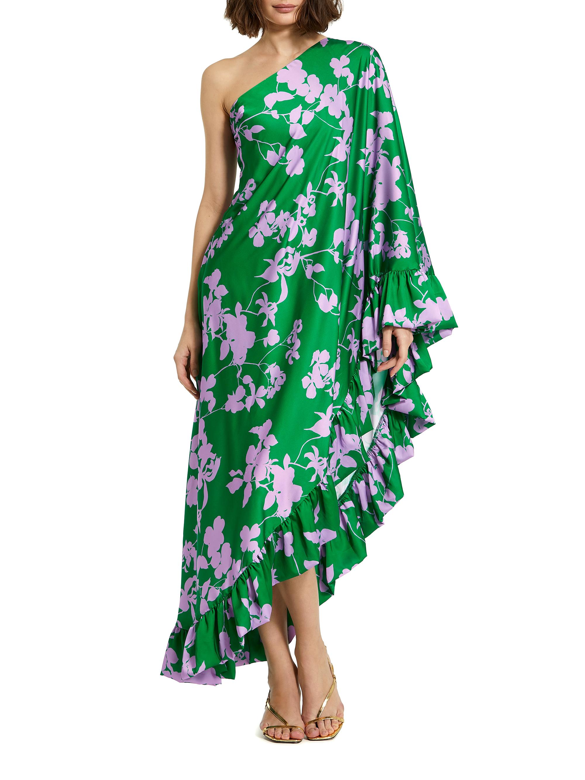Mac Duggal Floral Draped Asymmetric Maxi Dress