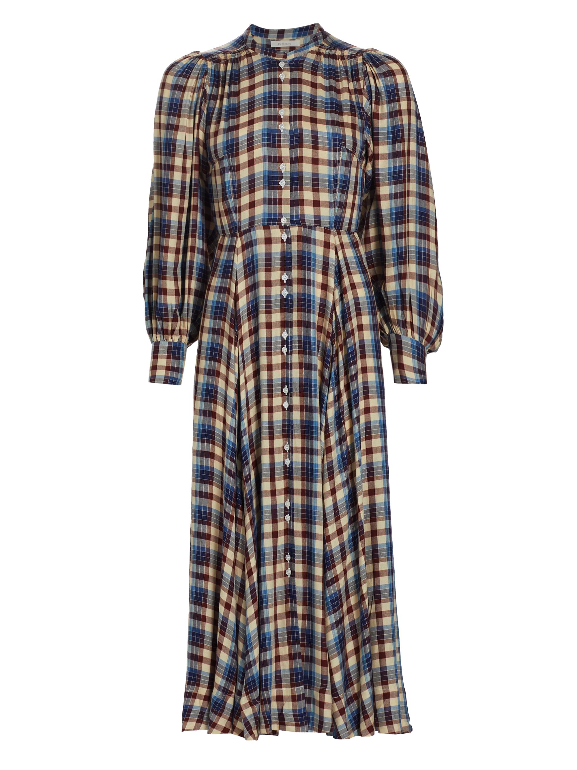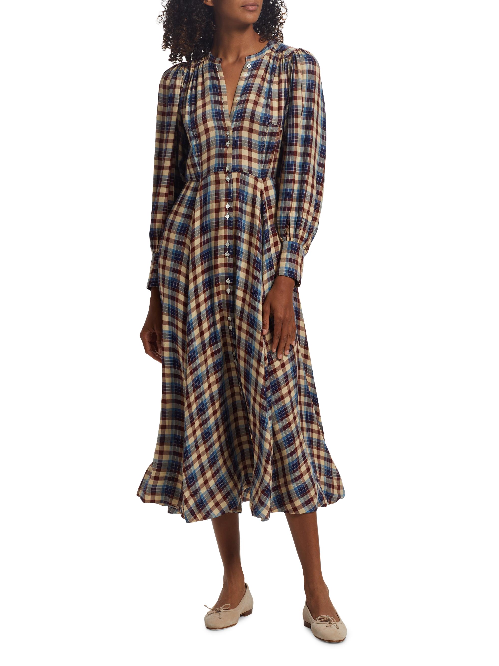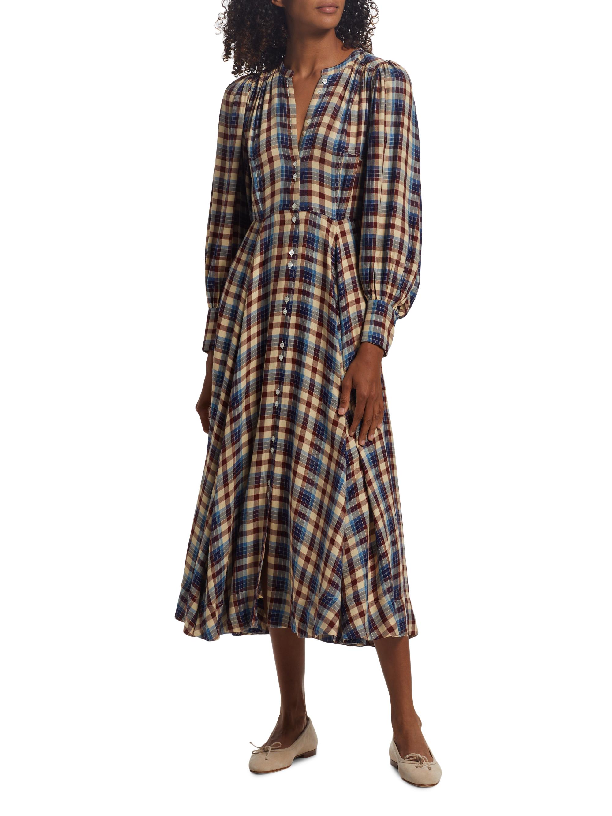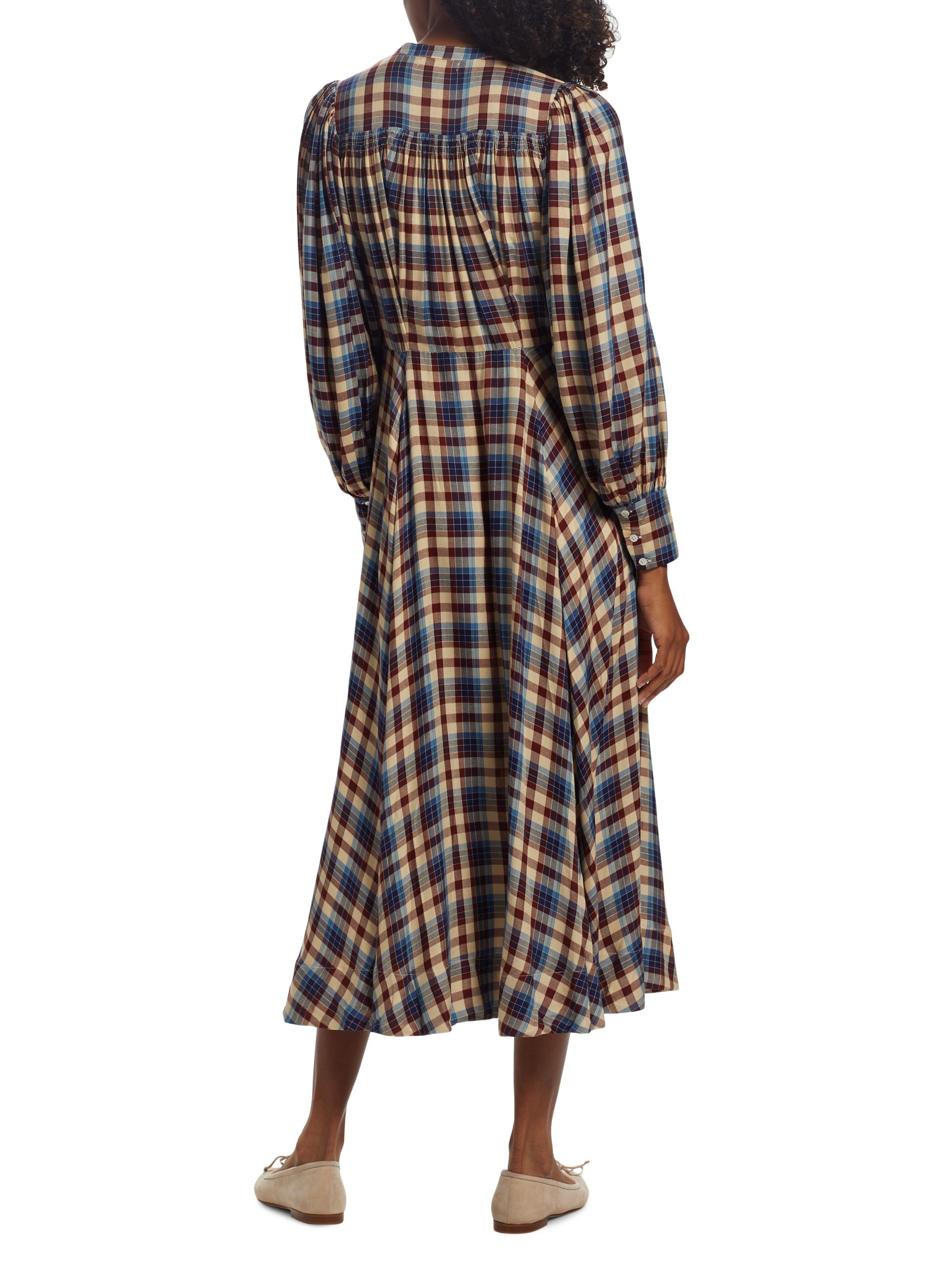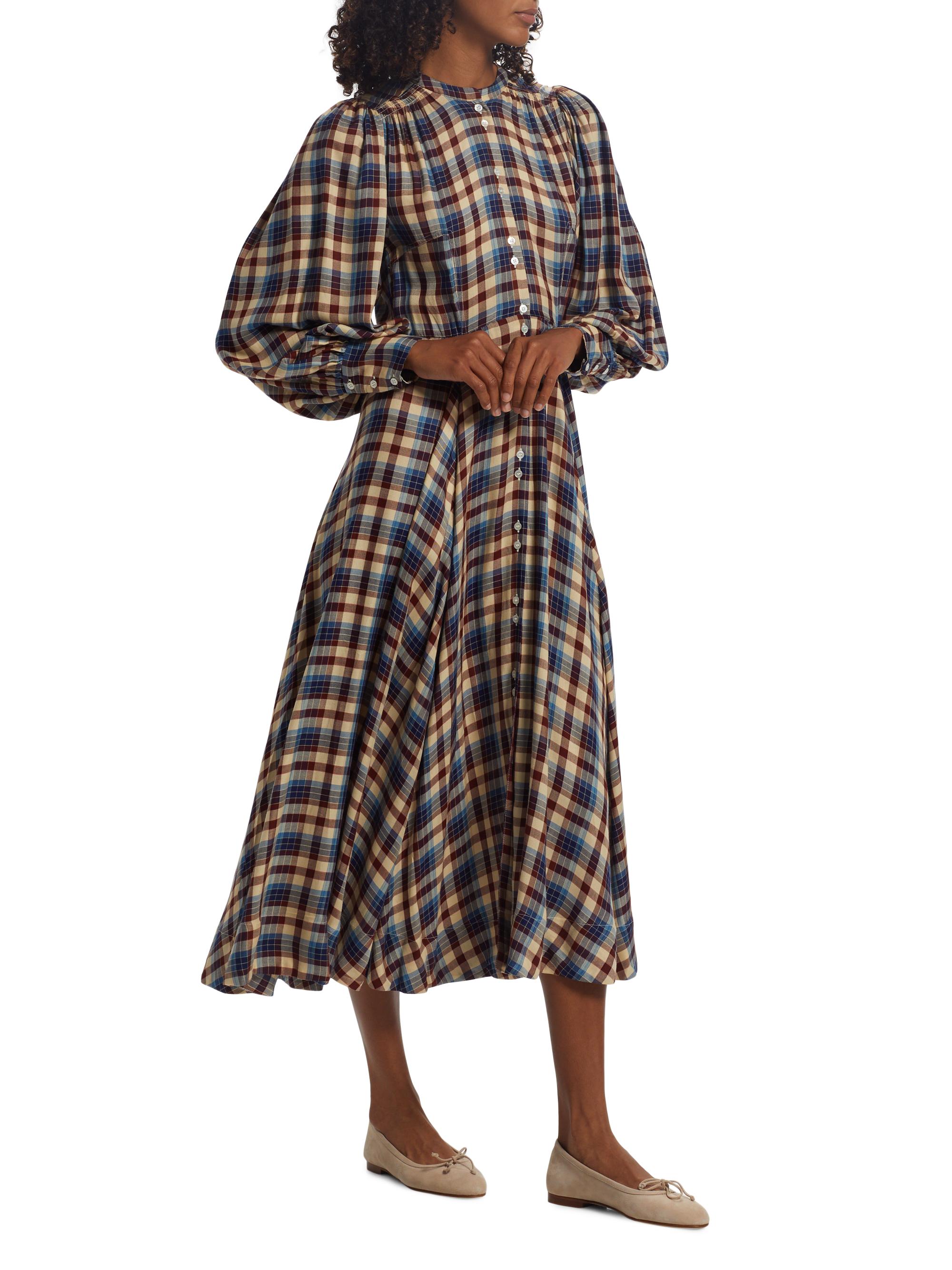 DOEN Edlynne Plaid Balloon-Sleeve Midi-Dress