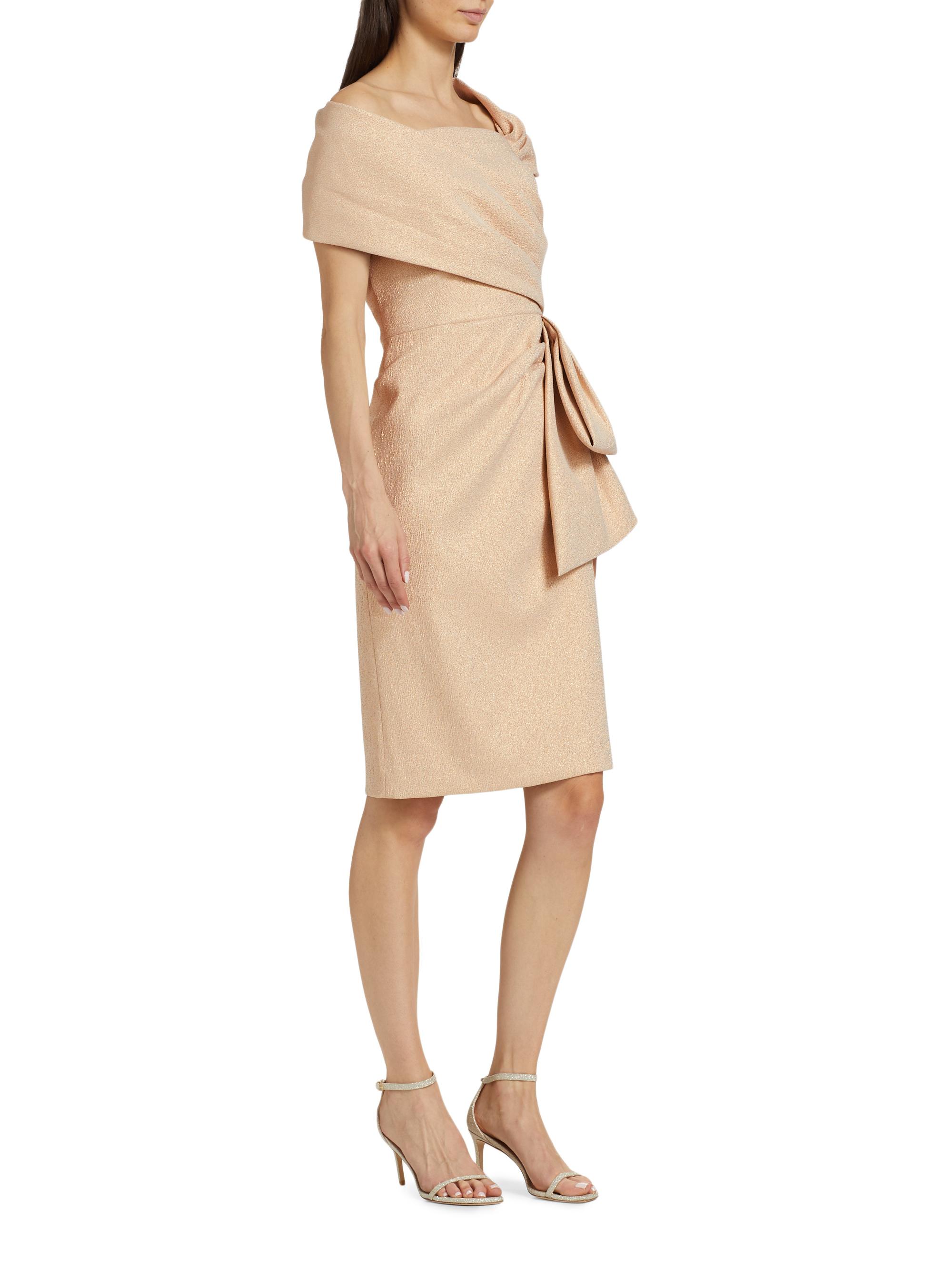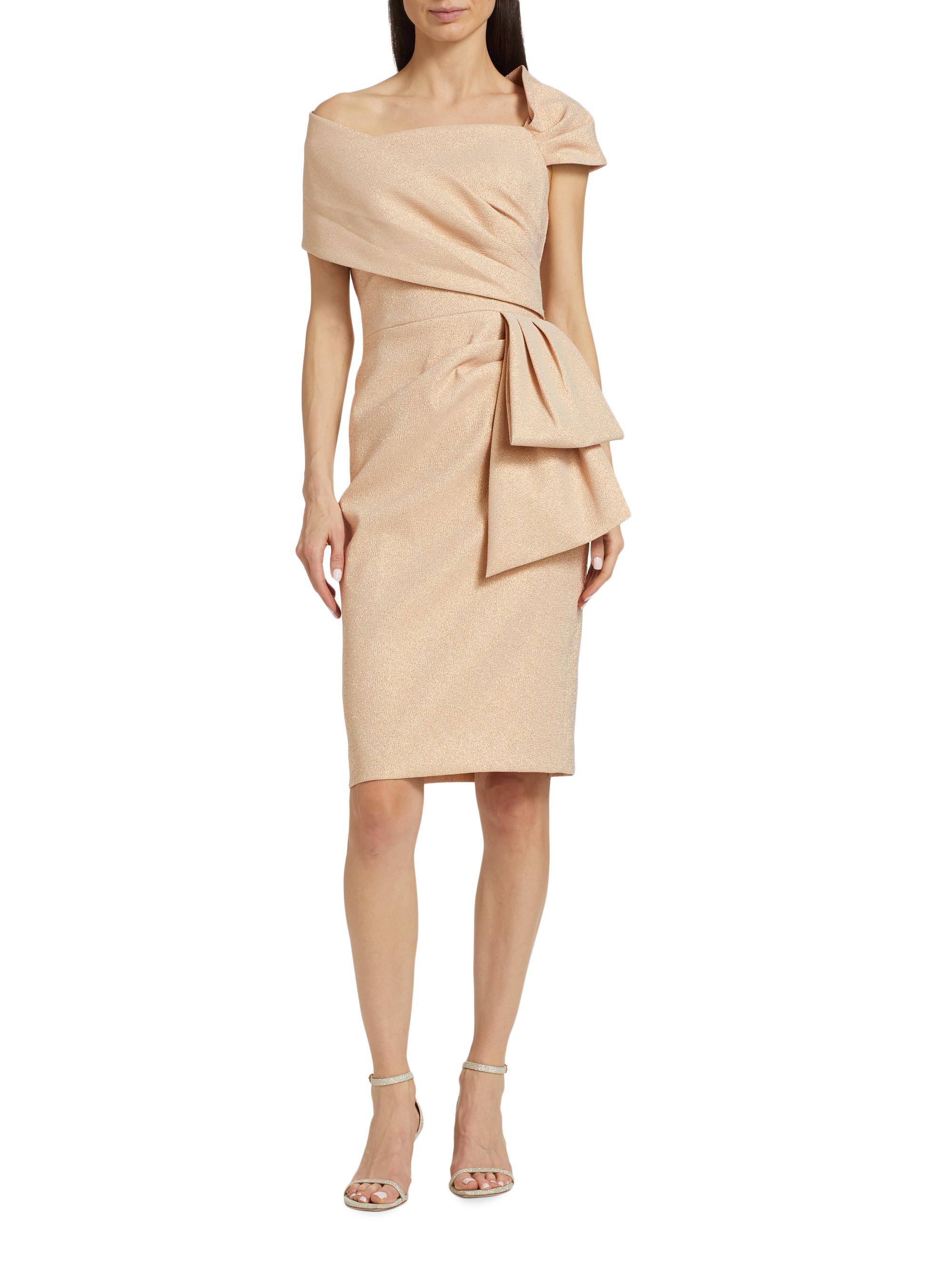 Teri Jon by Rickie Freeman Metallic Jacquard Bow Sheath Dress