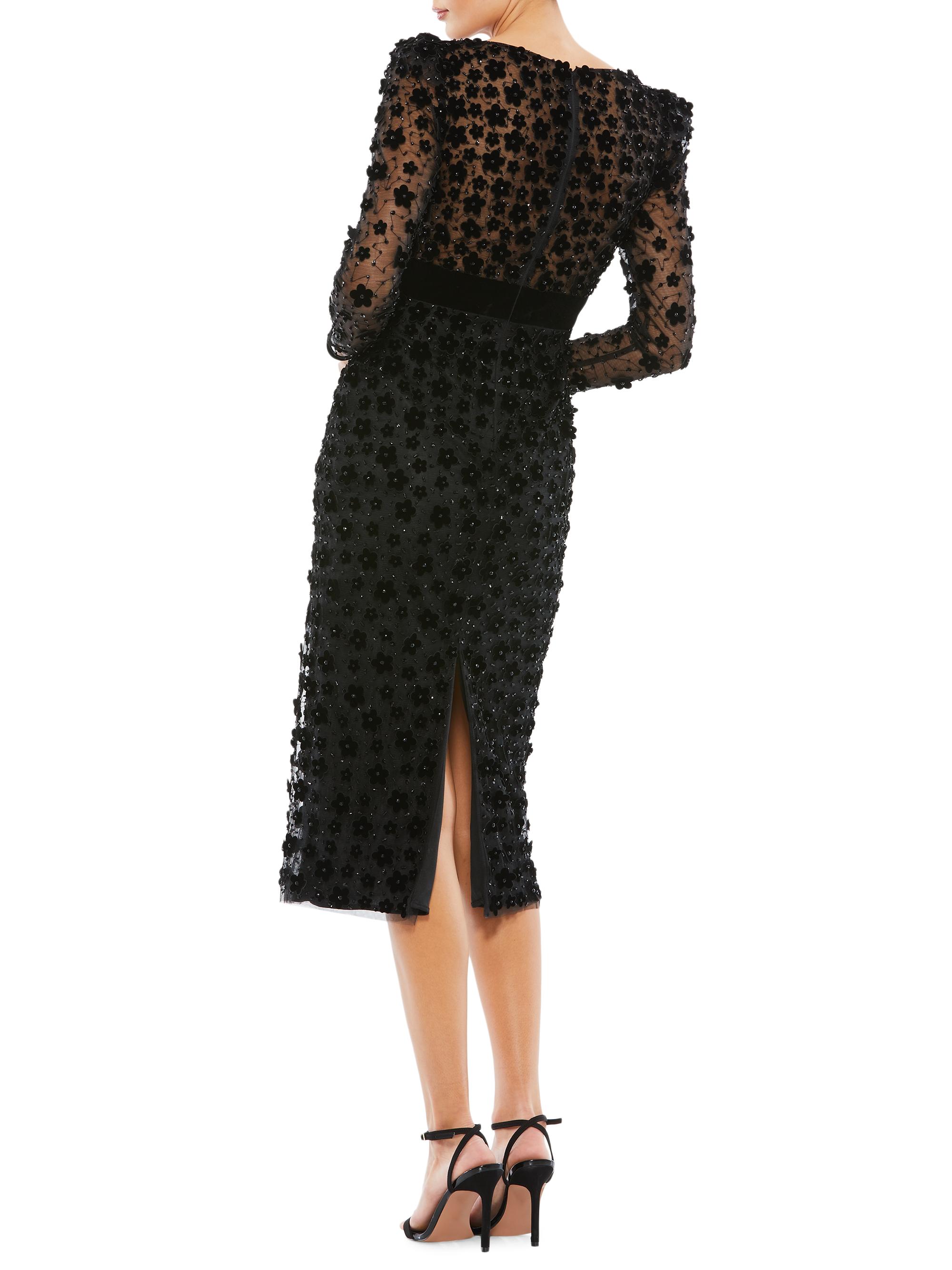 Mac Duggal Embellished V-Neck Long-Sleeve Midi-Dress BLACK