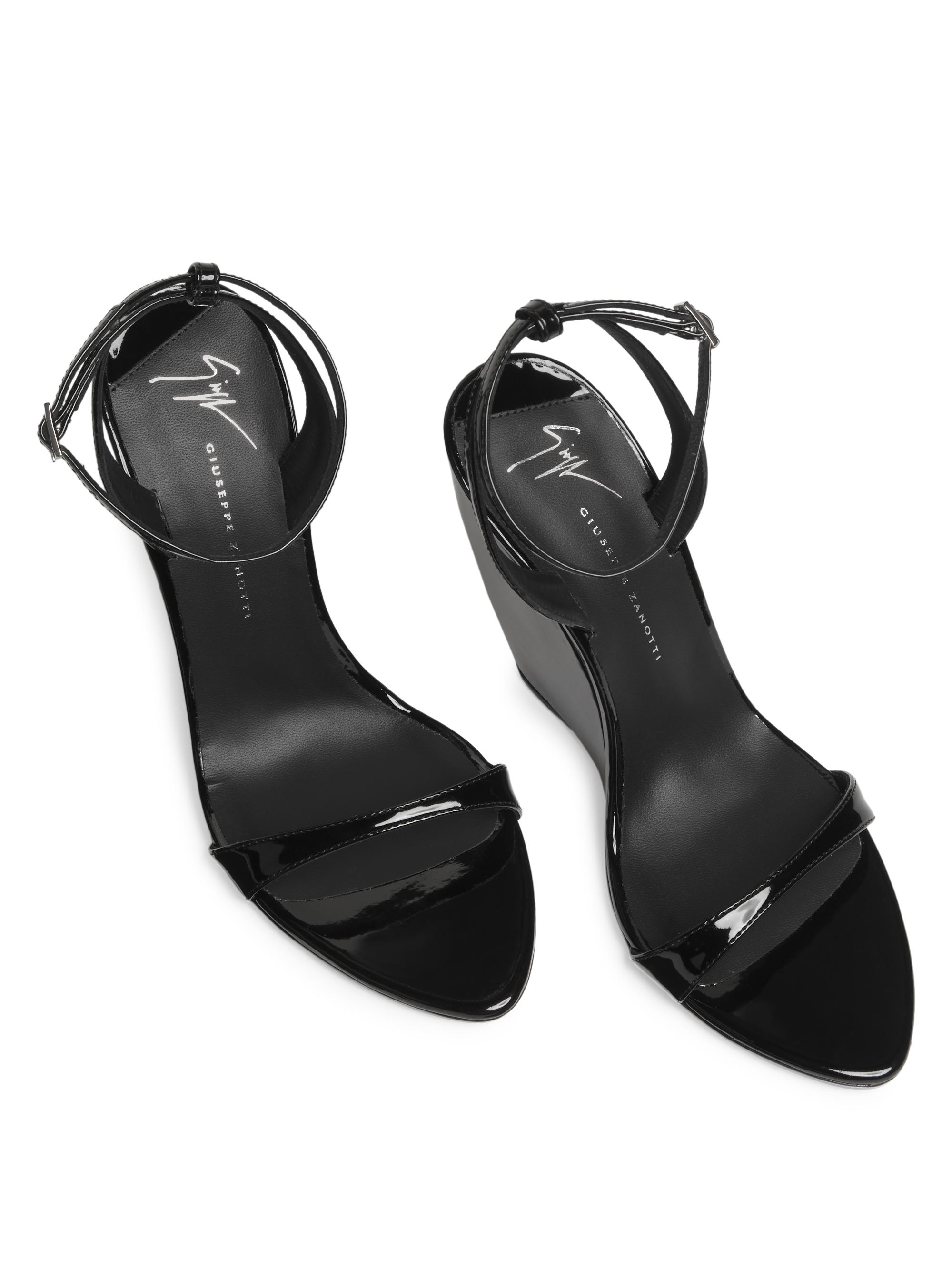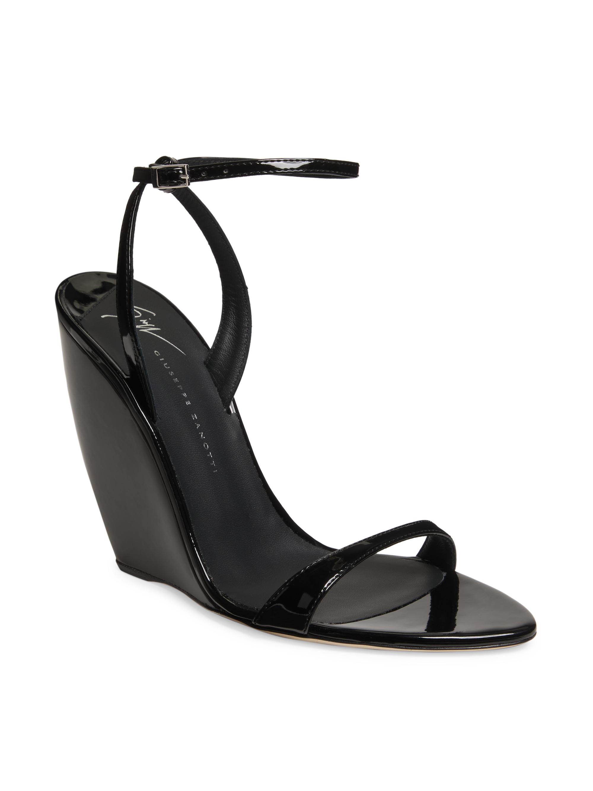 Giuseppe Zanotti Metallic Patent Leather Wedge Sandals NERO