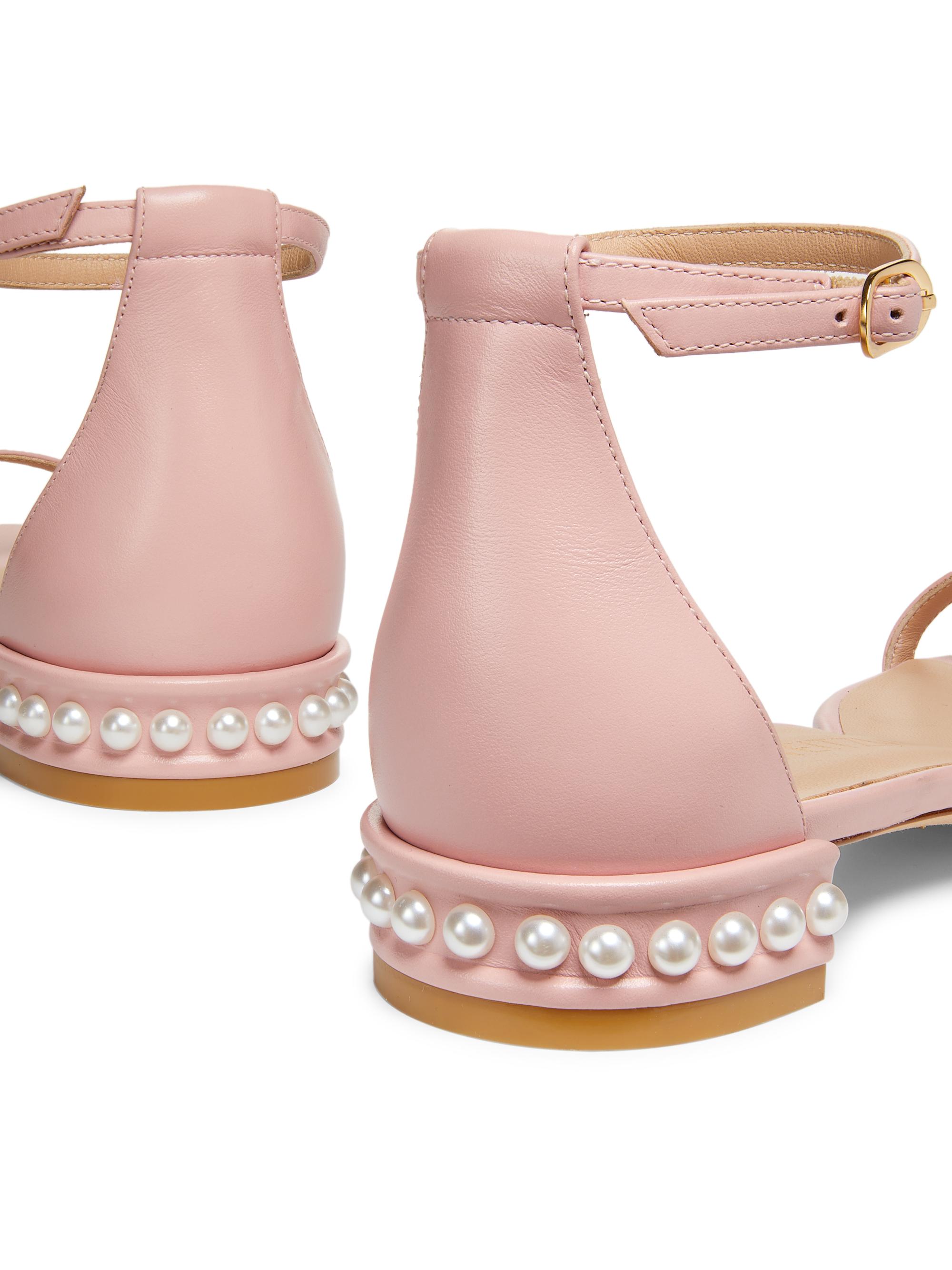 Stuart Weitzman Nudistcurve Pearl-Embellished Leather Sandals BALLET