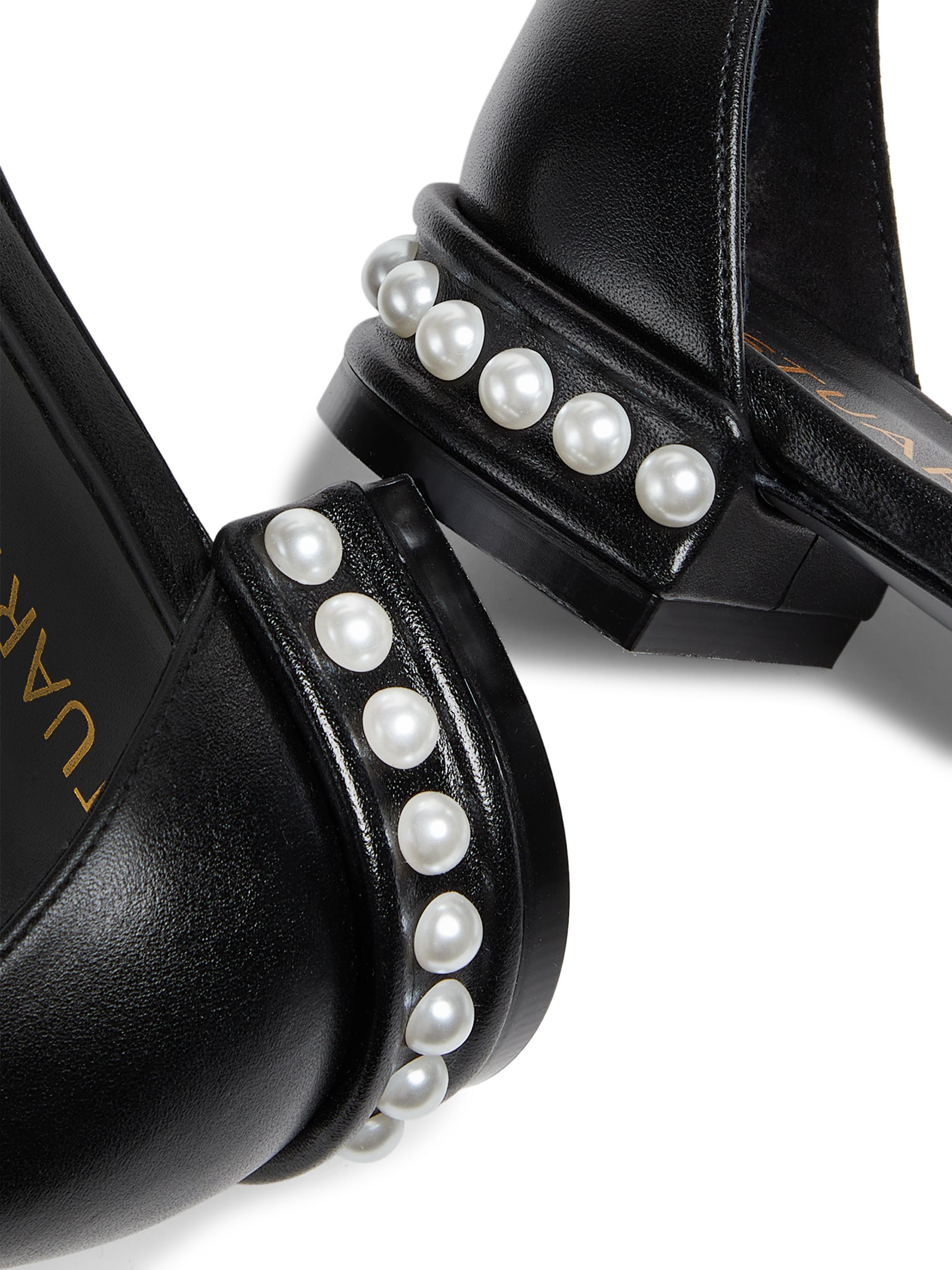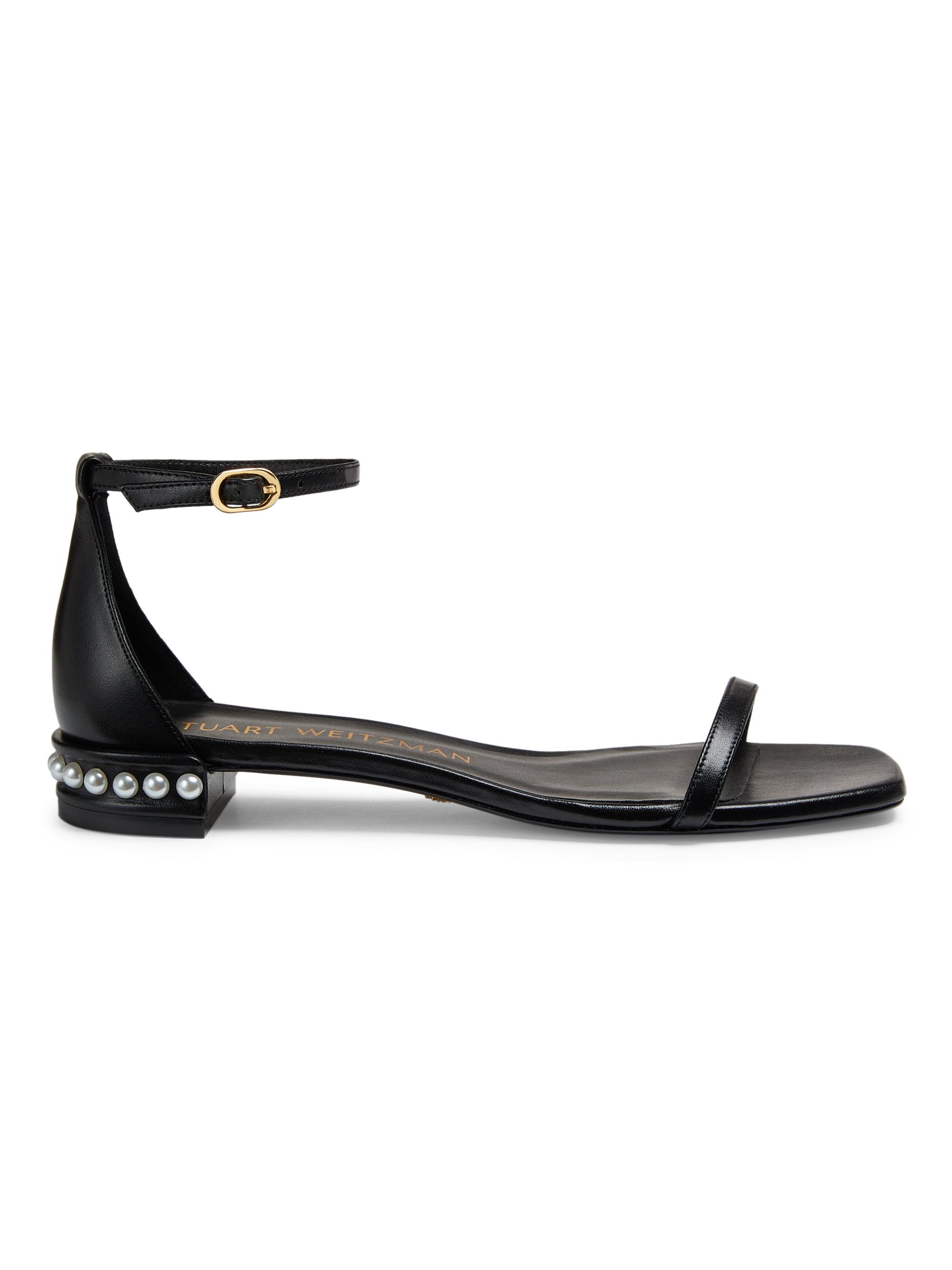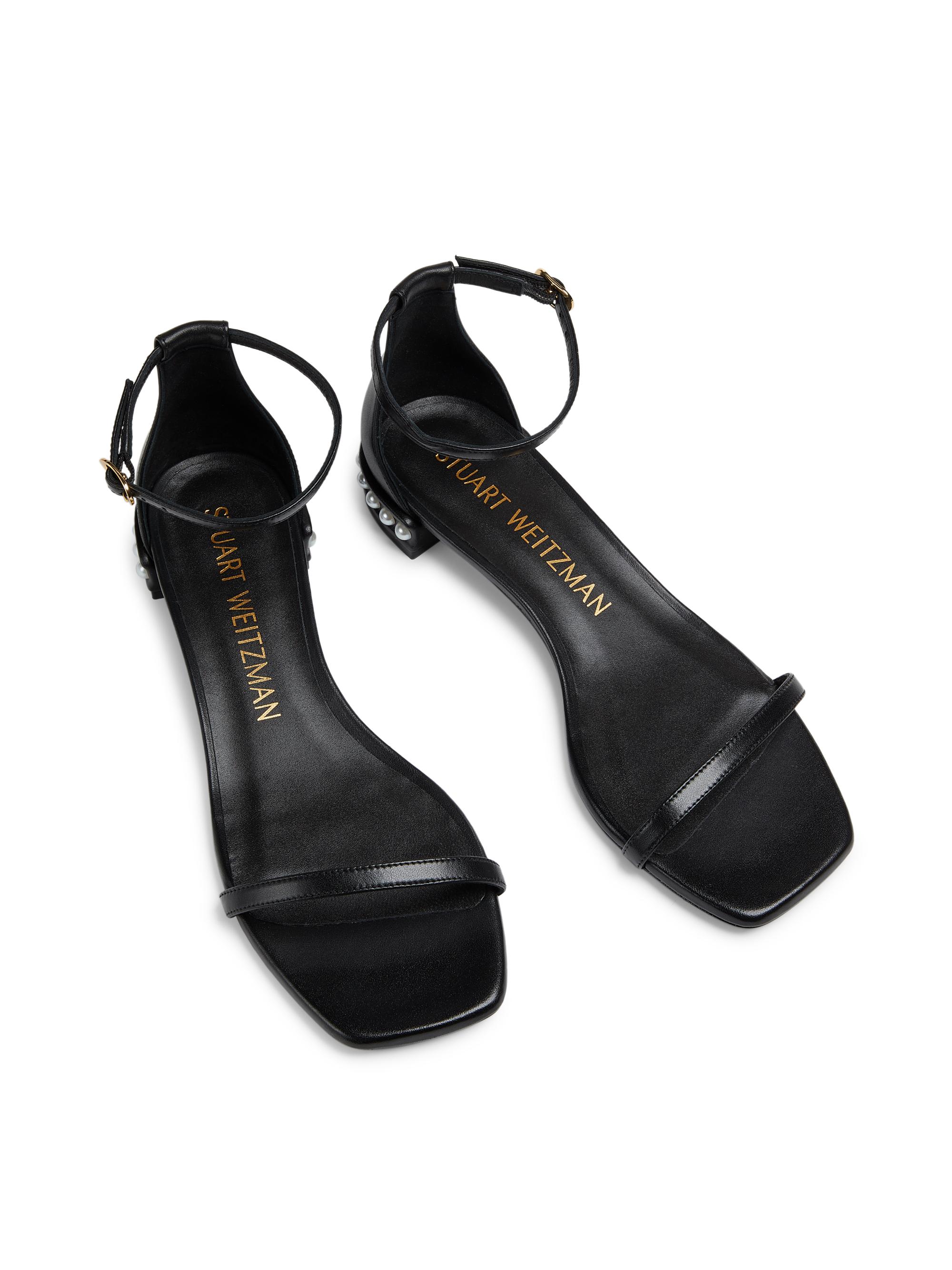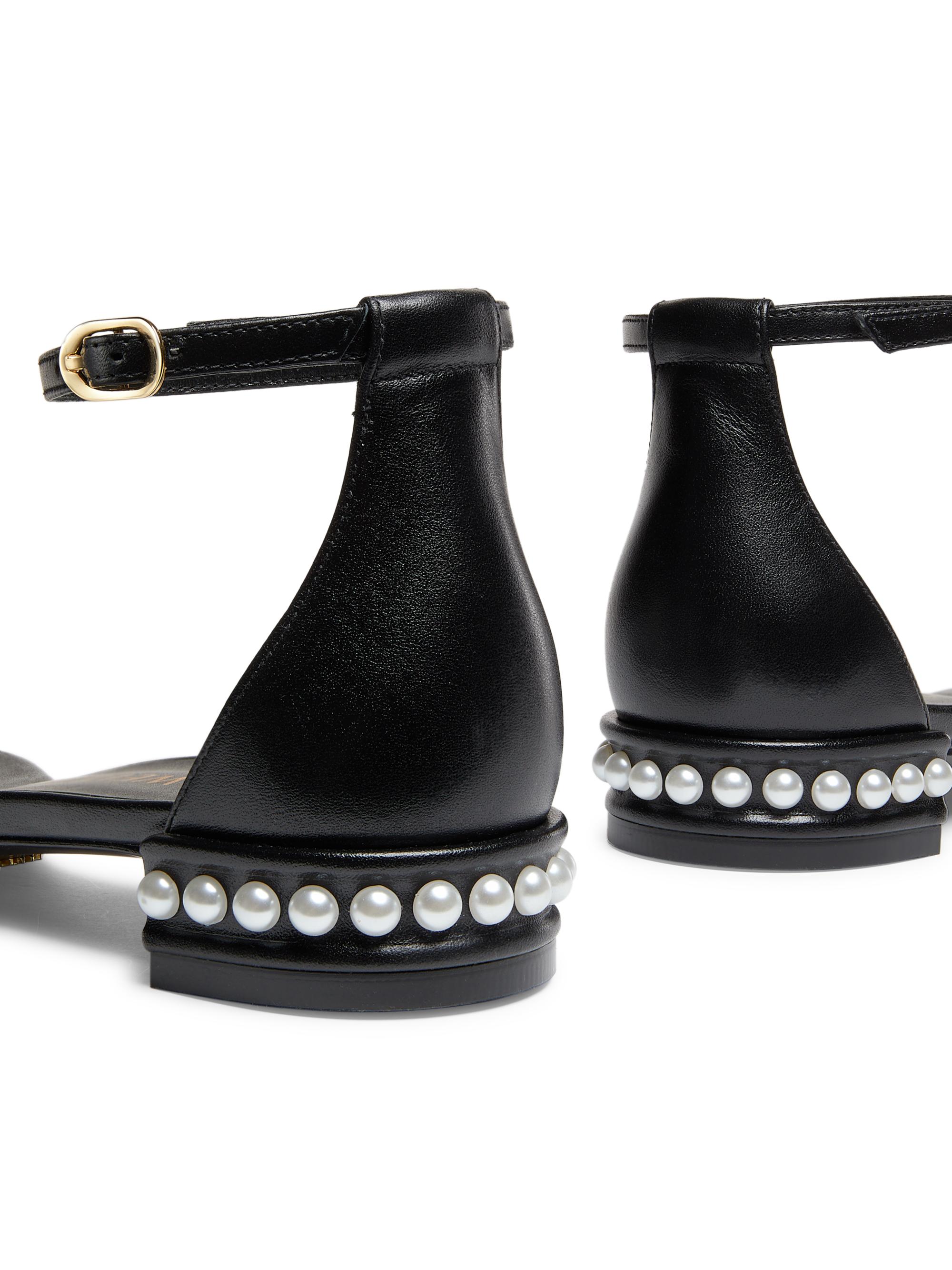 Stuart Weitzman Nudistcurve Pearl-Embellished Leather Sandals BLACK