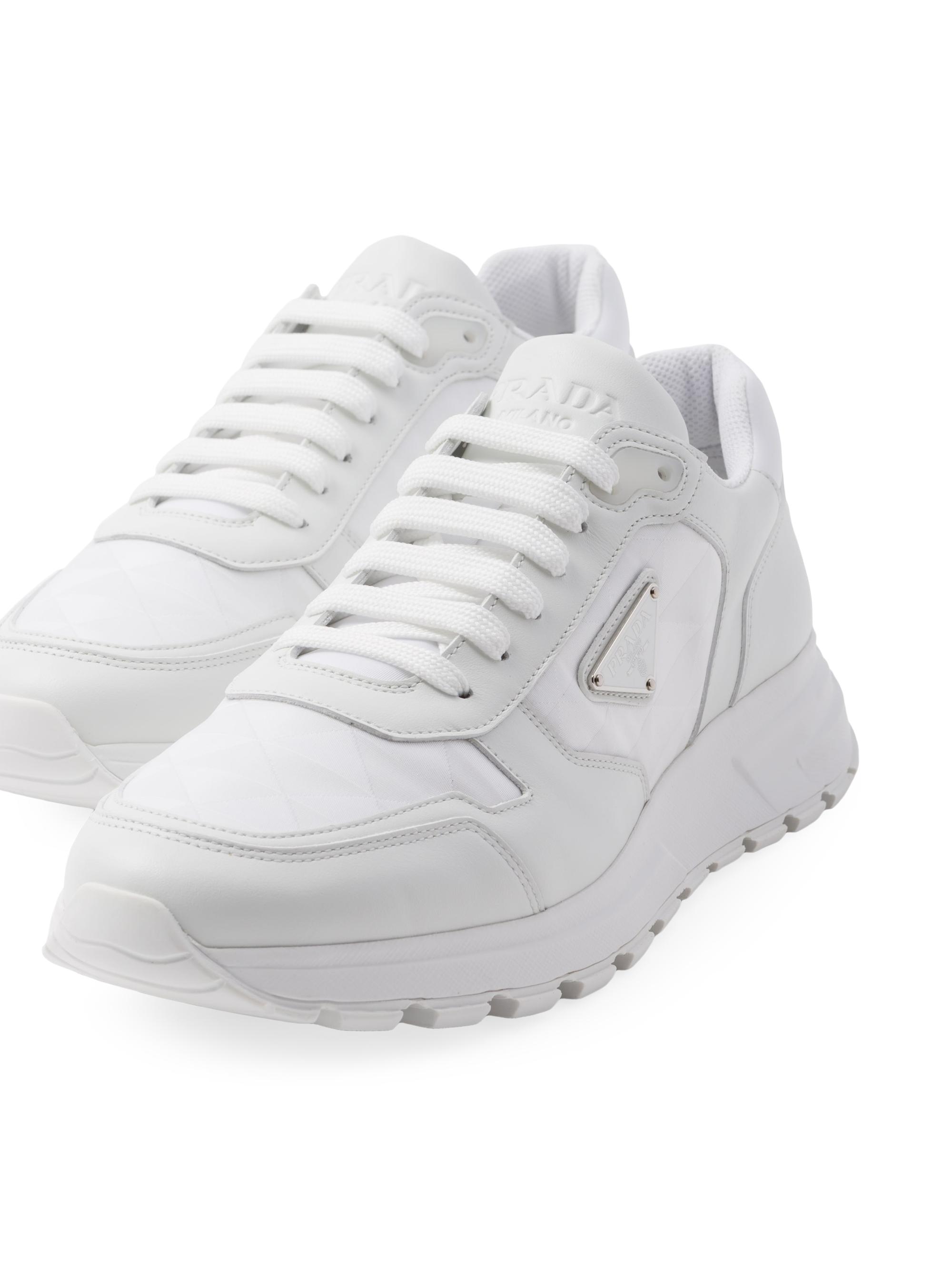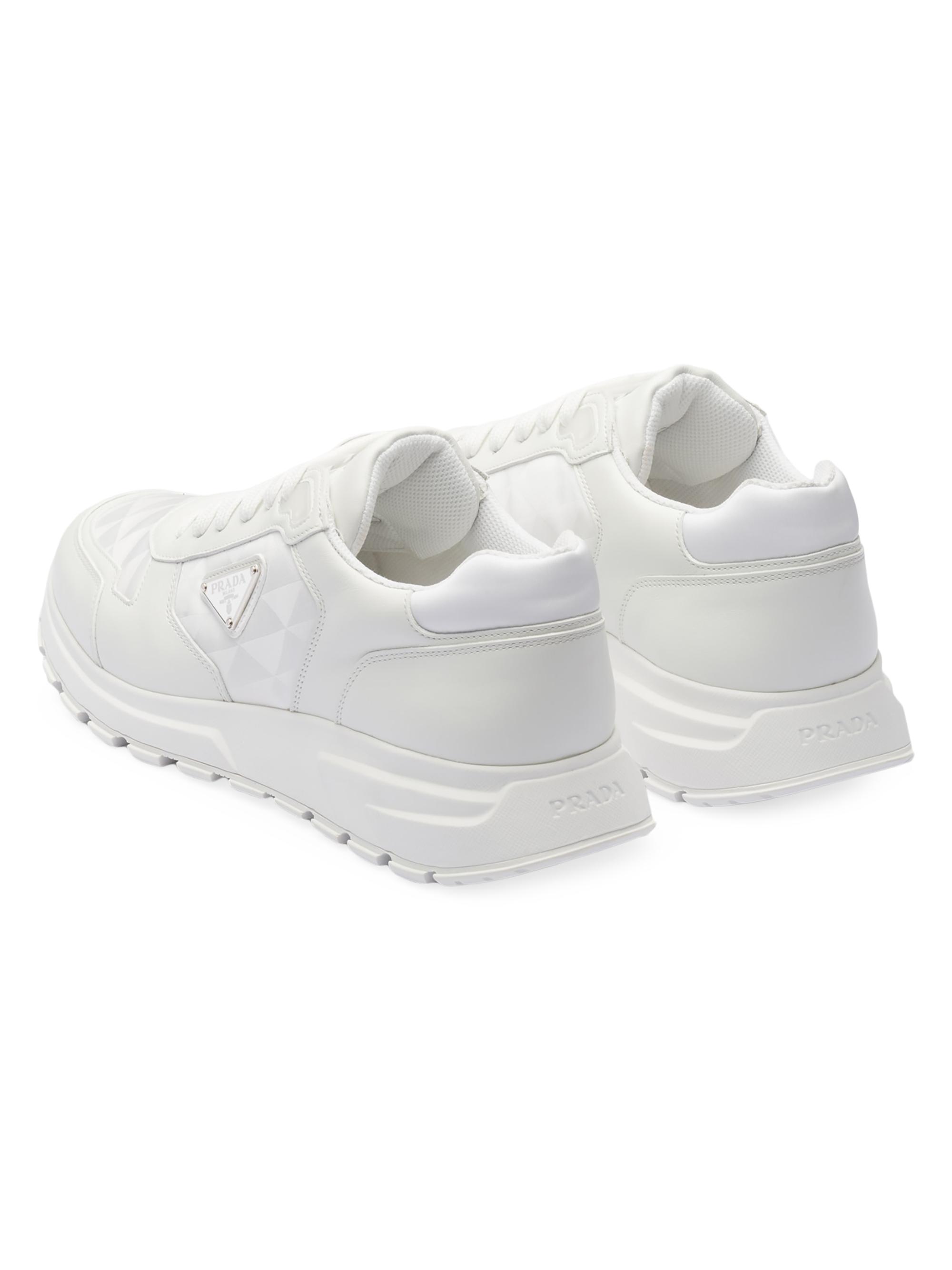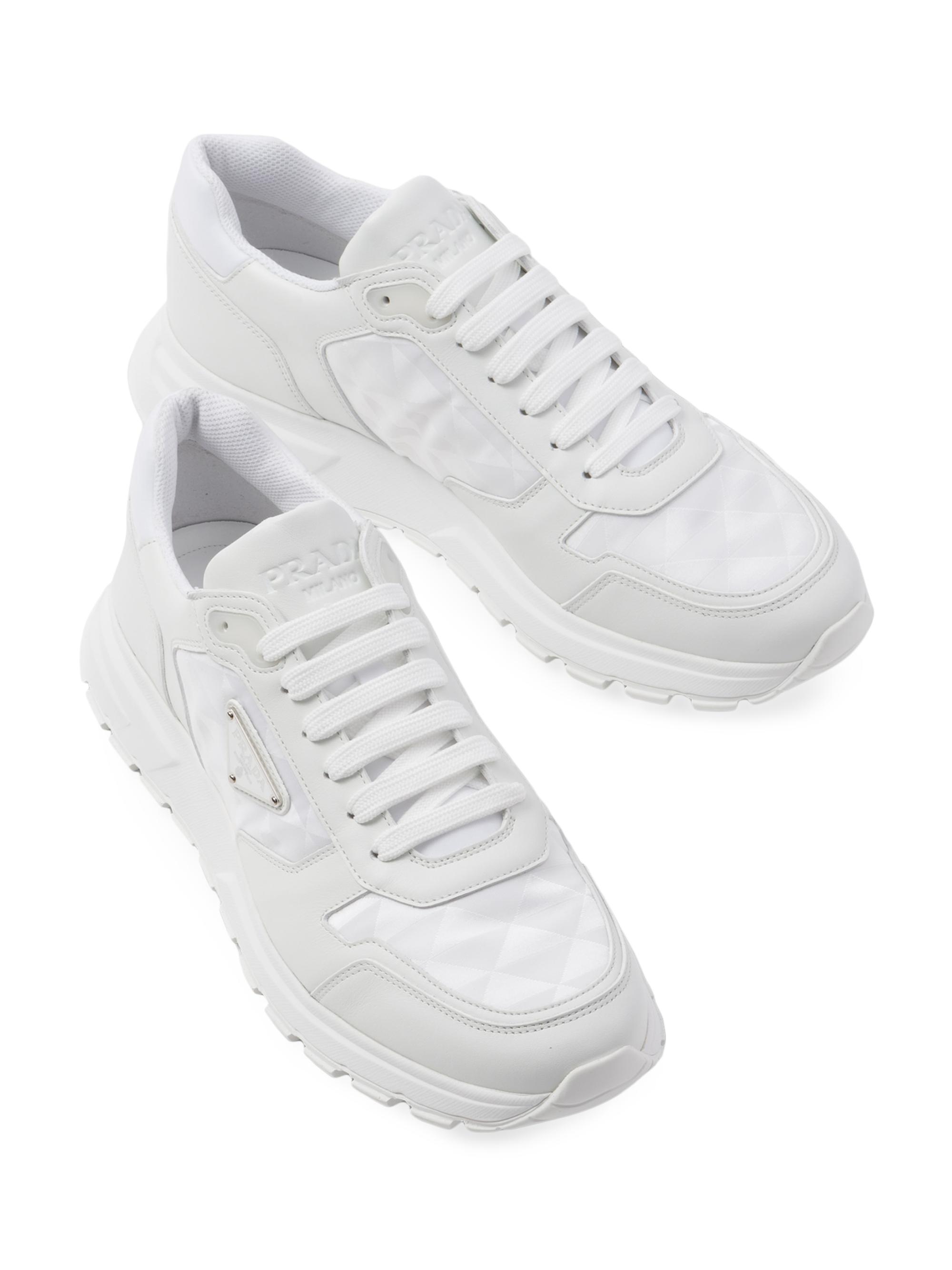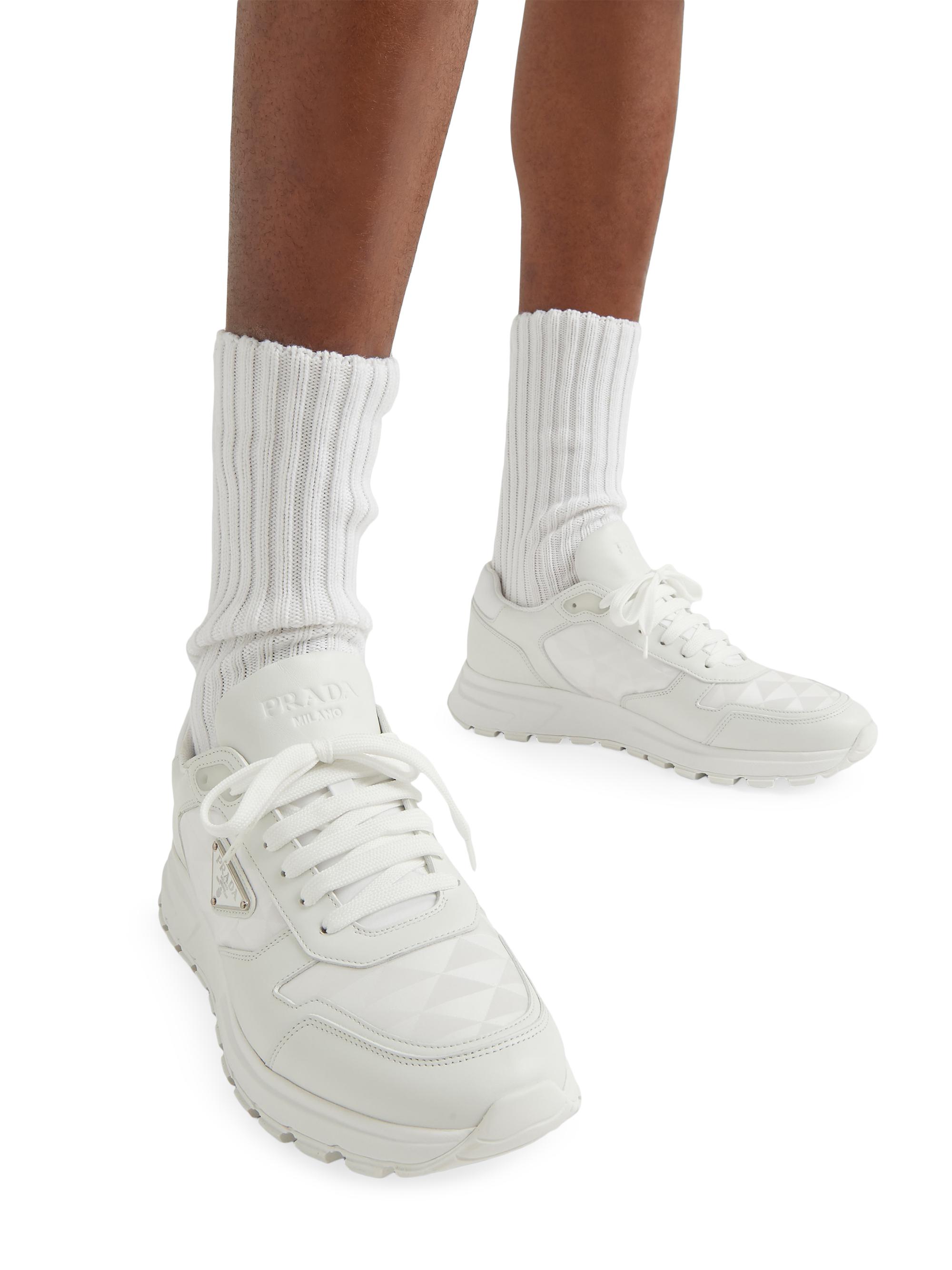 Prada Leather and Re-Nylon High-Top Sneakers WHITE