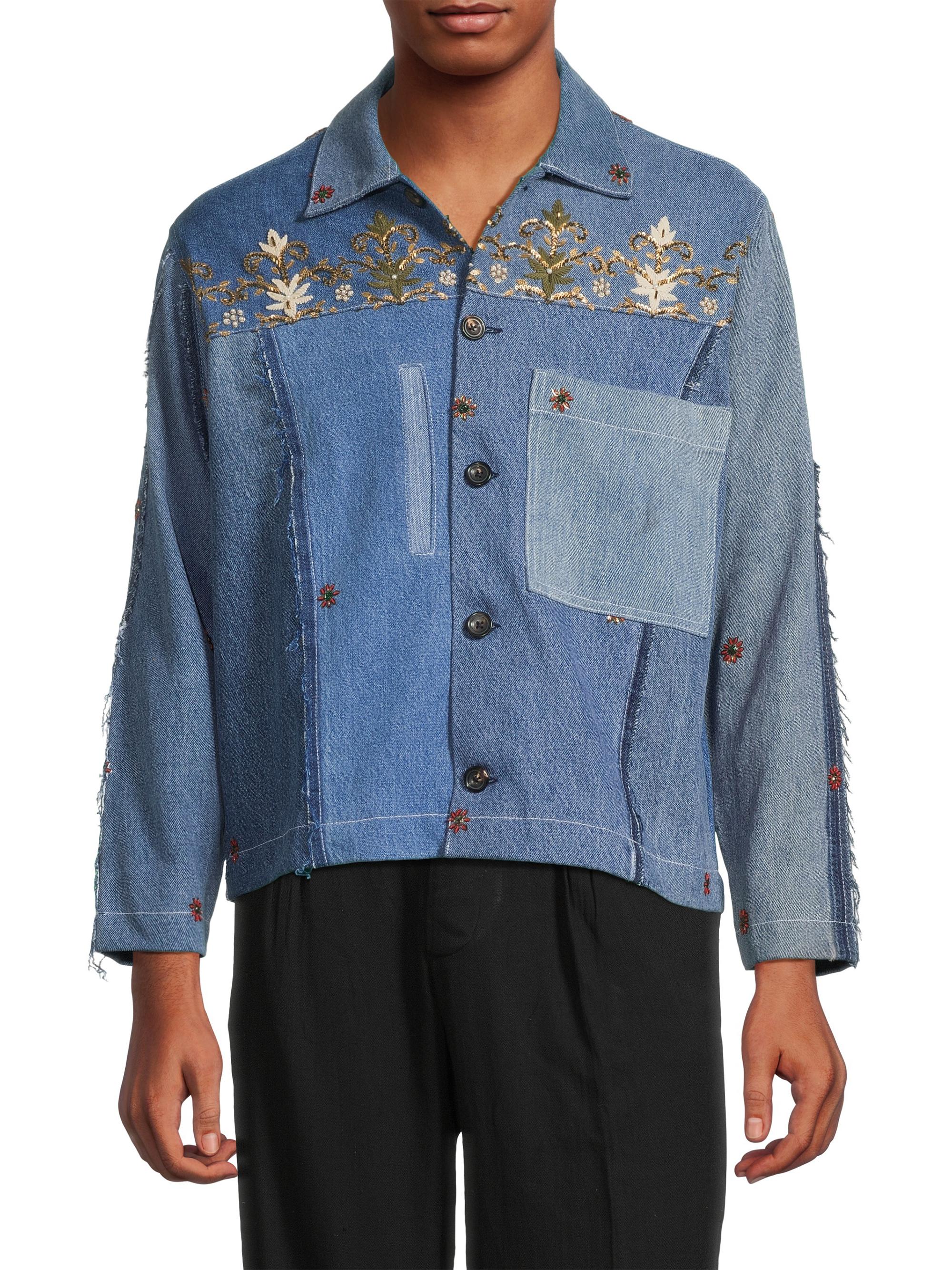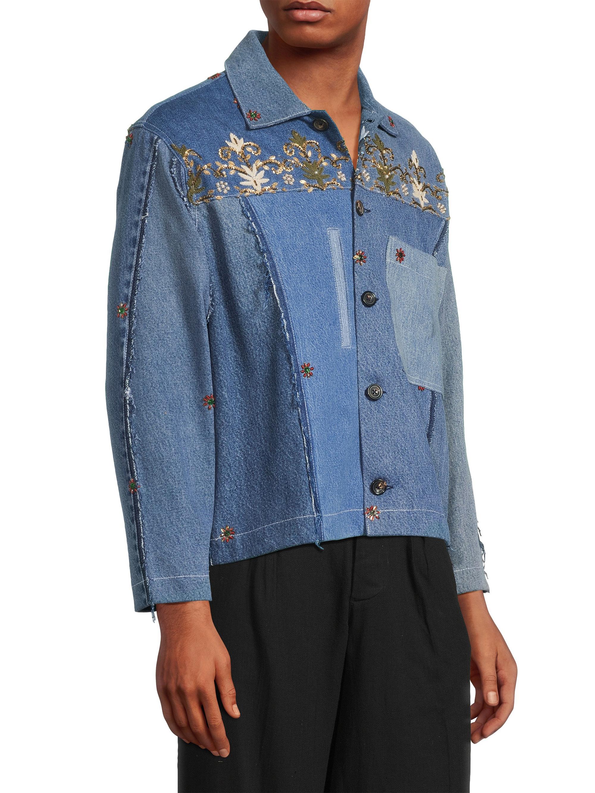 Kartik Research Sequin-Embroidered Denim Trucker Jacket