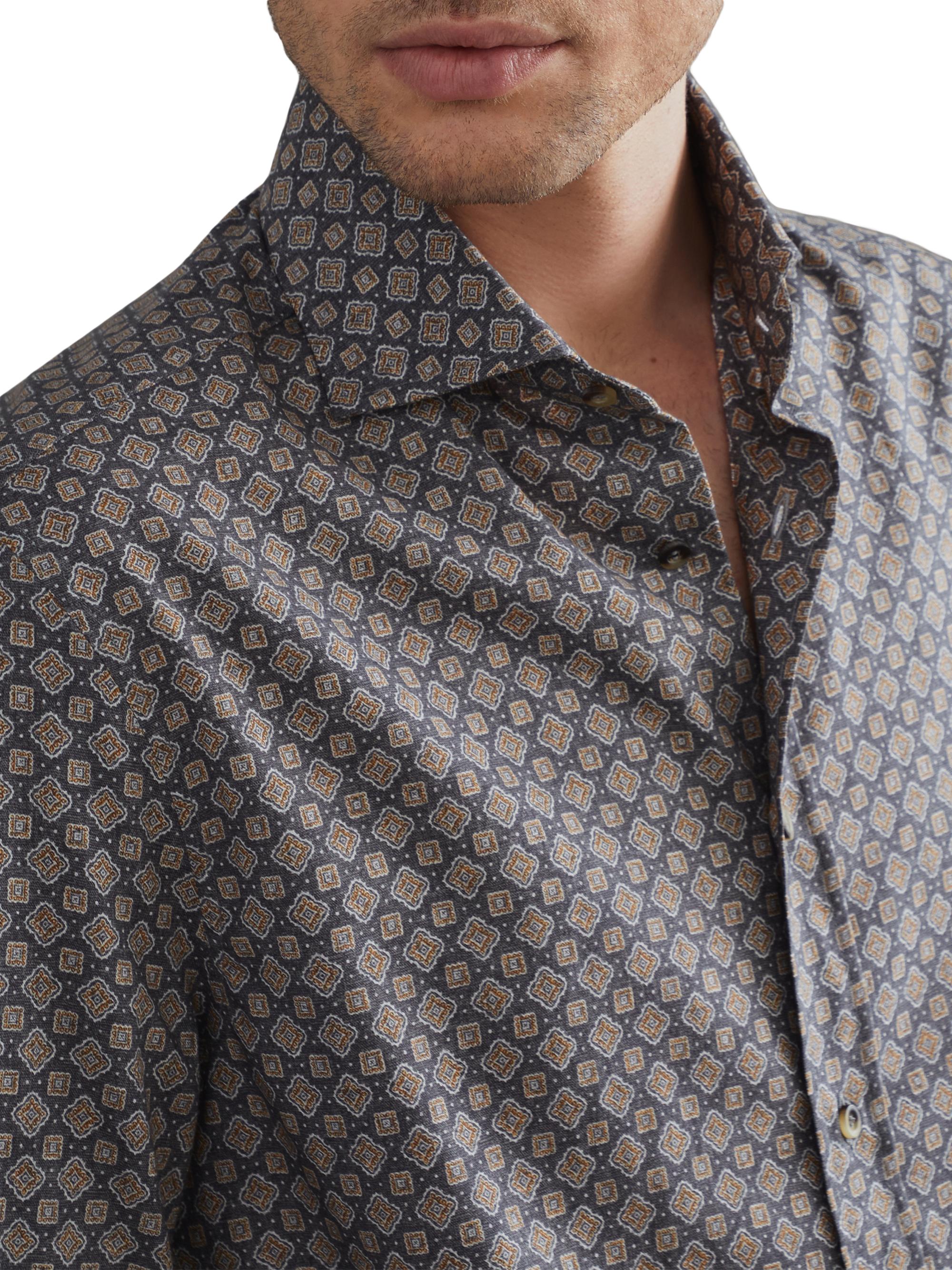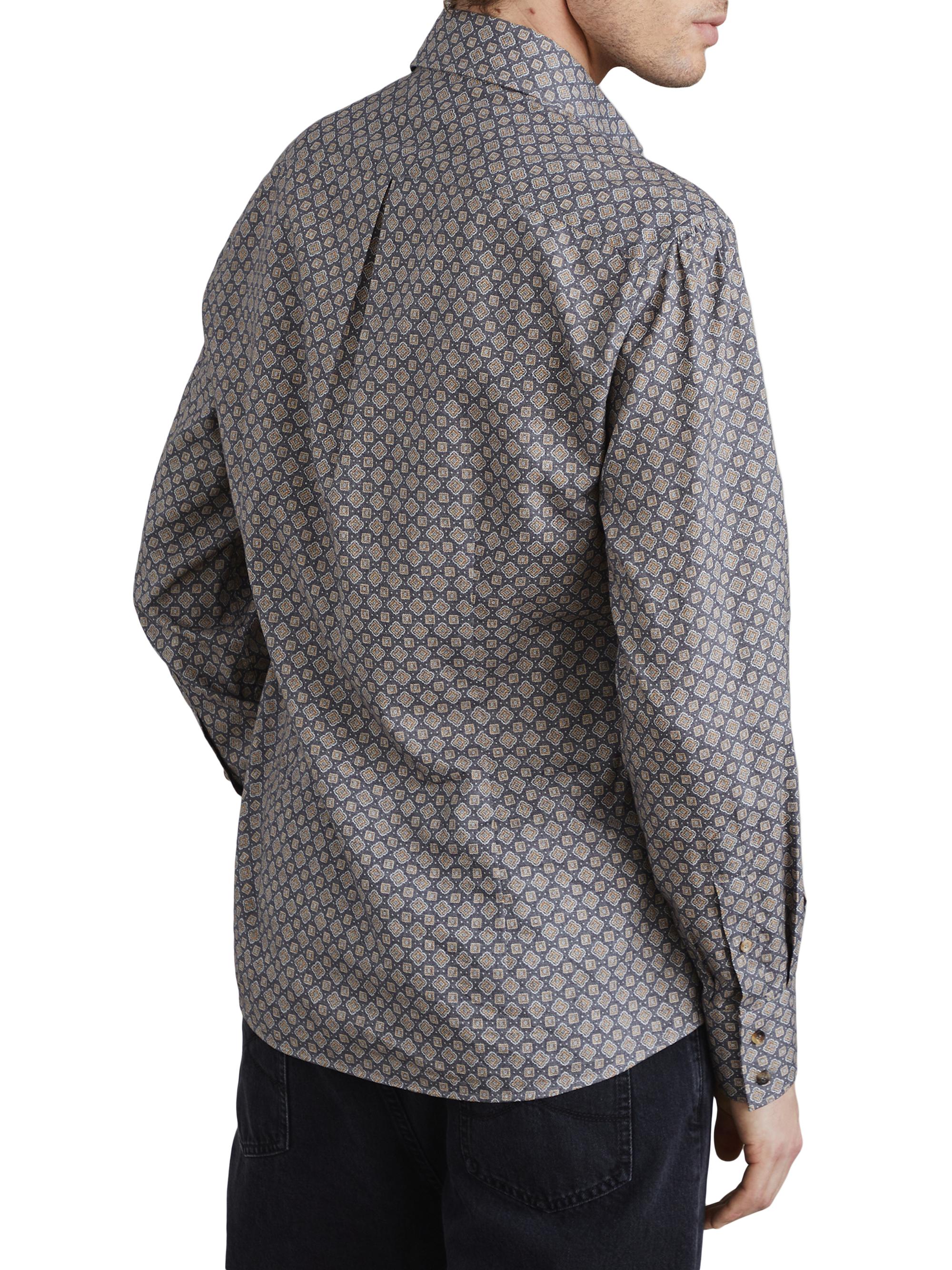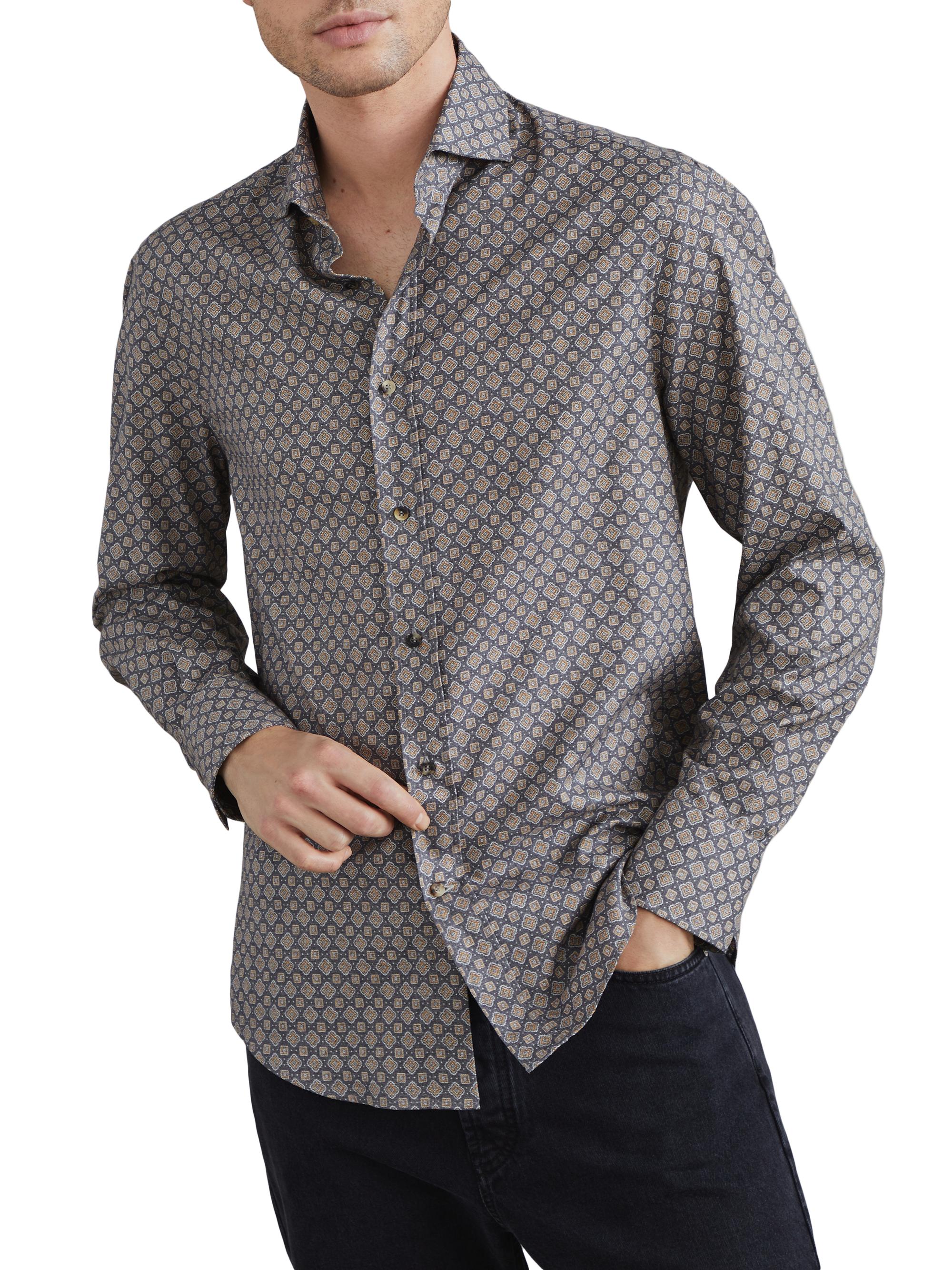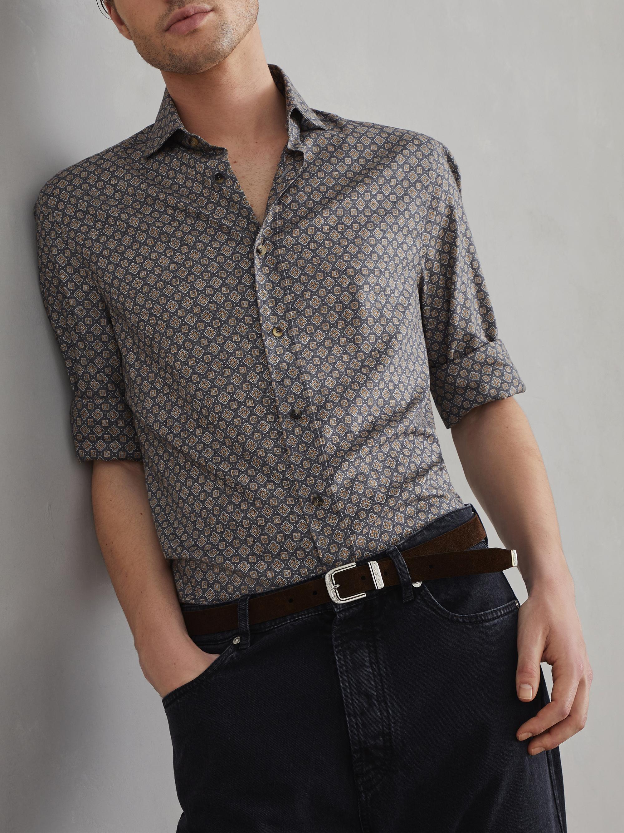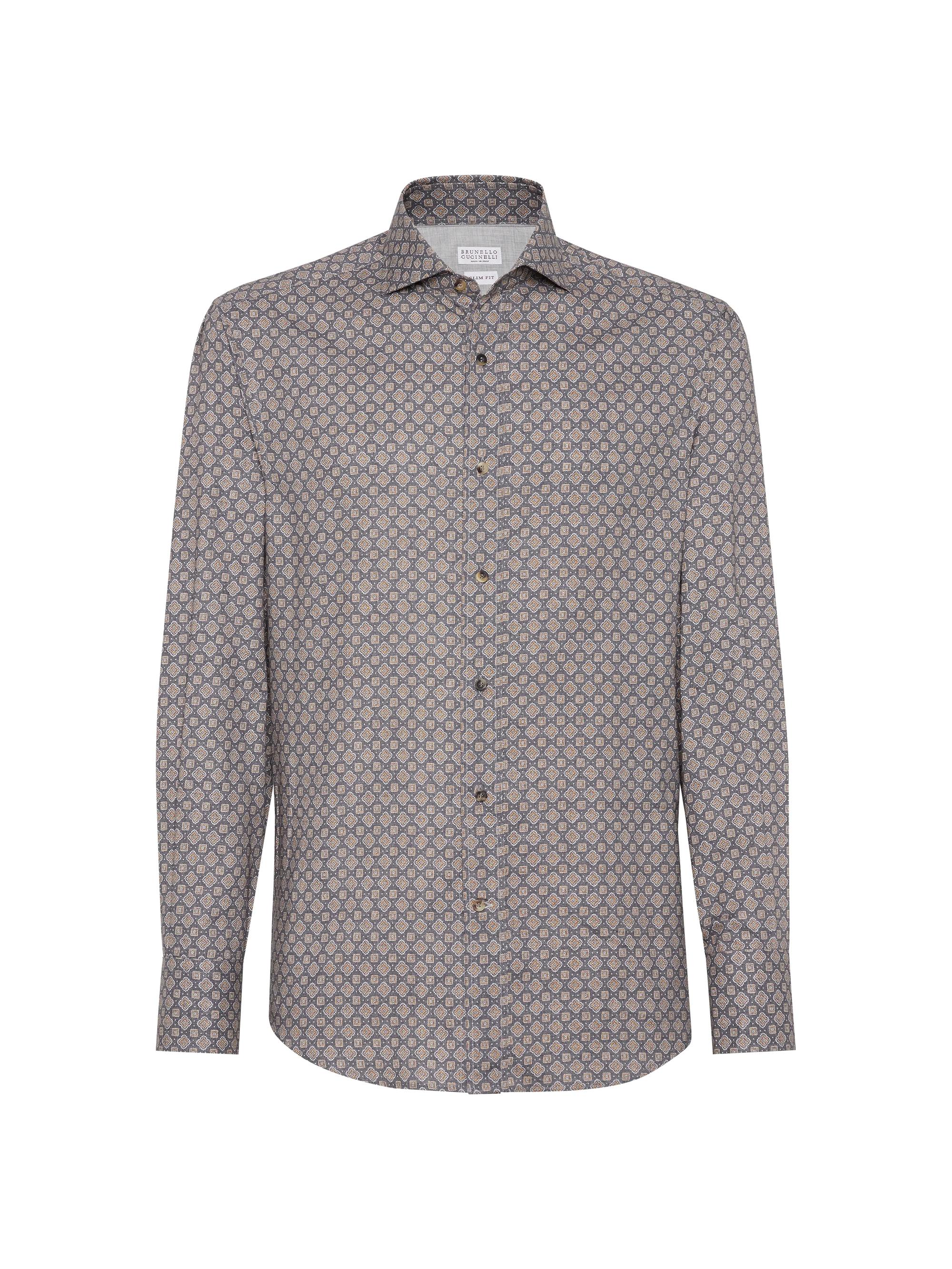 Brunello Cucinelli Two Tone Geometric Print Slim Fit Shirt