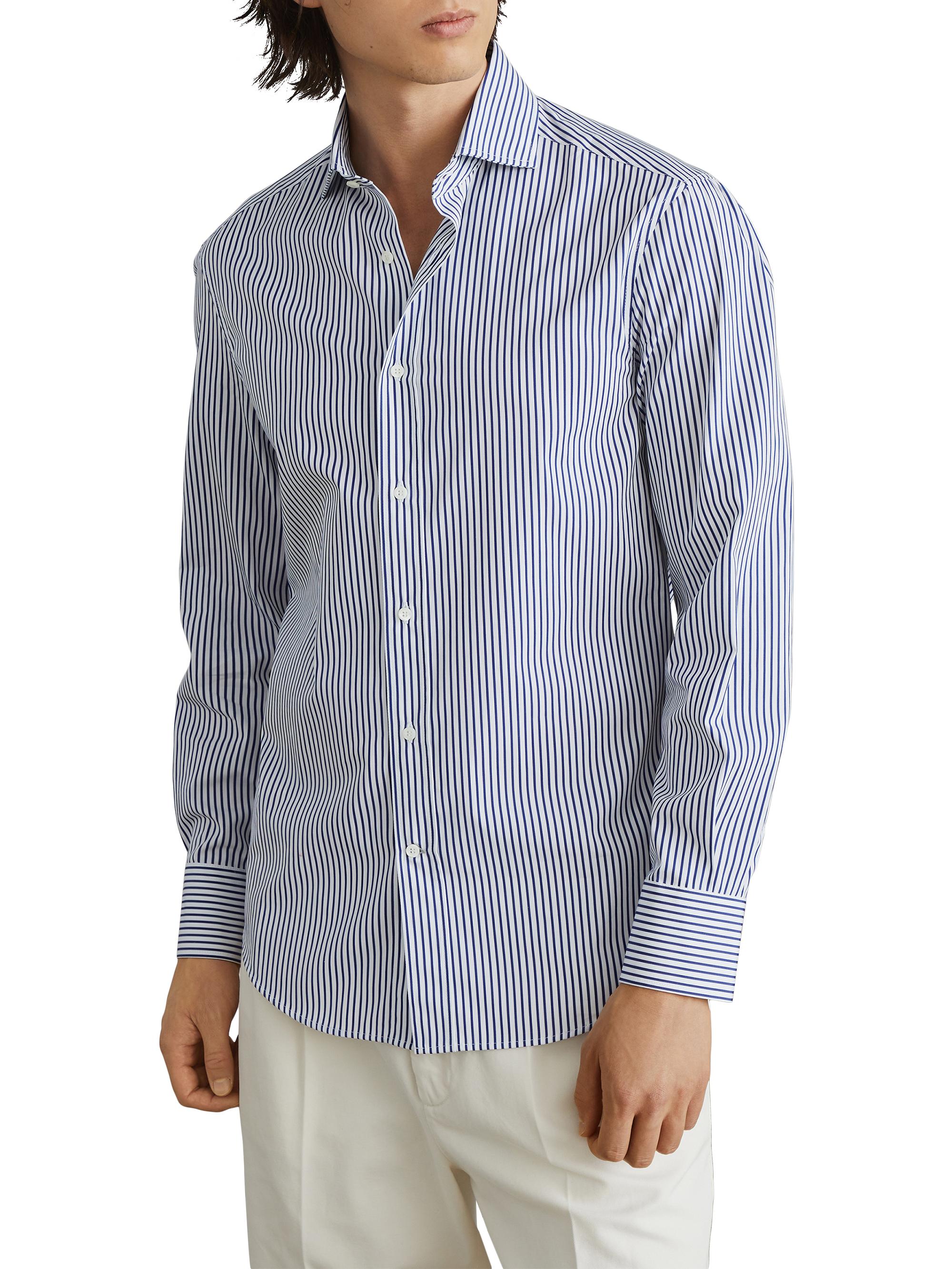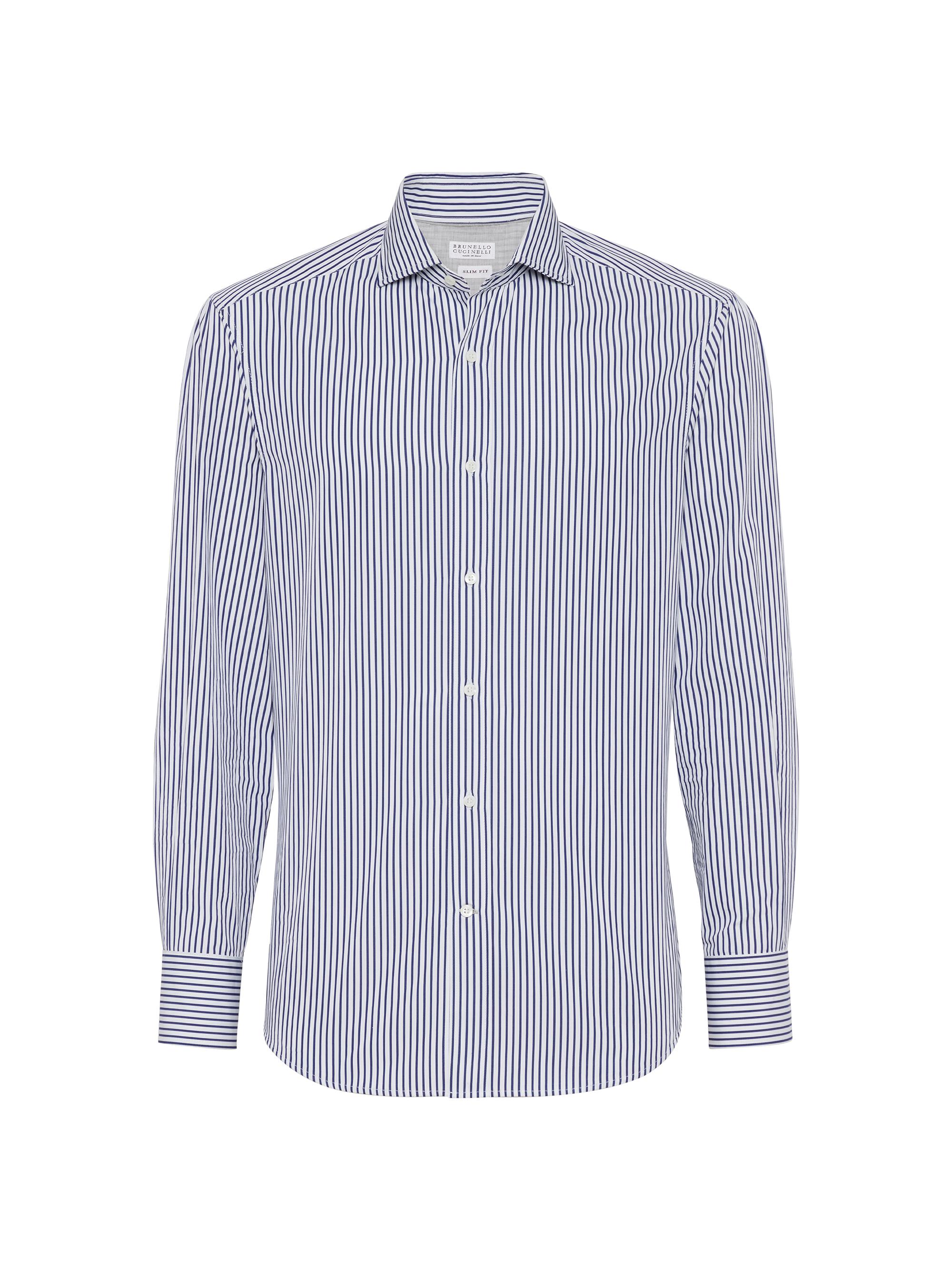 Brunello Cucinelli Striped Poplin Slim Fit Shirt