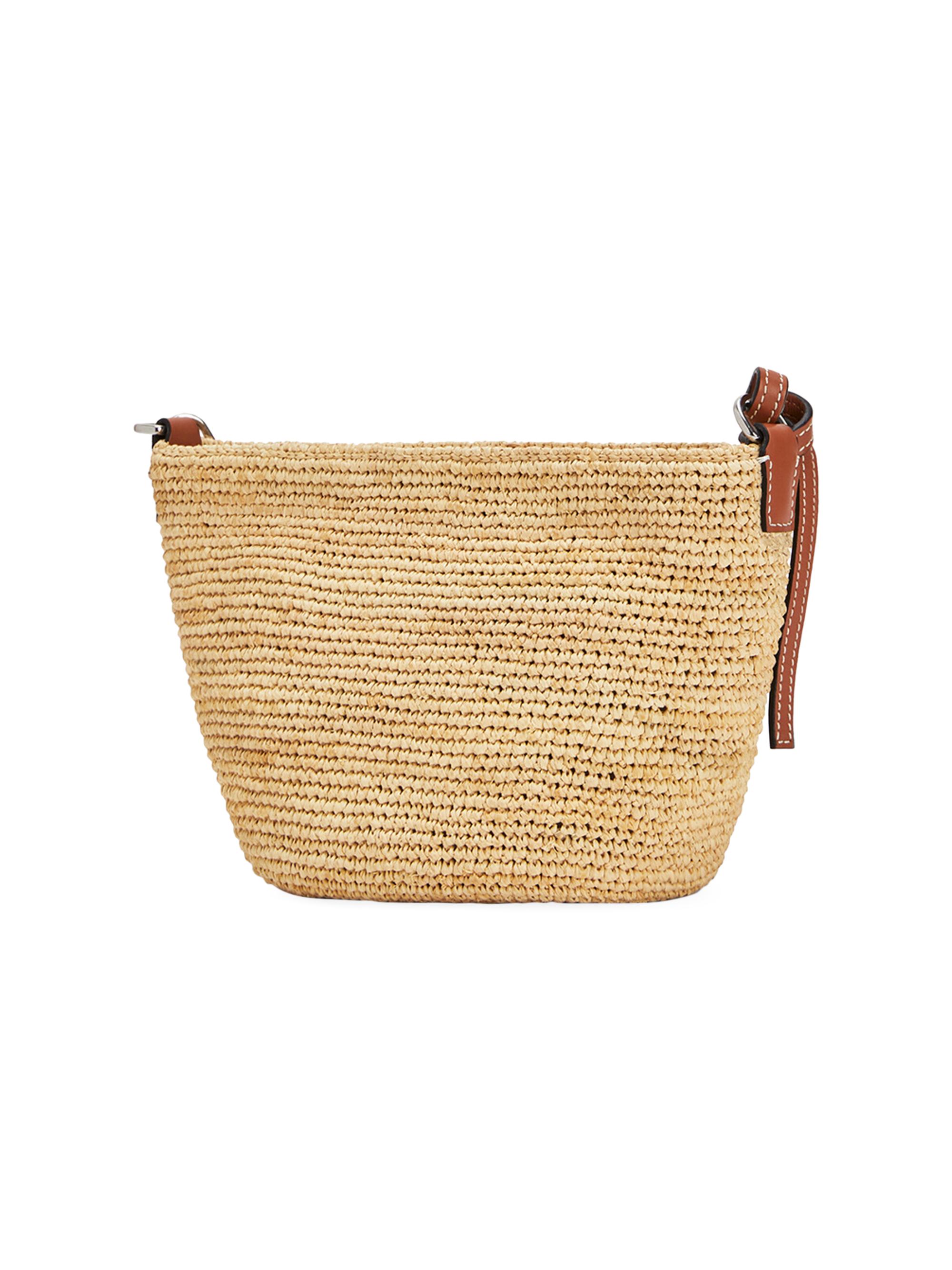 LOEWE Pochette Leather-Trimmed Raffia Crossbody Bag