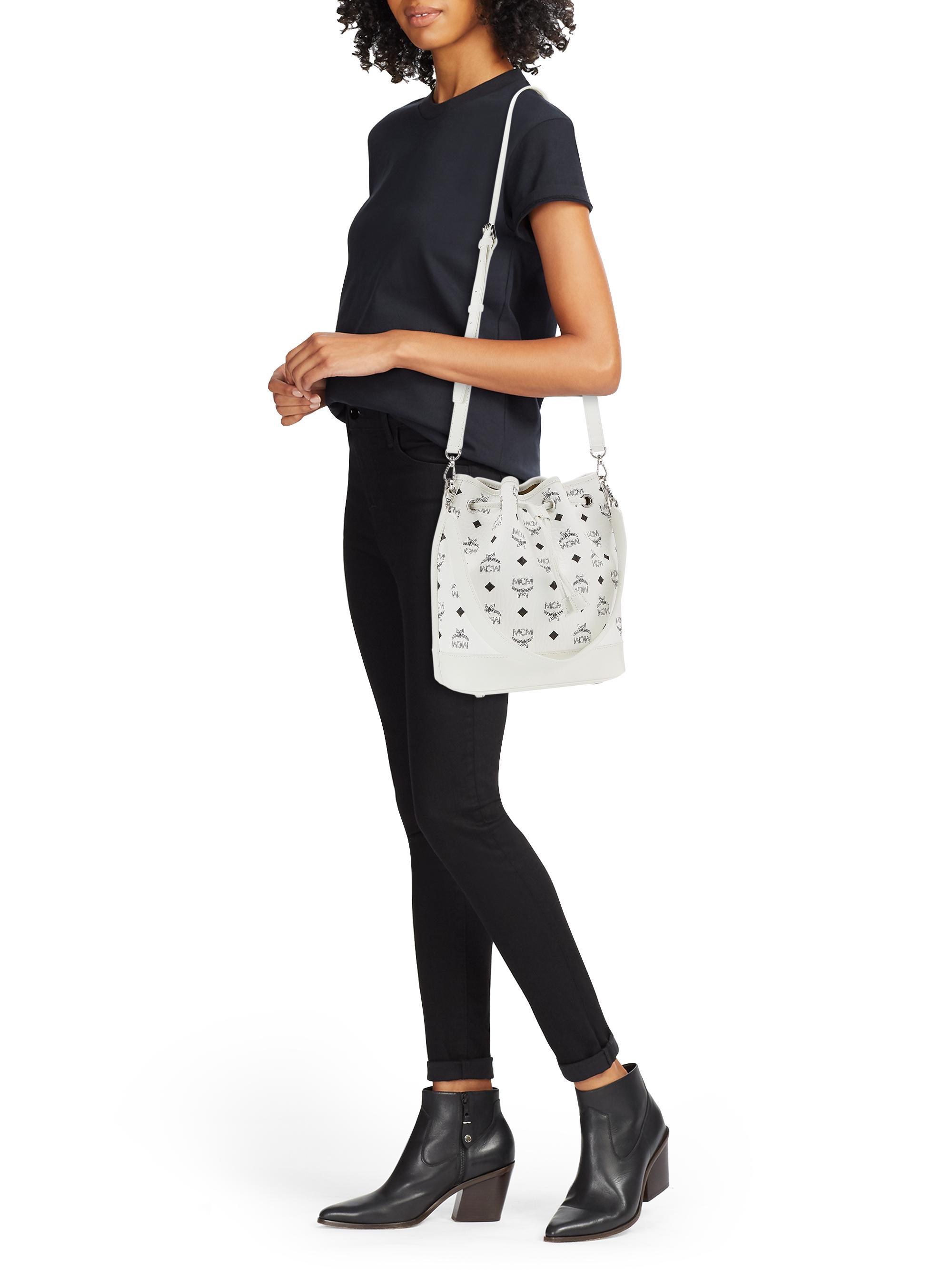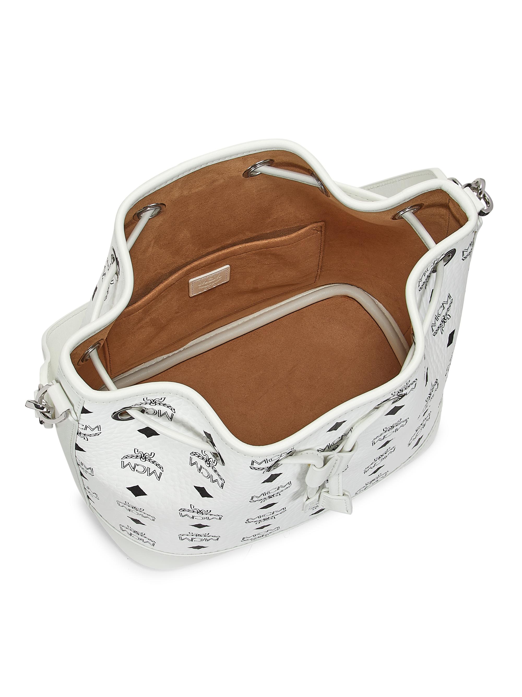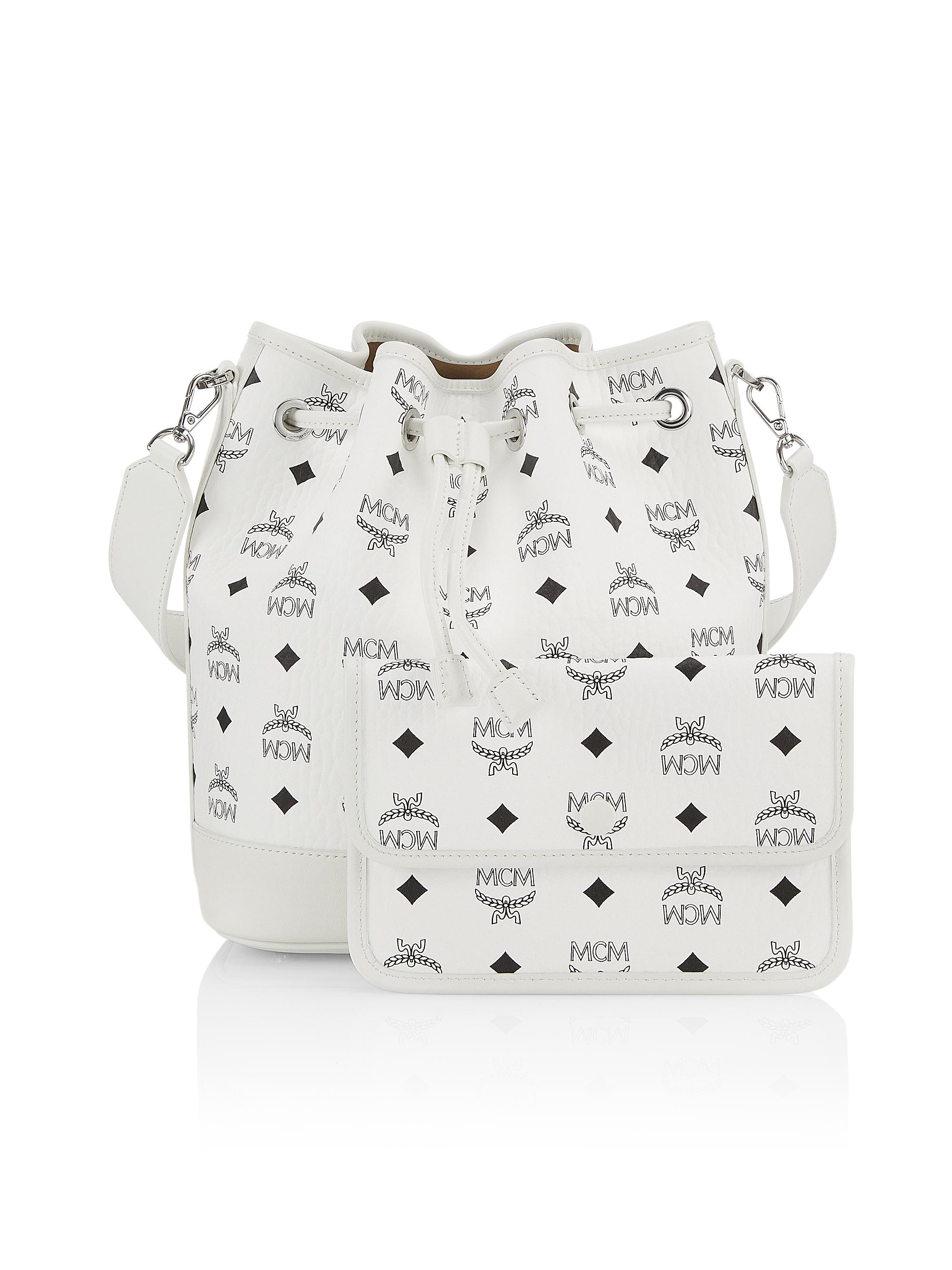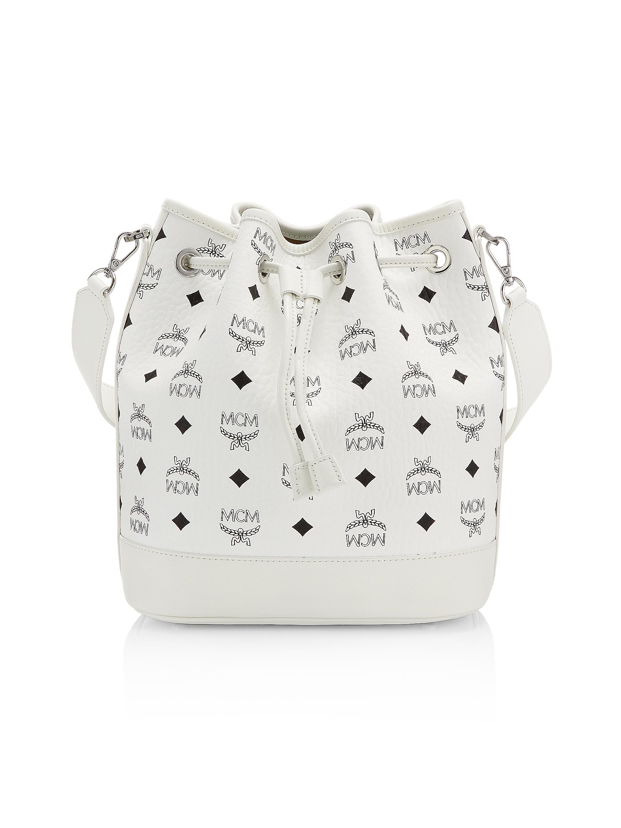 MCM Medium Dessau Visetos Coated Canvas Drawstring Bag WHITE