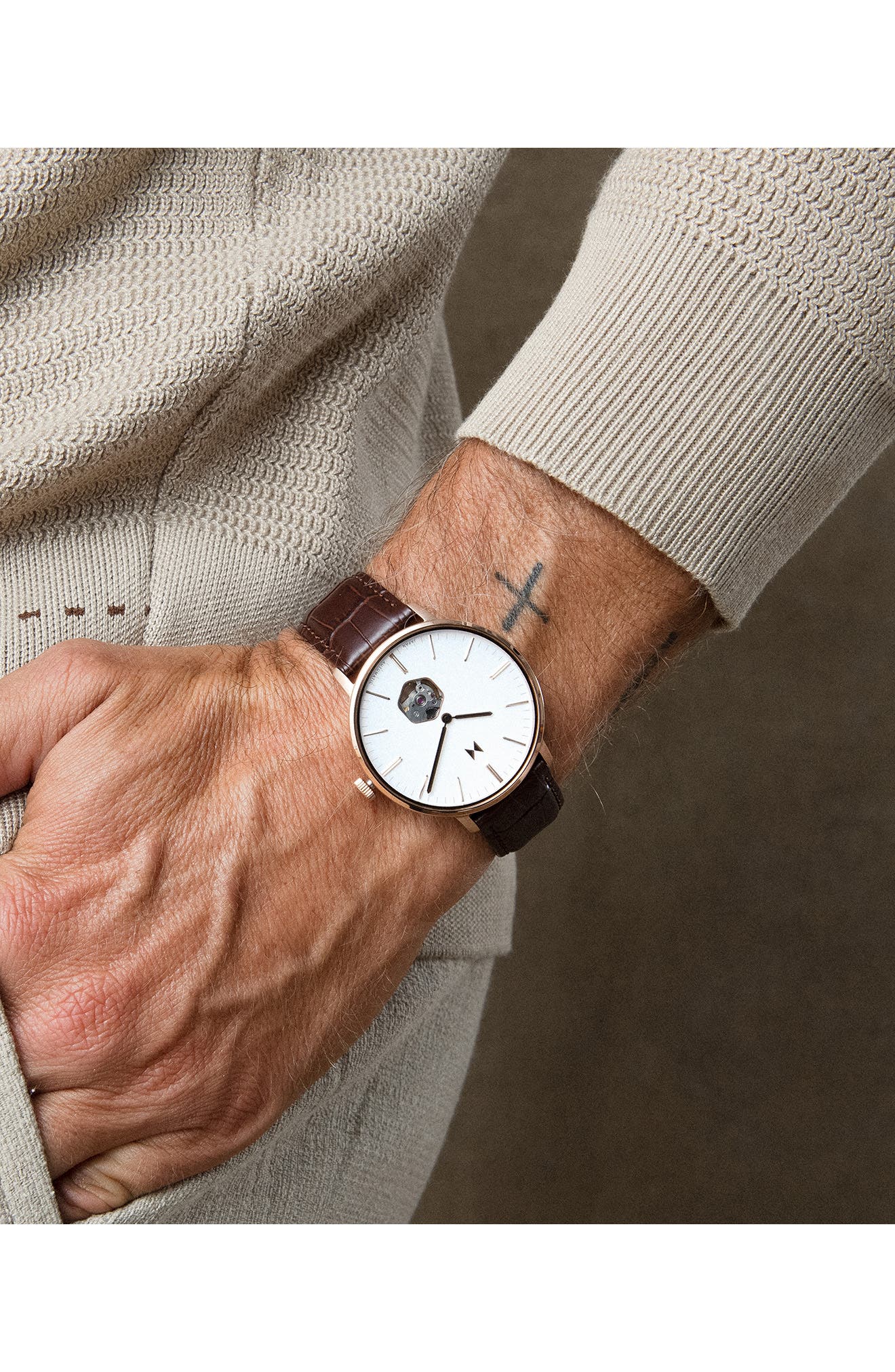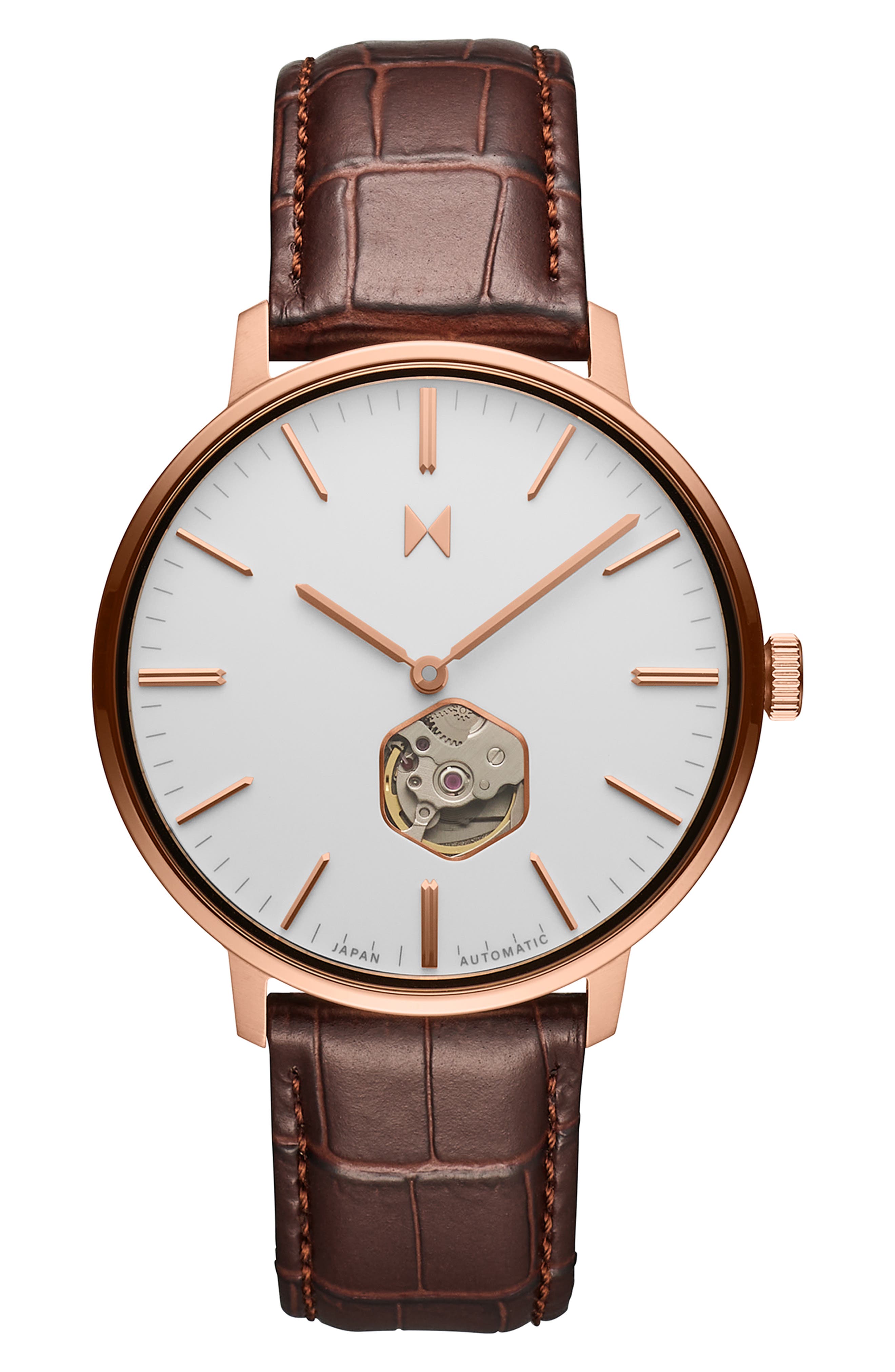 MVMT Legacy Slim Automatic Leather Strap Watch 45mm_Dark Brown