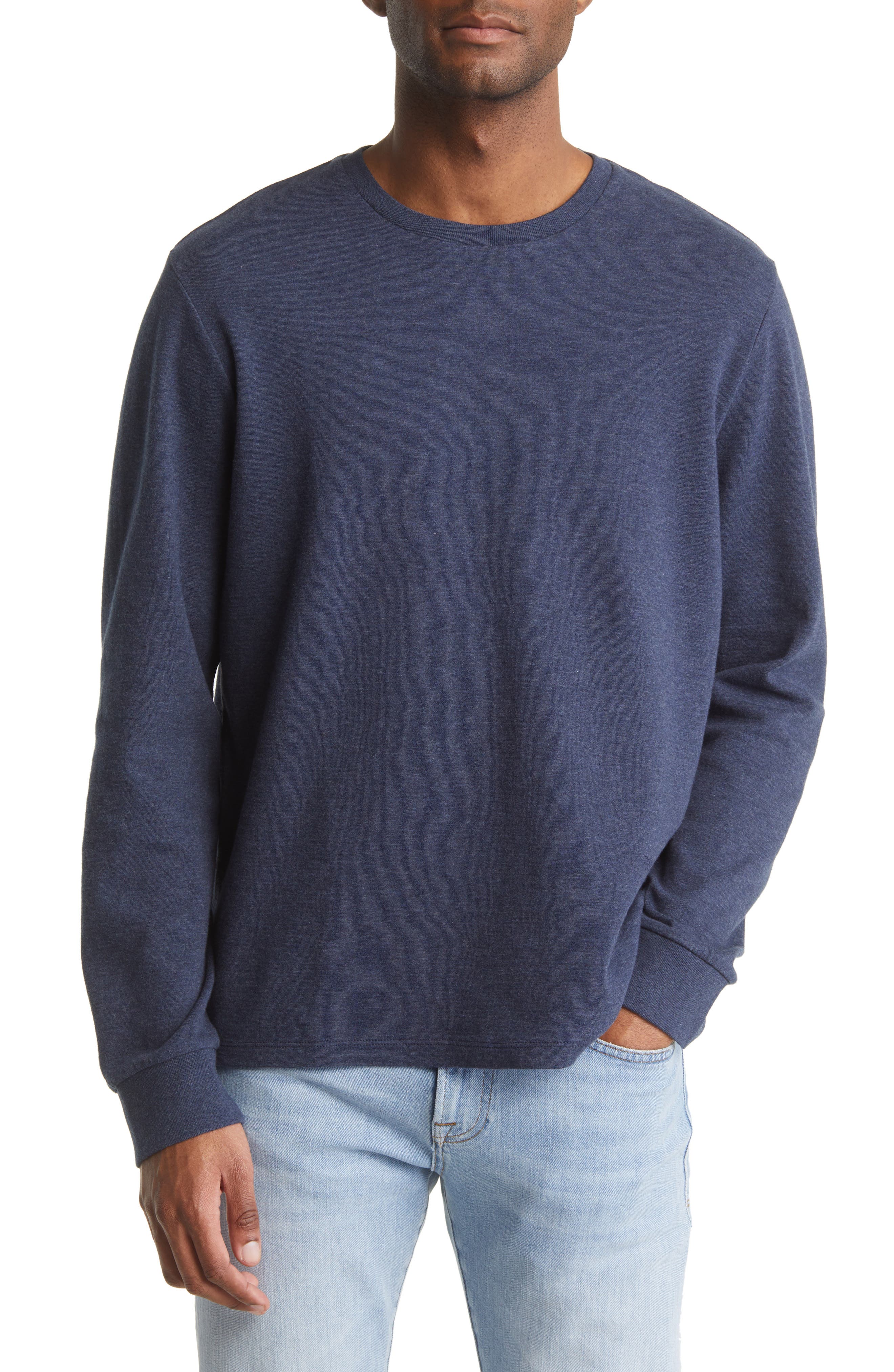 FRAME Duo Fold Long Sleeve Cotton T-Shirt_Heather Midnight Navy