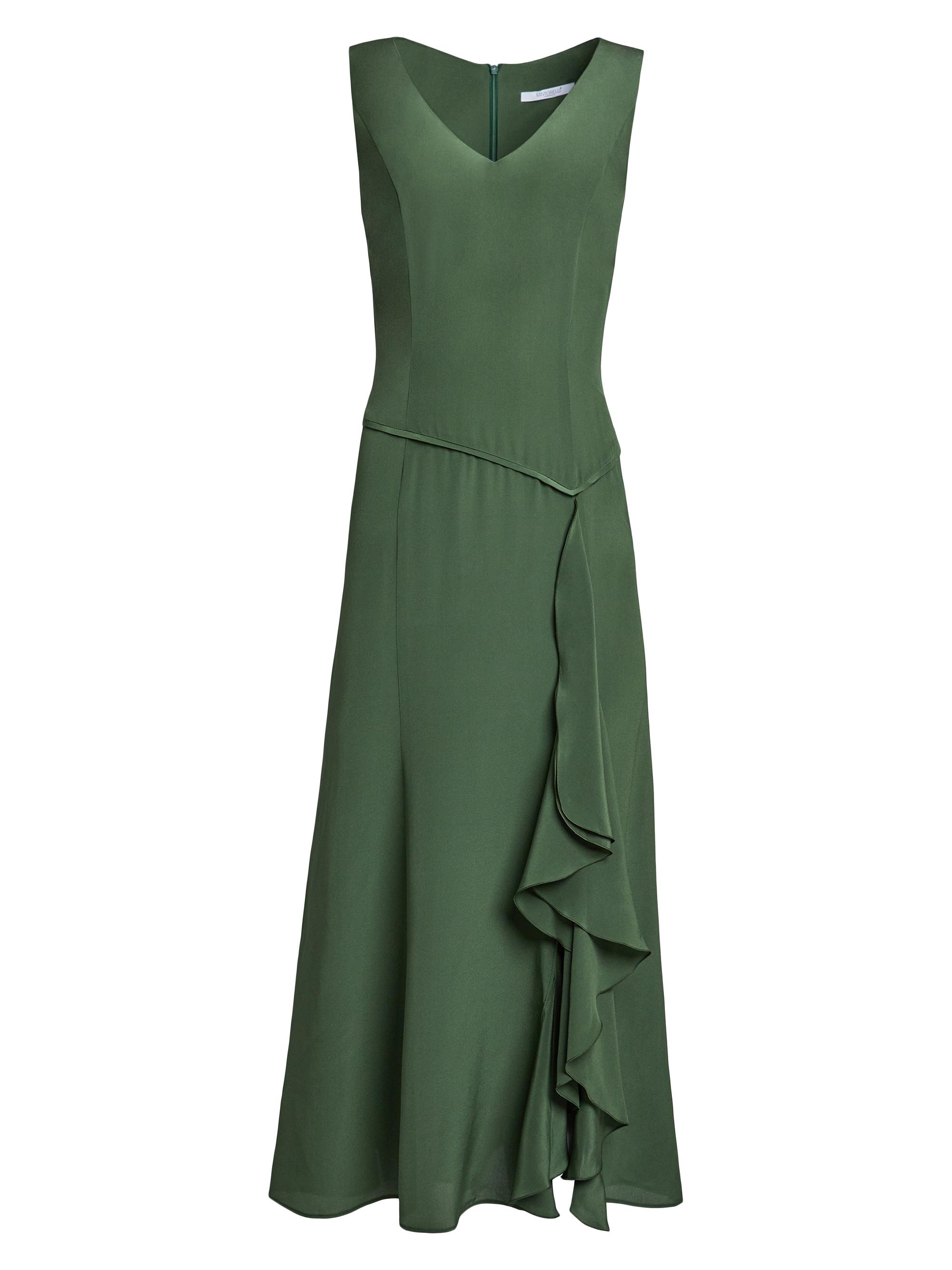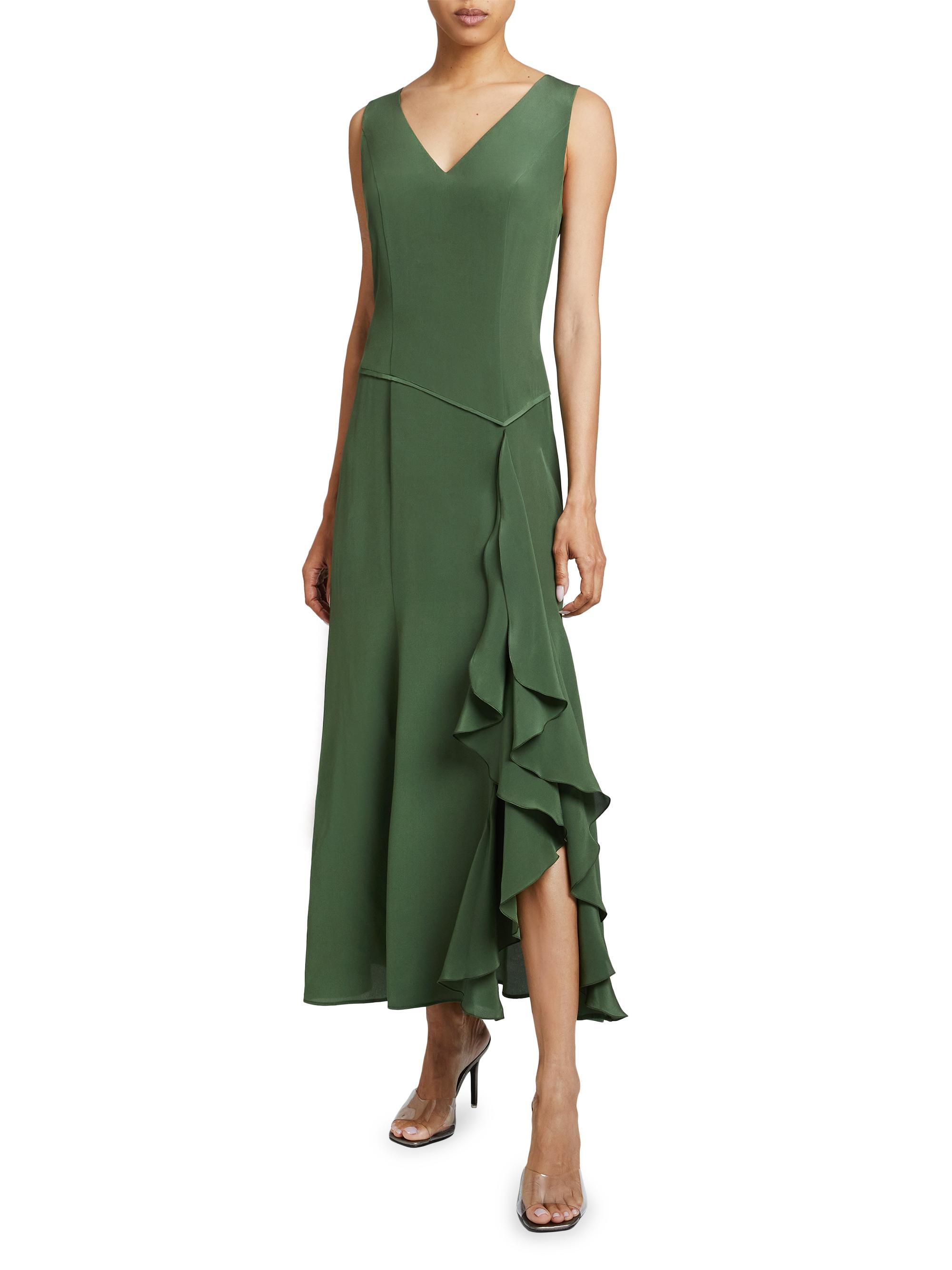Santorelli Ruffle Silk Crepe De Chine Midi-Dress
