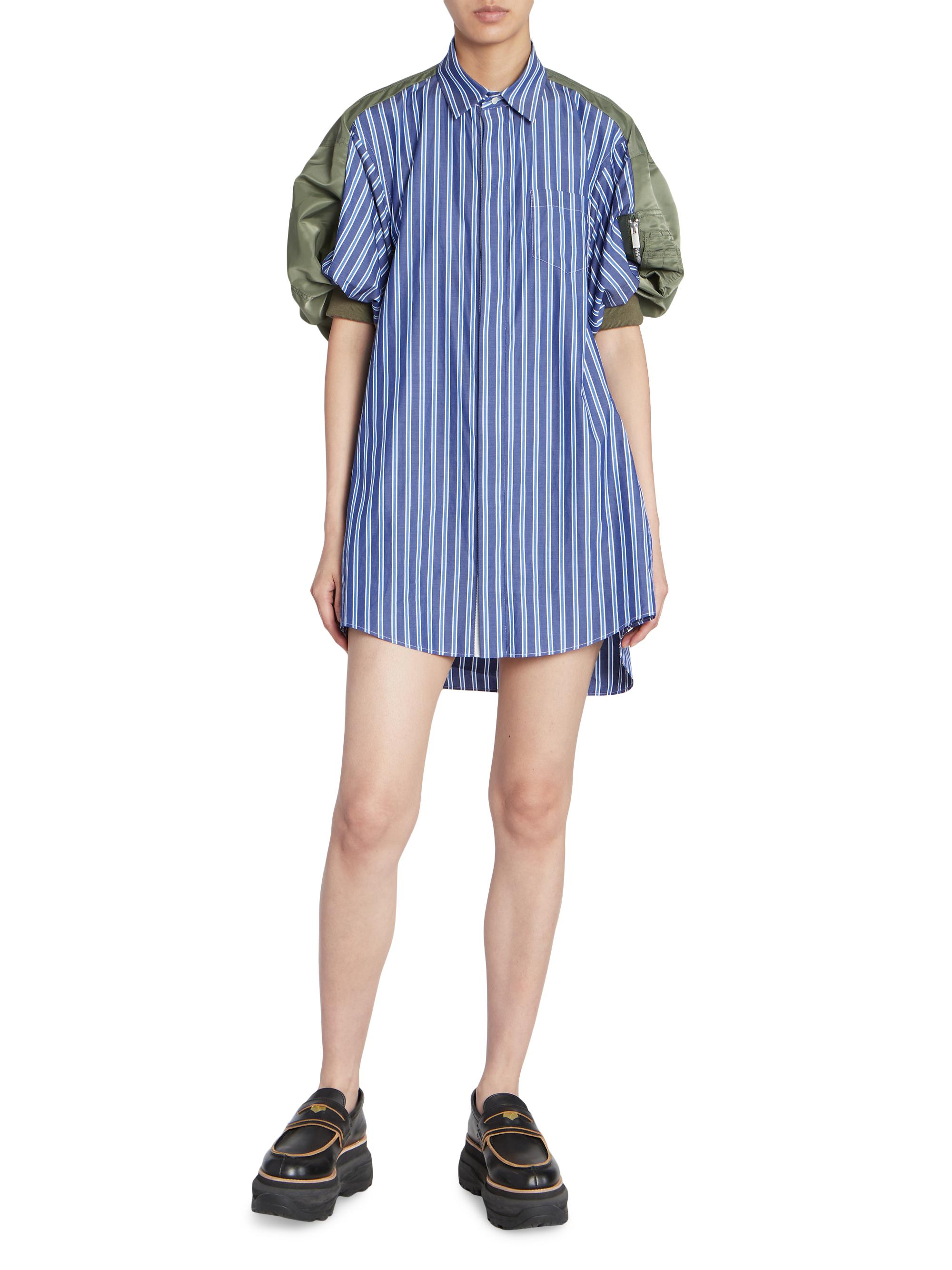 Sacai Nylon Twill & Stripe Cotton Shirtdress