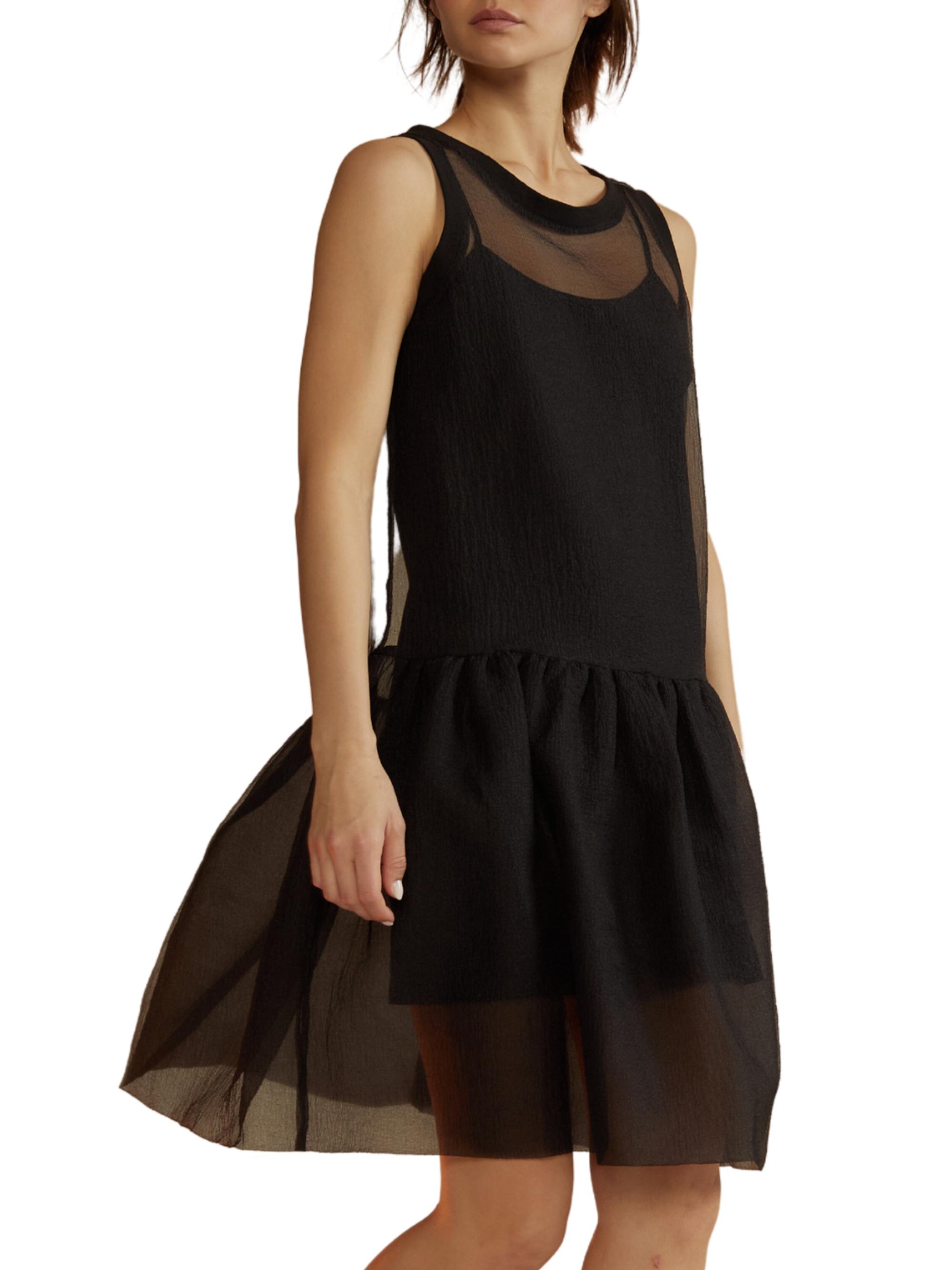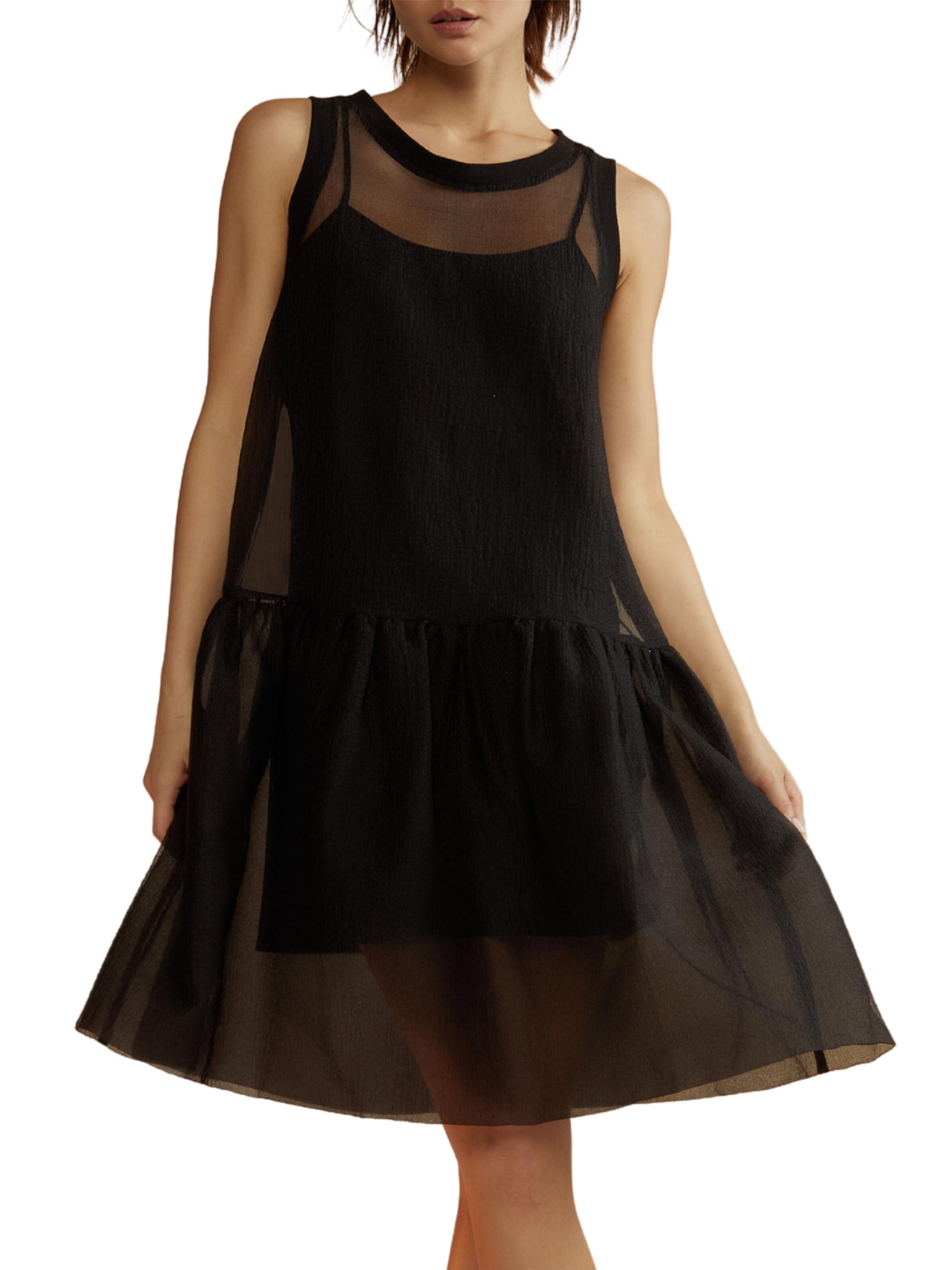 Cynthia Rowley Ruffle Hem Organza Minidress BLACK