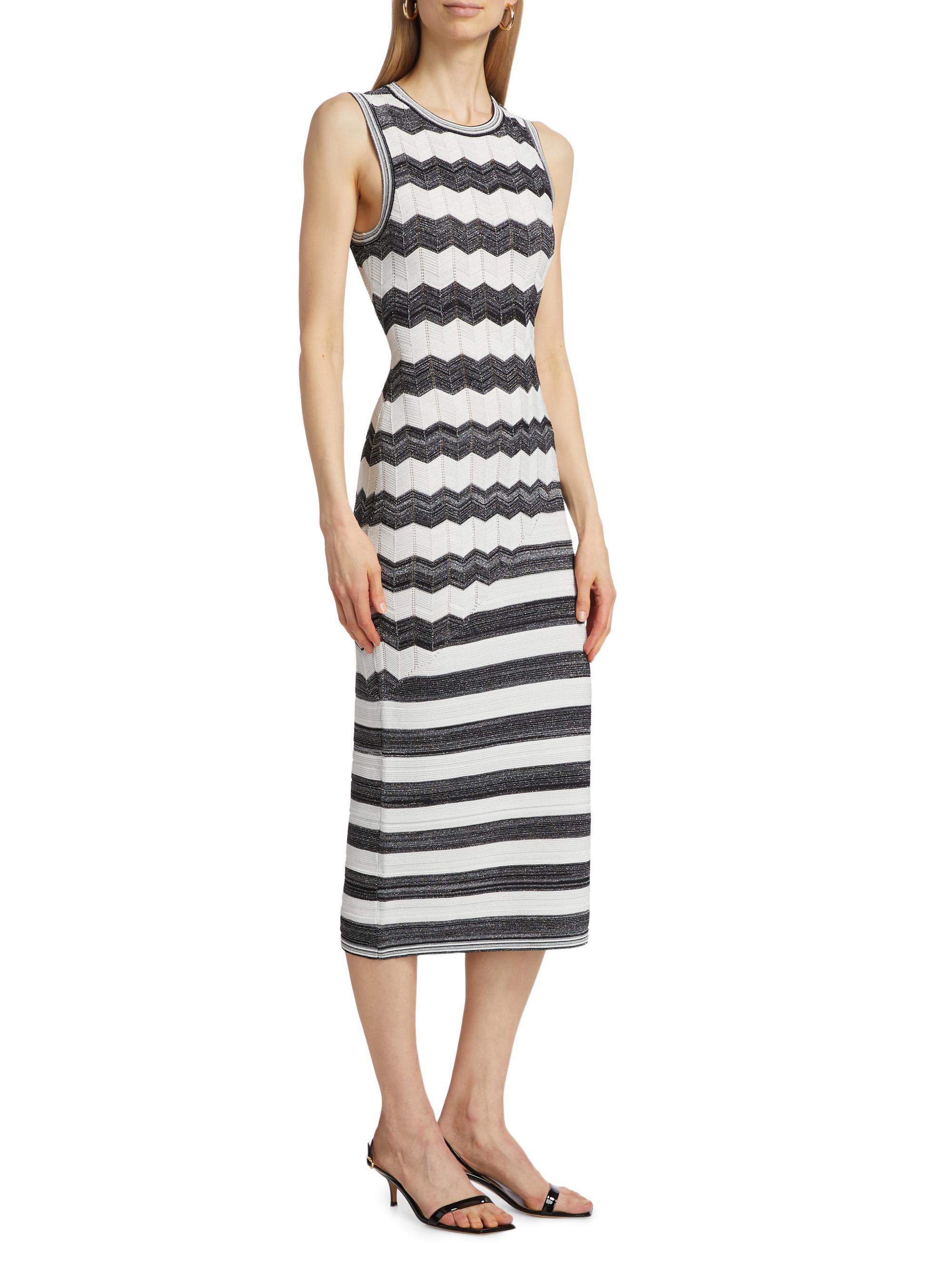 Milly Asymmetric Zig-Zag Knit Midi-Dress