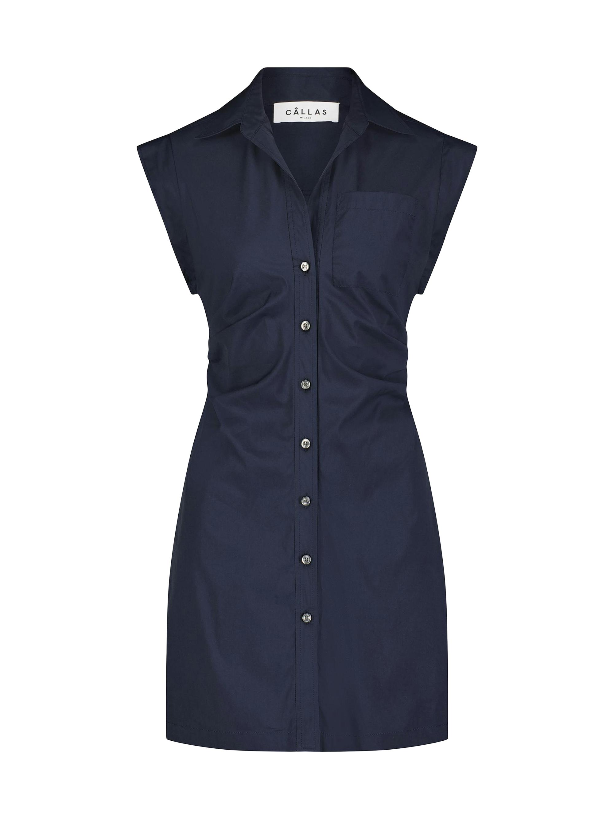 Callas Milano Sleeveless Shirt Dress with Tucked Waist NAVY