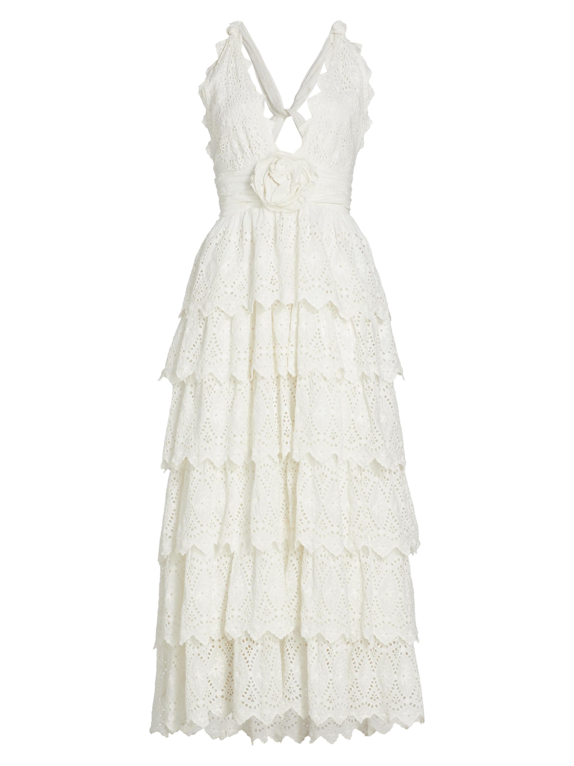 LoveShackFancy Nevis Ruffled Eyelet Maxi Dress