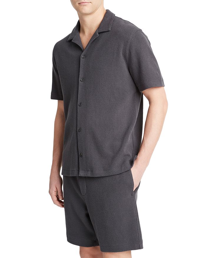 Vince Cotton Blend Boucle Regular Fit Button Down Camp Shirt
