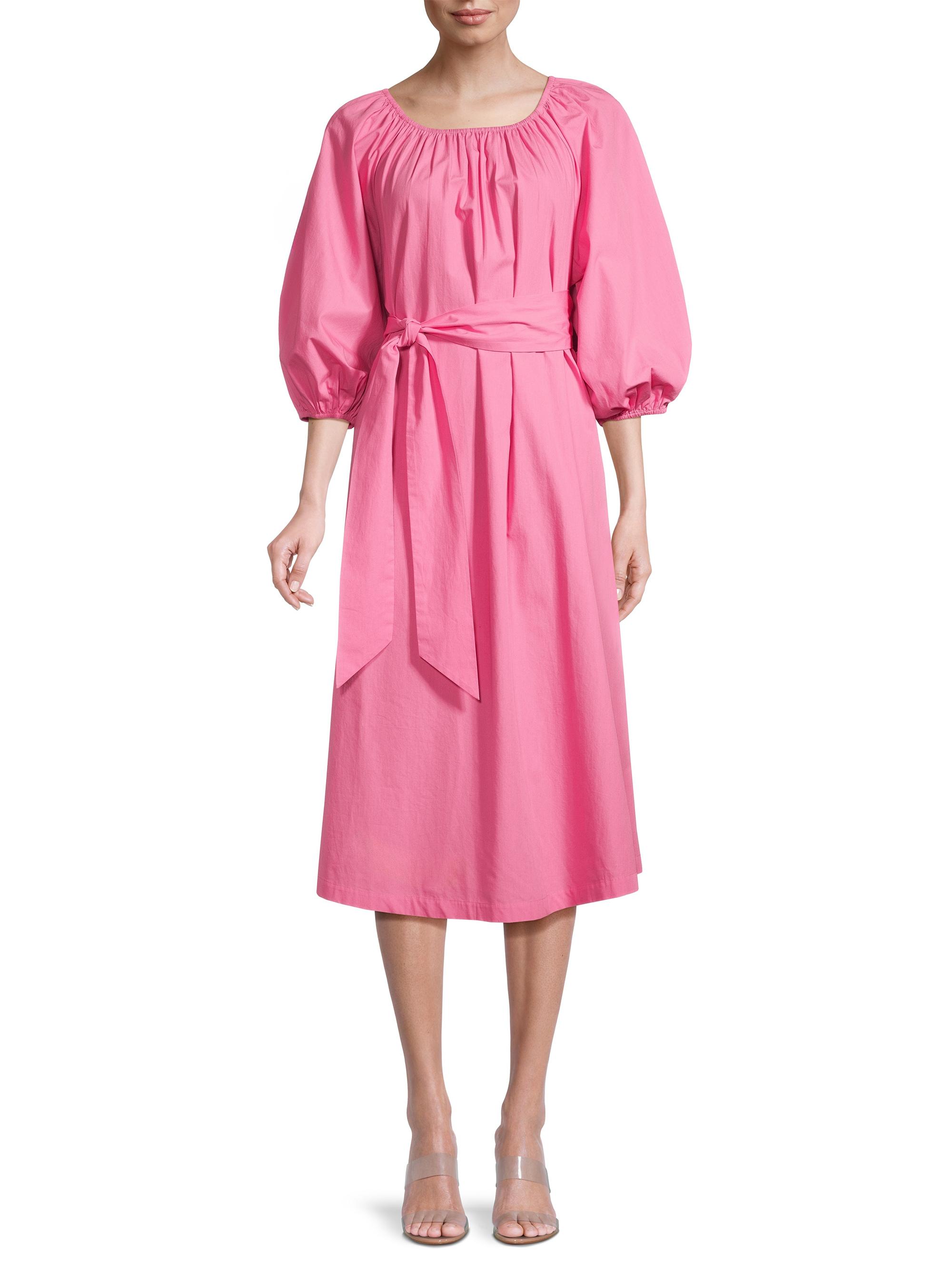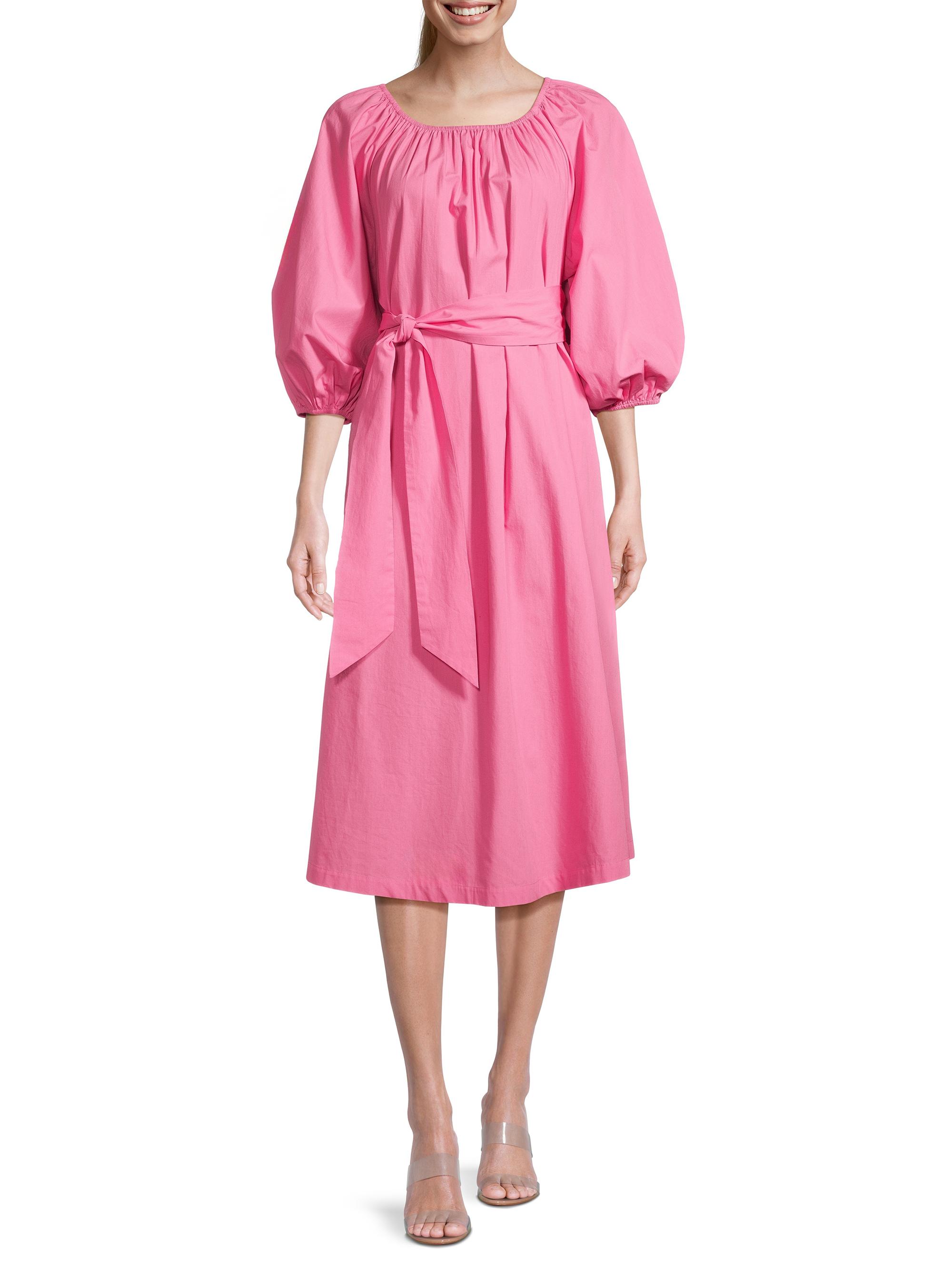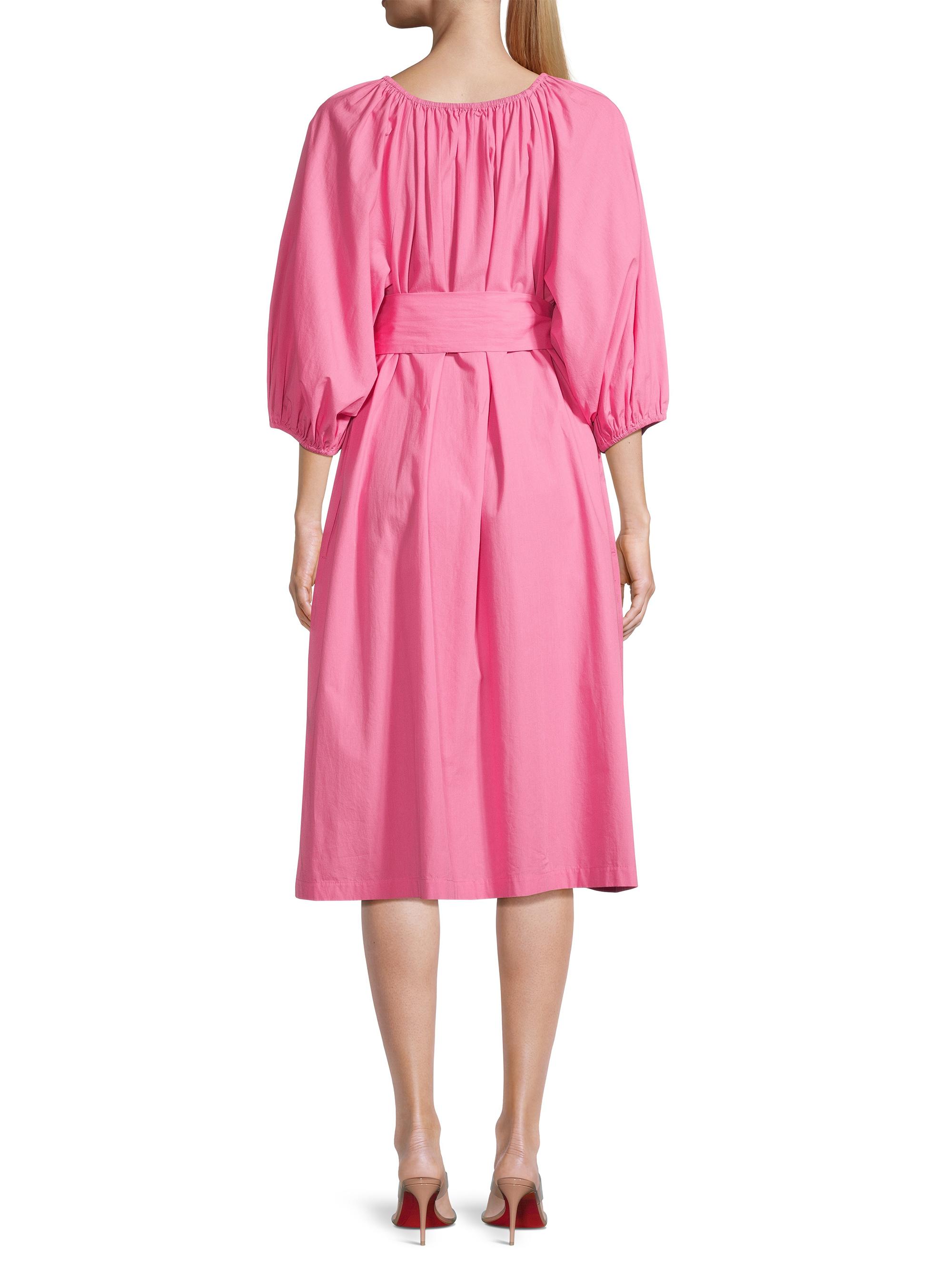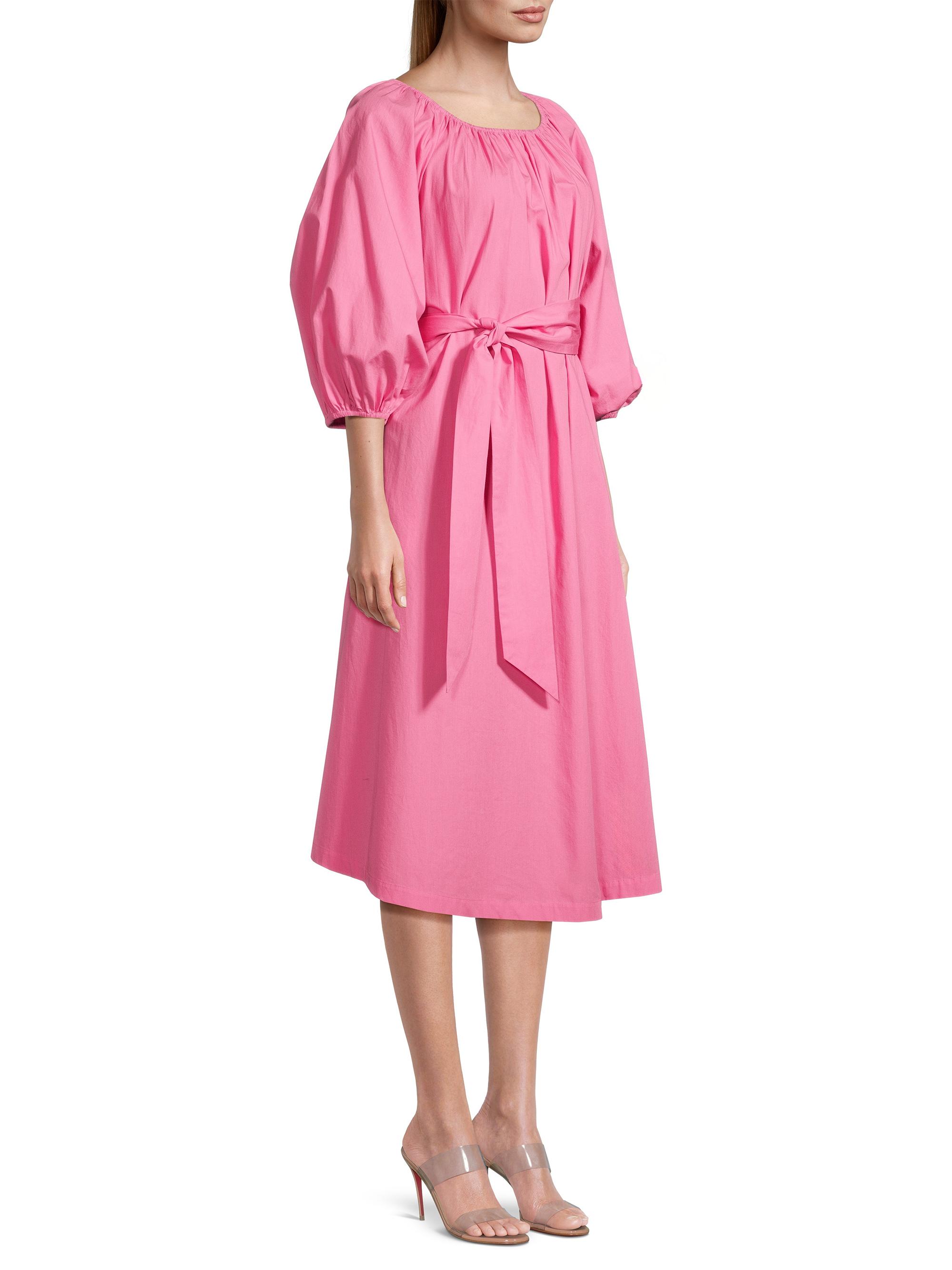 Frances Valentine Bliss Poplin Puff-Sleeve Midi-Dress