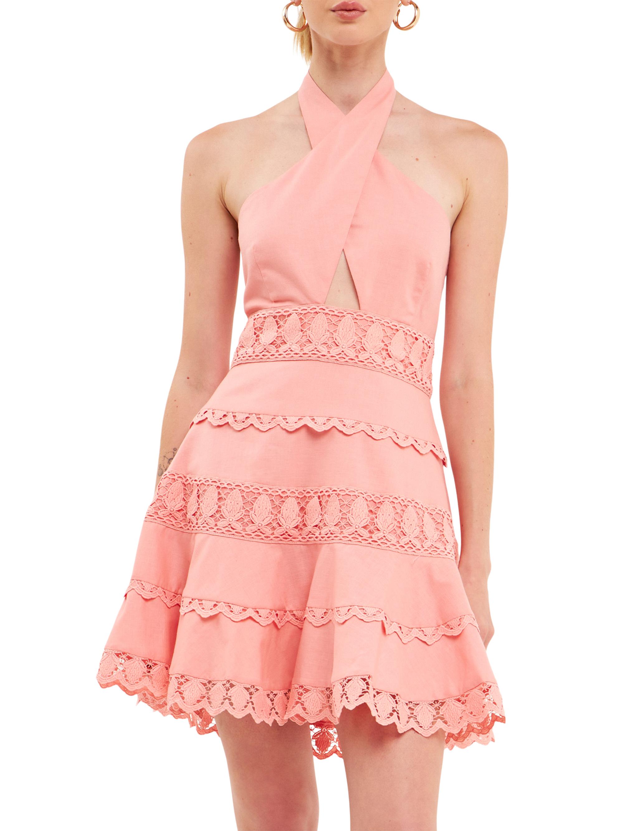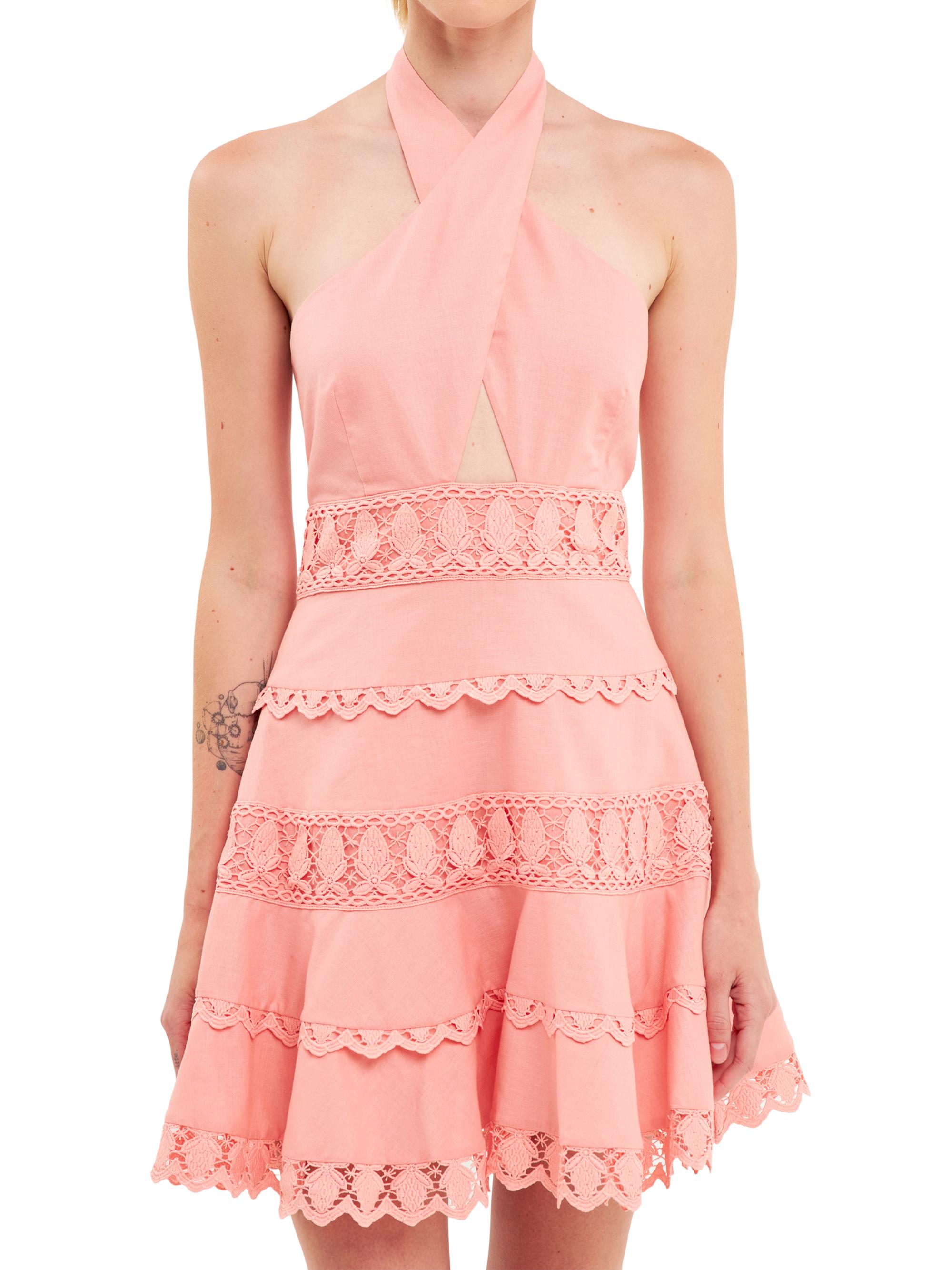 Endless Rose Halter Neck Lace Trim Dress CREAM PUFF