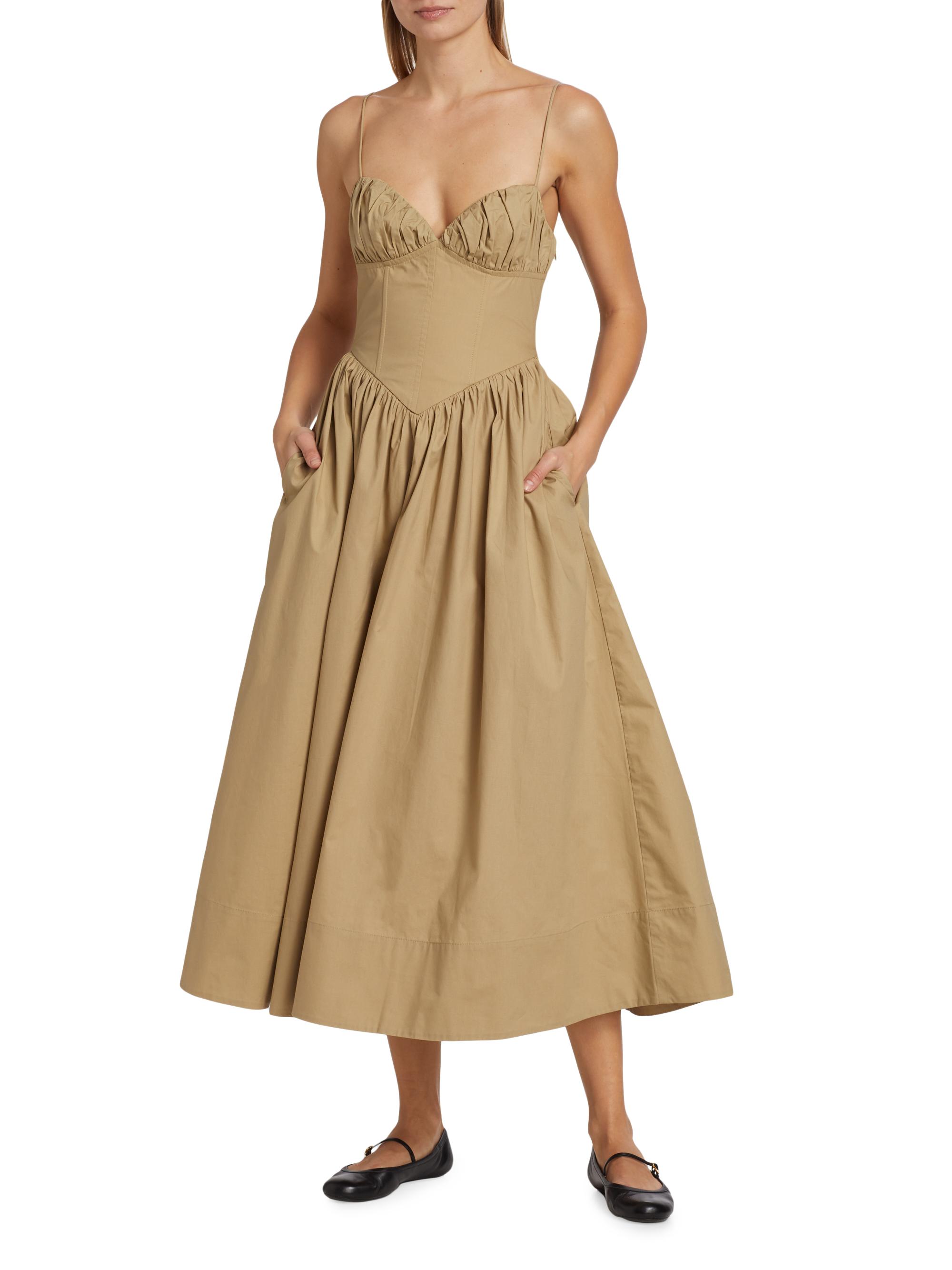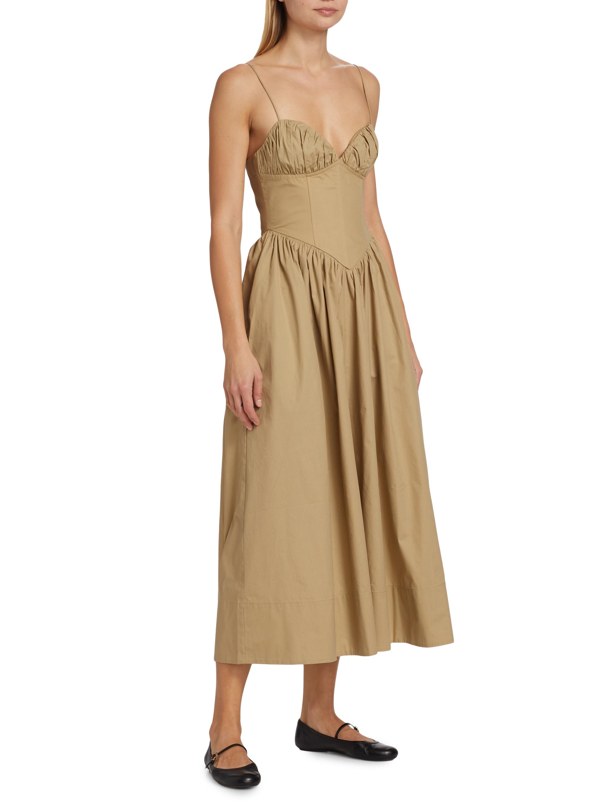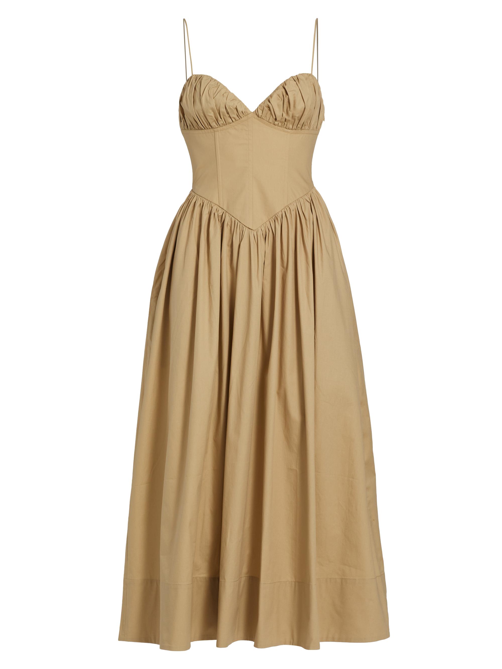 Ronny Kobo Carmine Cotton Corset Midi-Dress SAND
