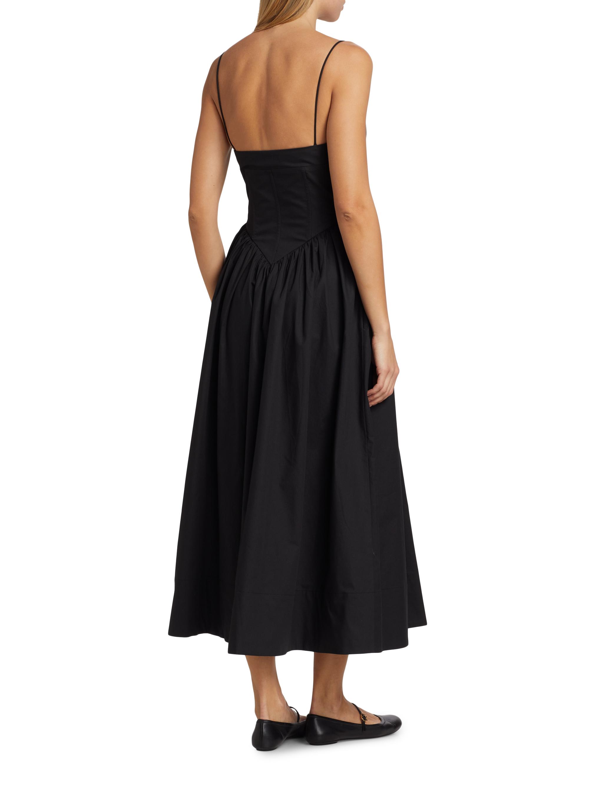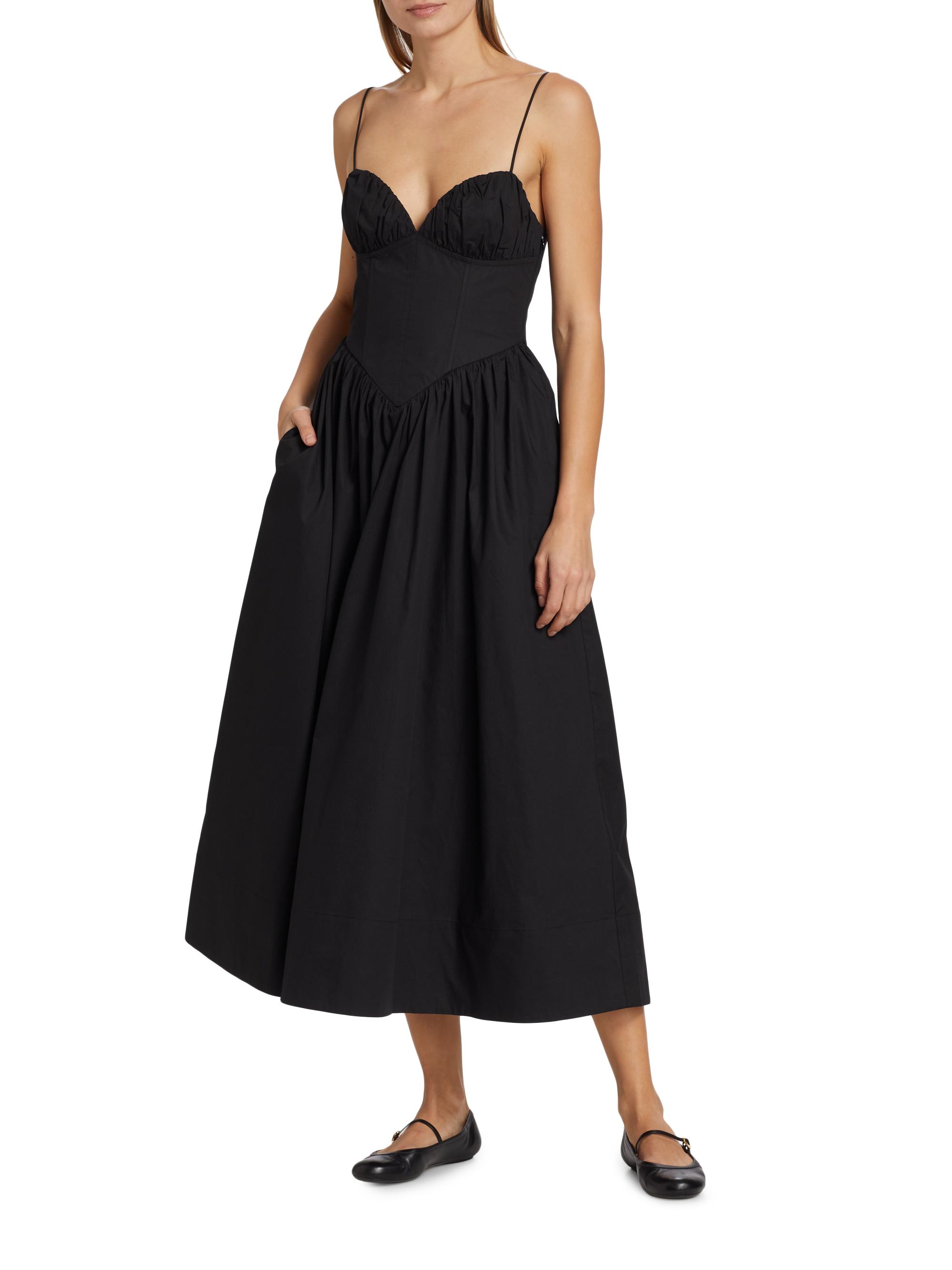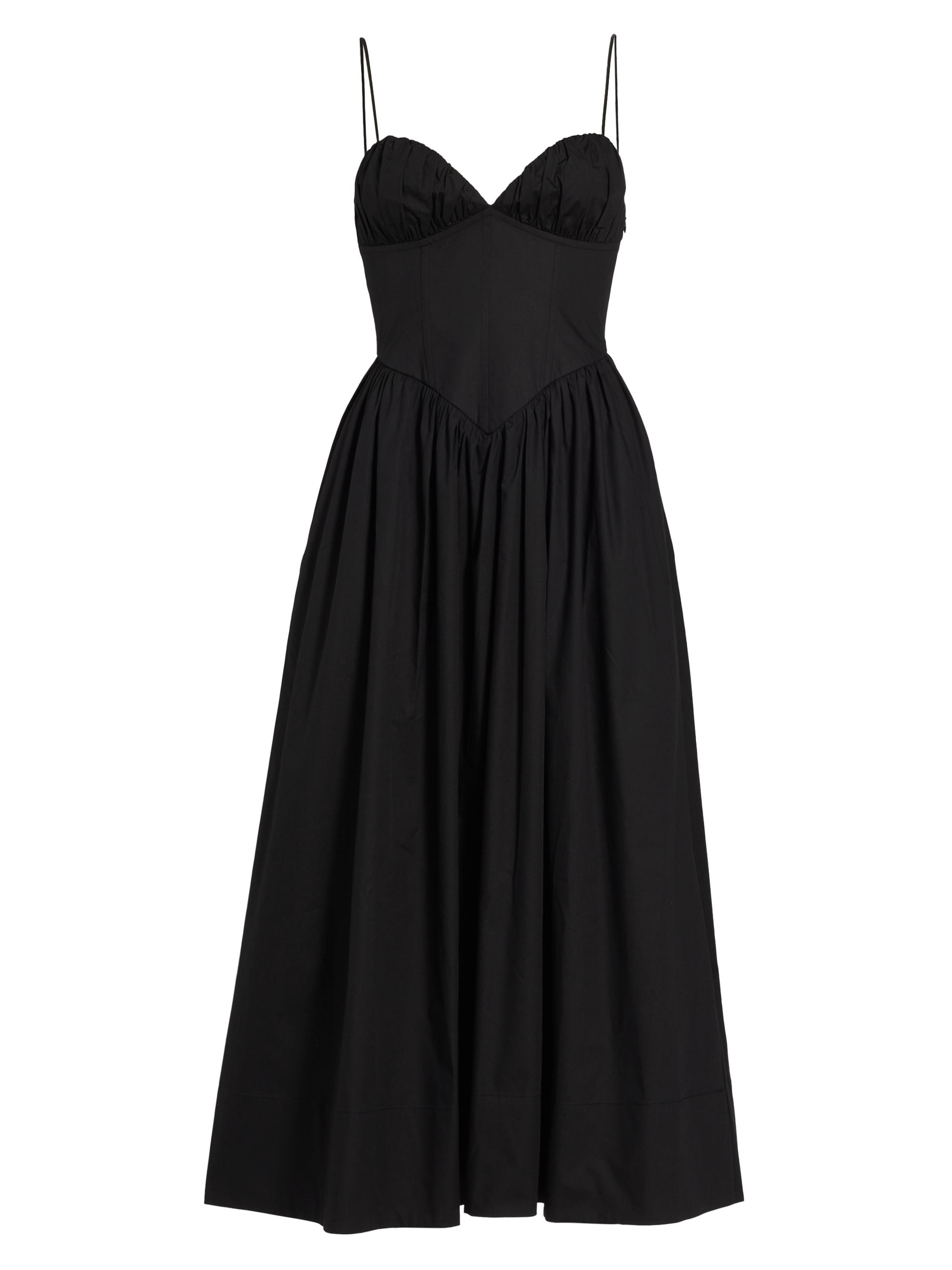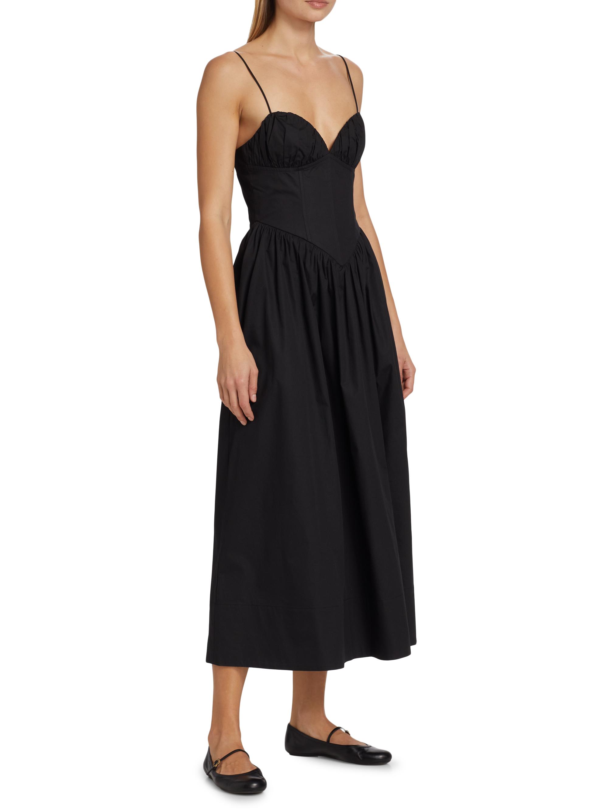 Ronny Kobo Carmine Cotton Corset Midi-Dress JET BLACK