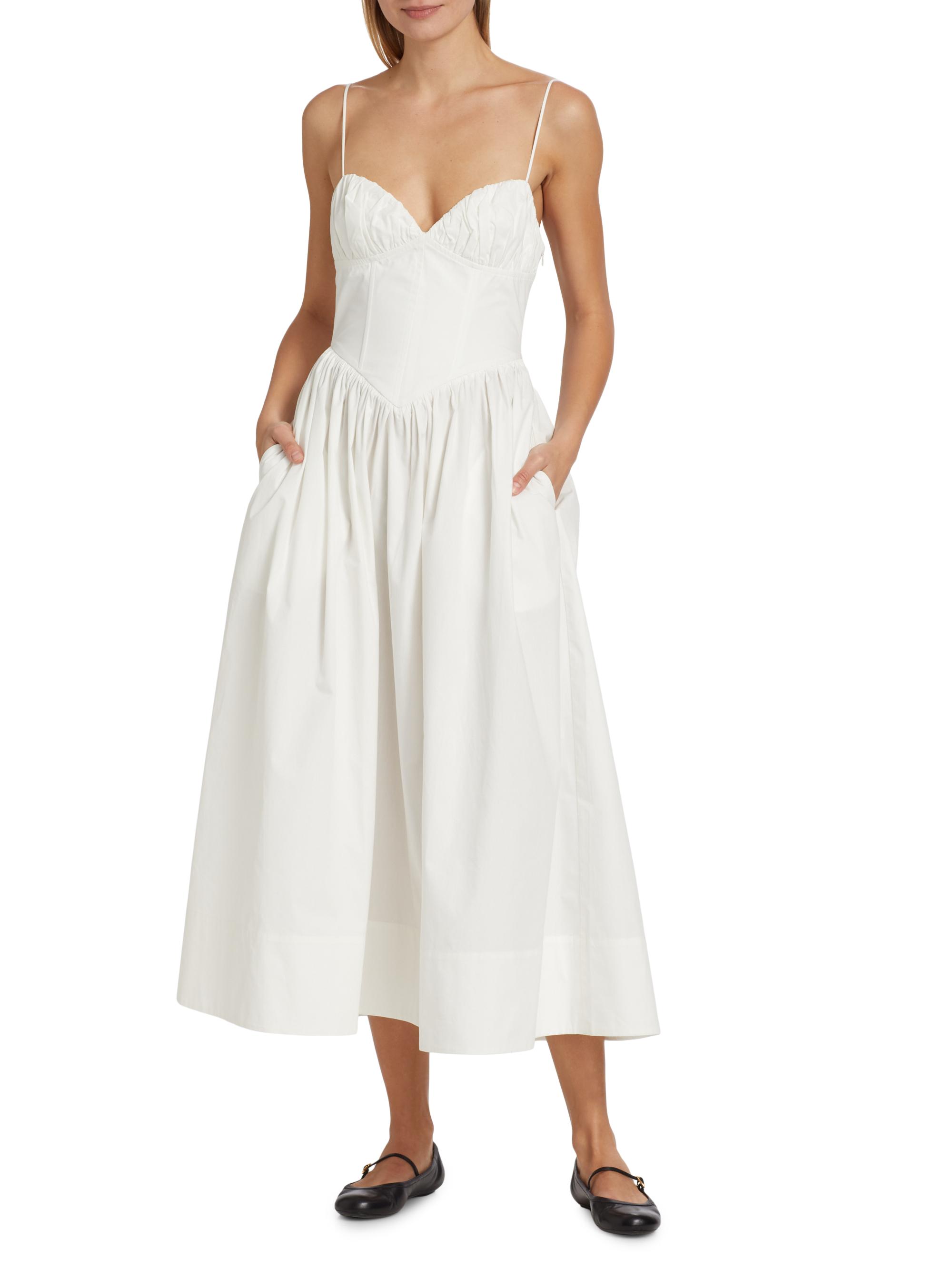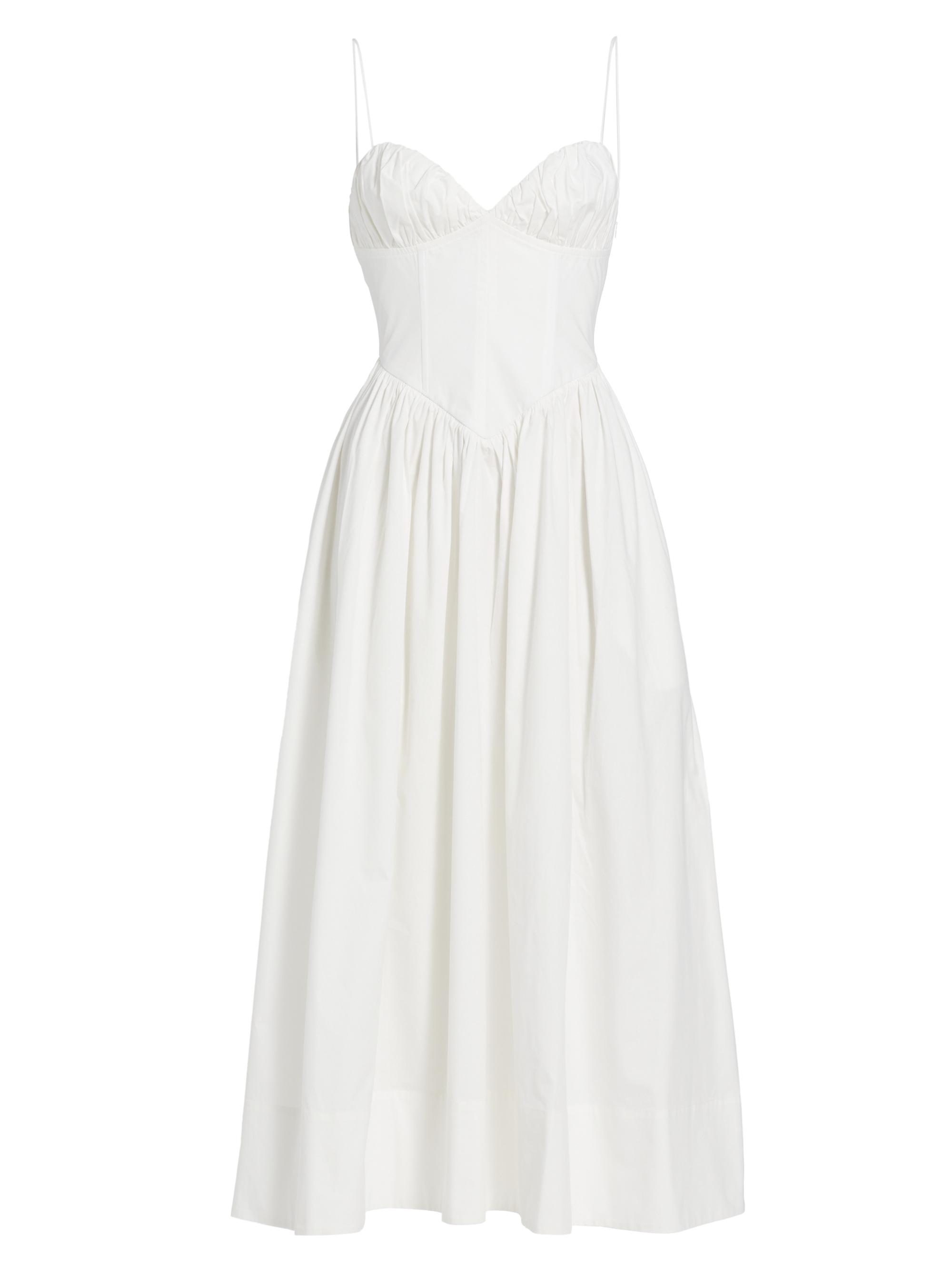 Ronny Kobo Carmine Cotton Corset Midi-Dress OPTIC WHITE
