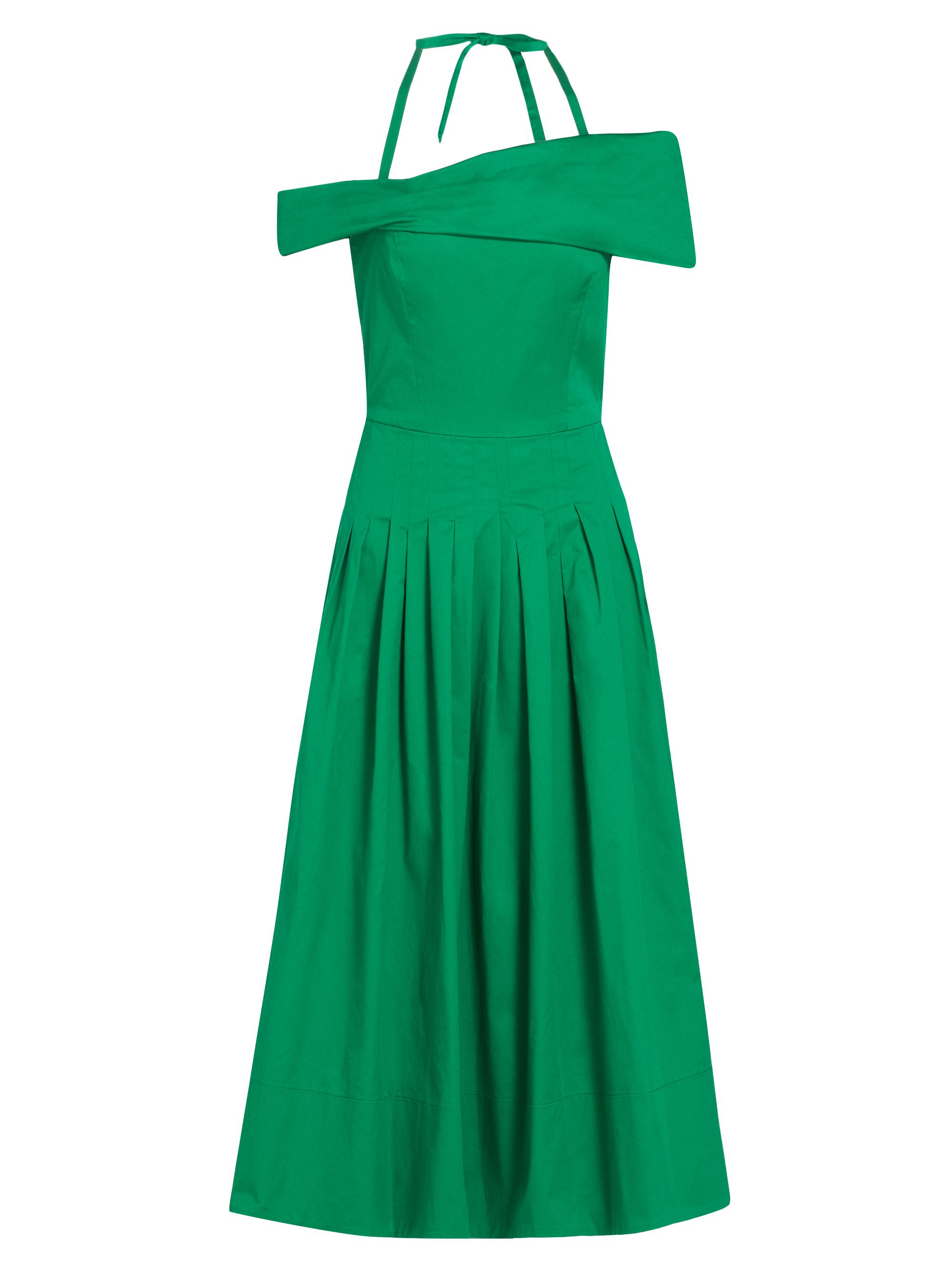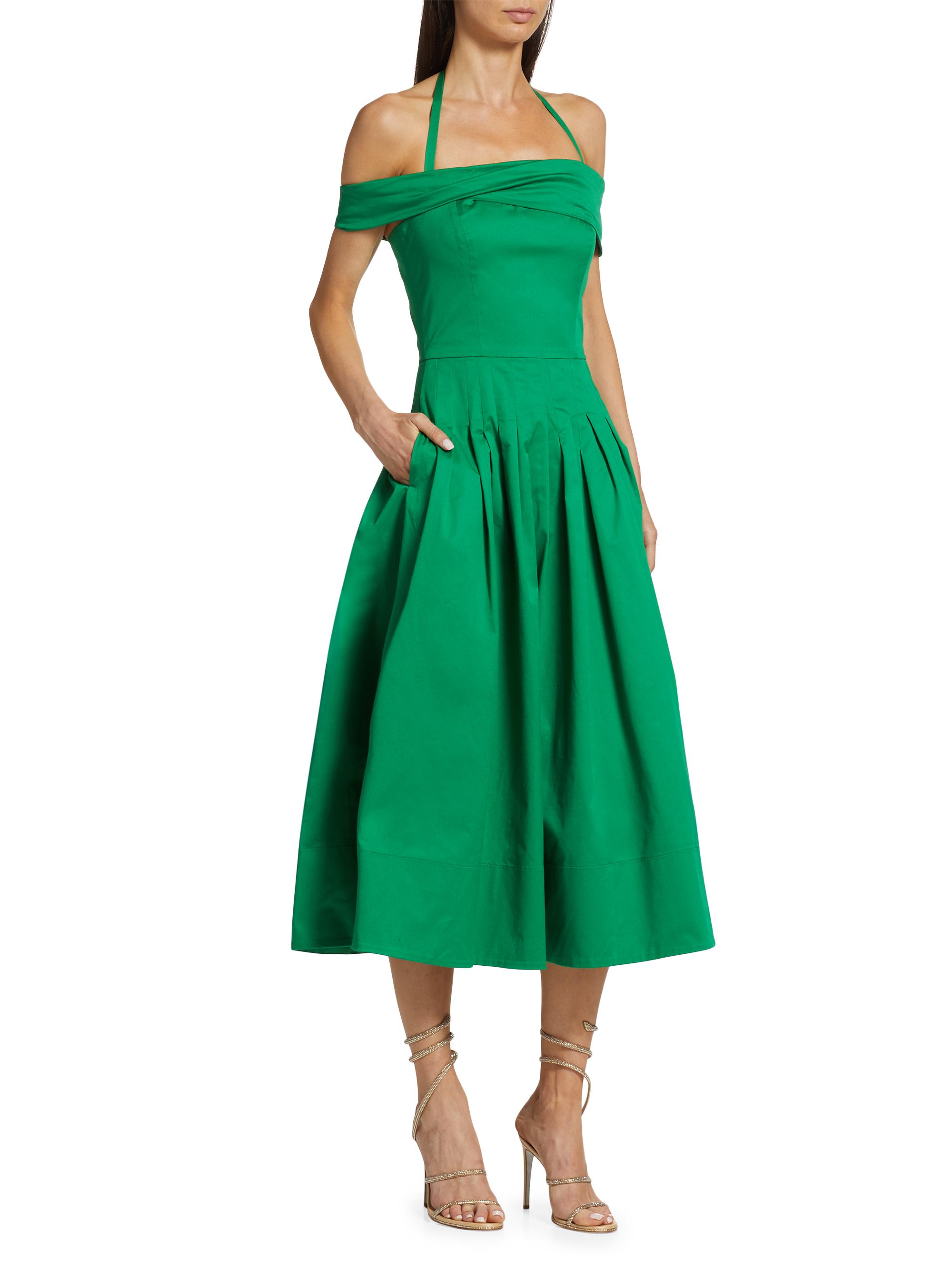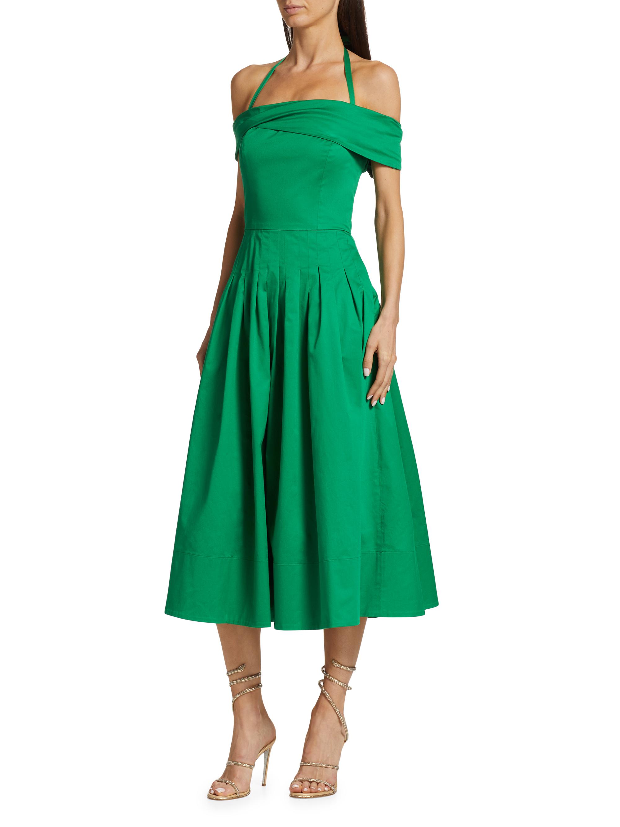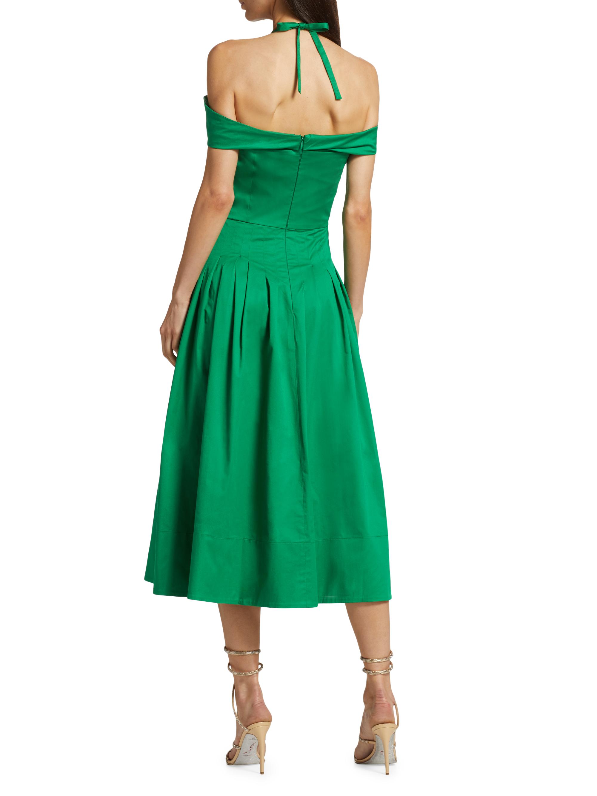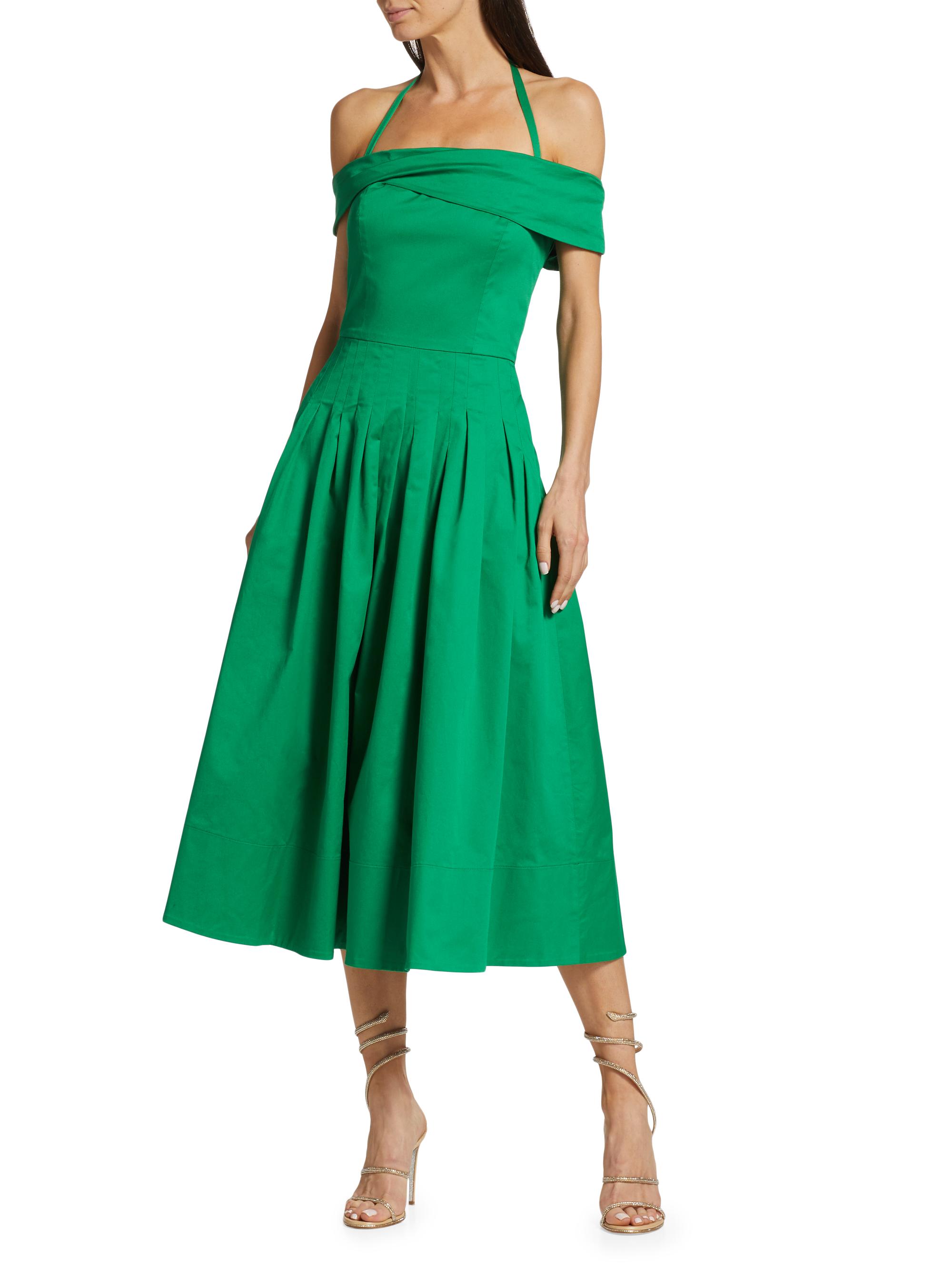 Oscar de la Renta Off-the-Shoulder Halter Midi-Dress