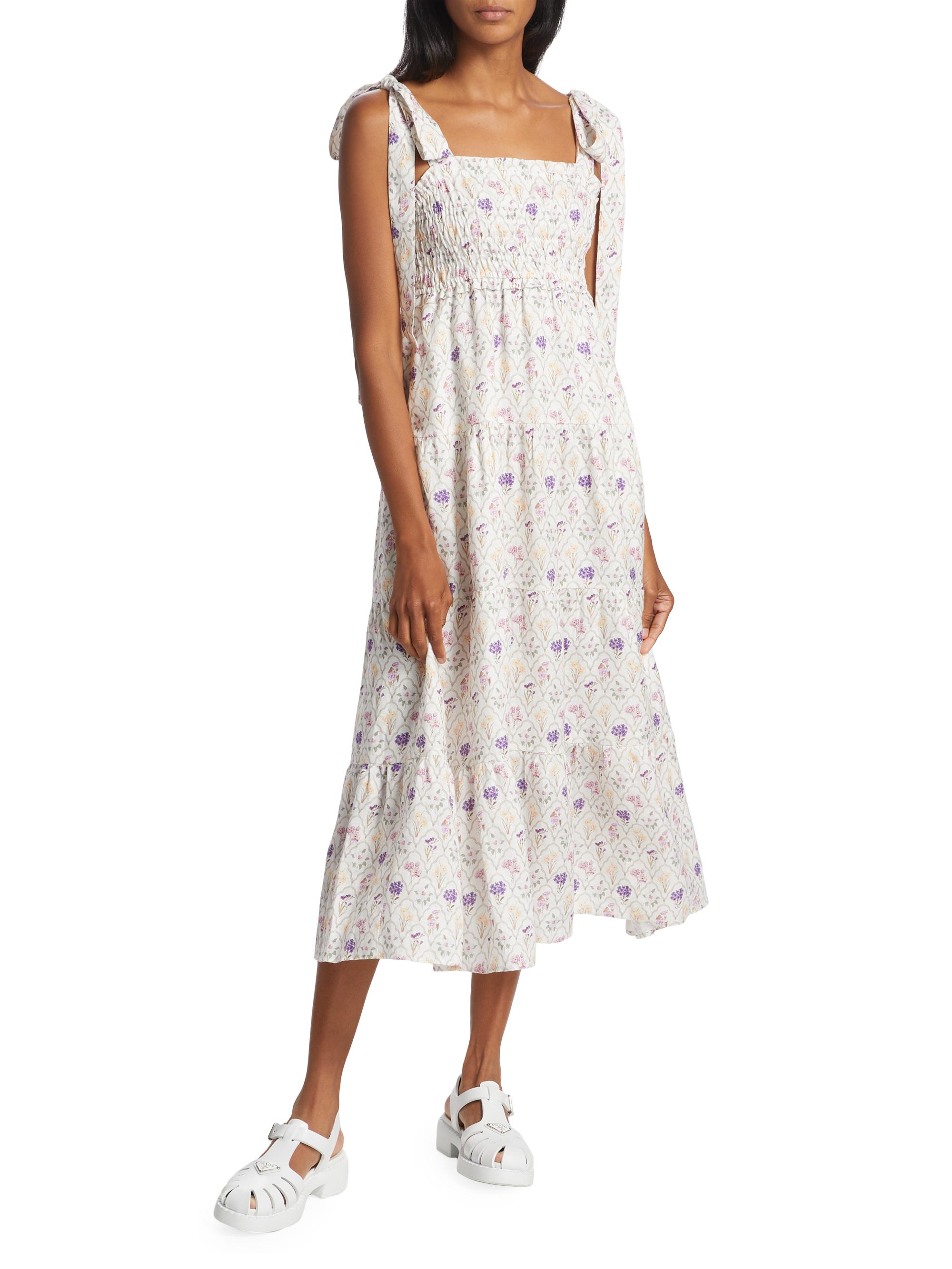 Kivari Fleur Smocked Linen-Cotton Midi-Dress