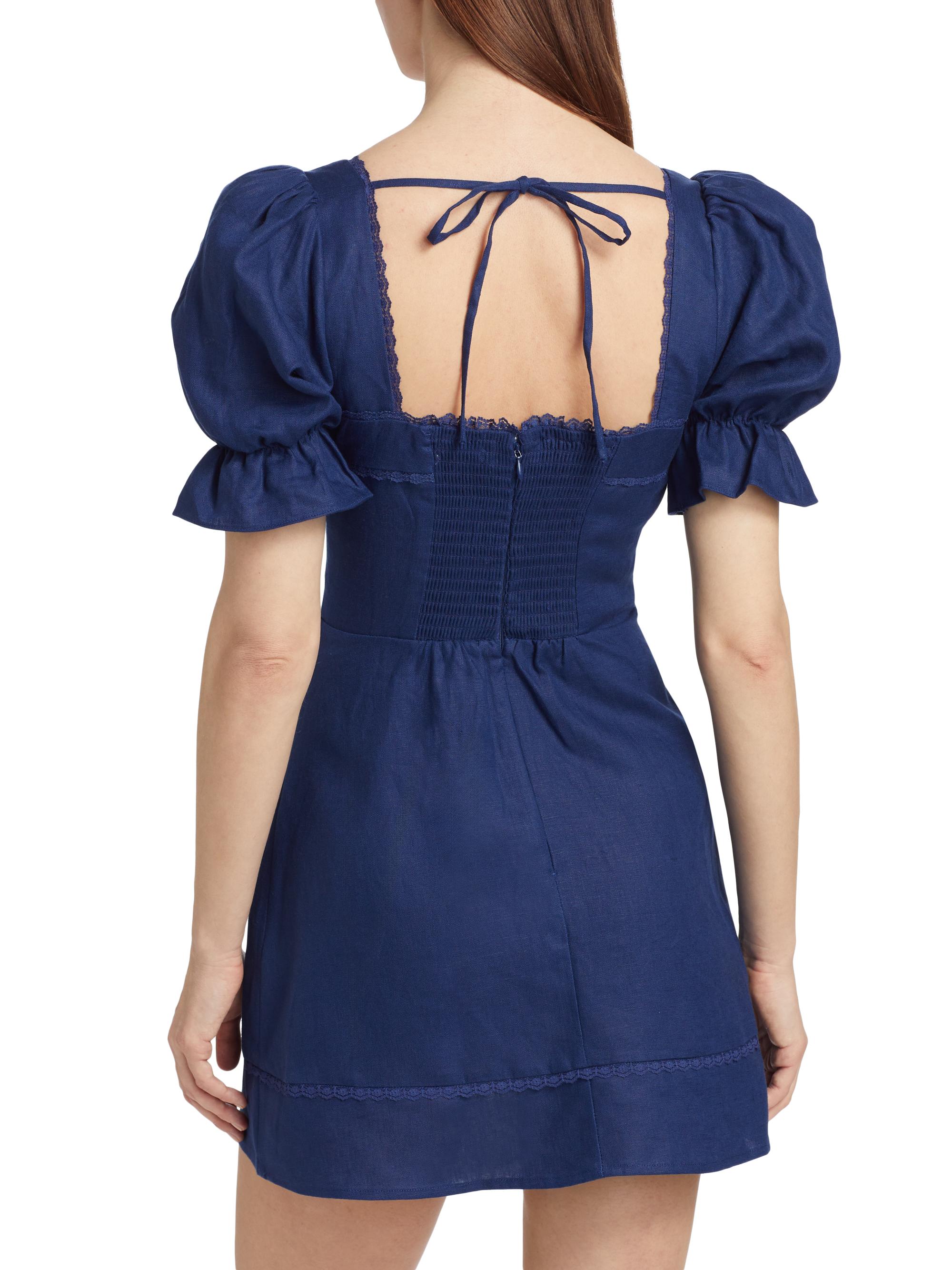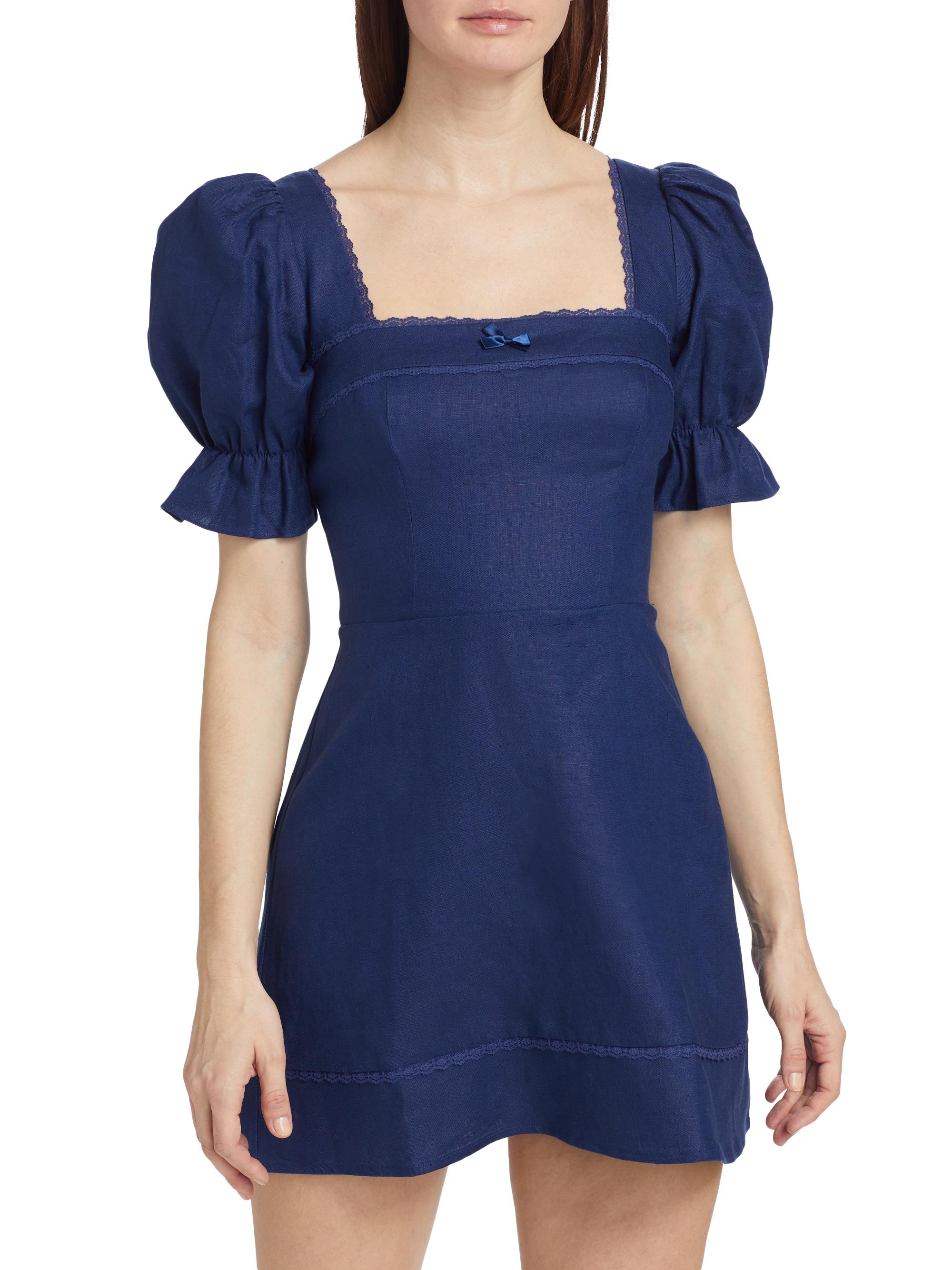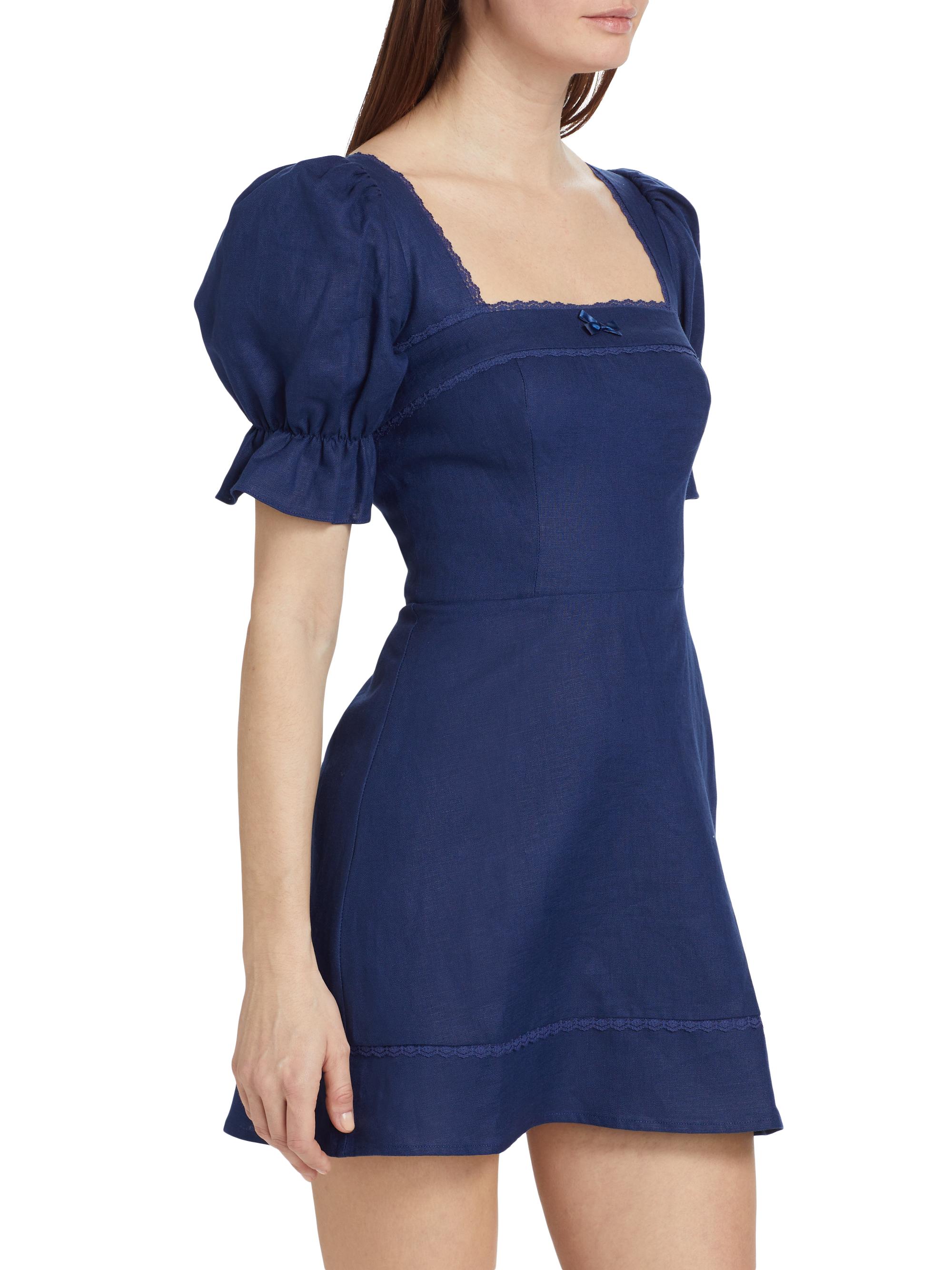 Reformation Evianna Linen Puff-Sleeve Minidress