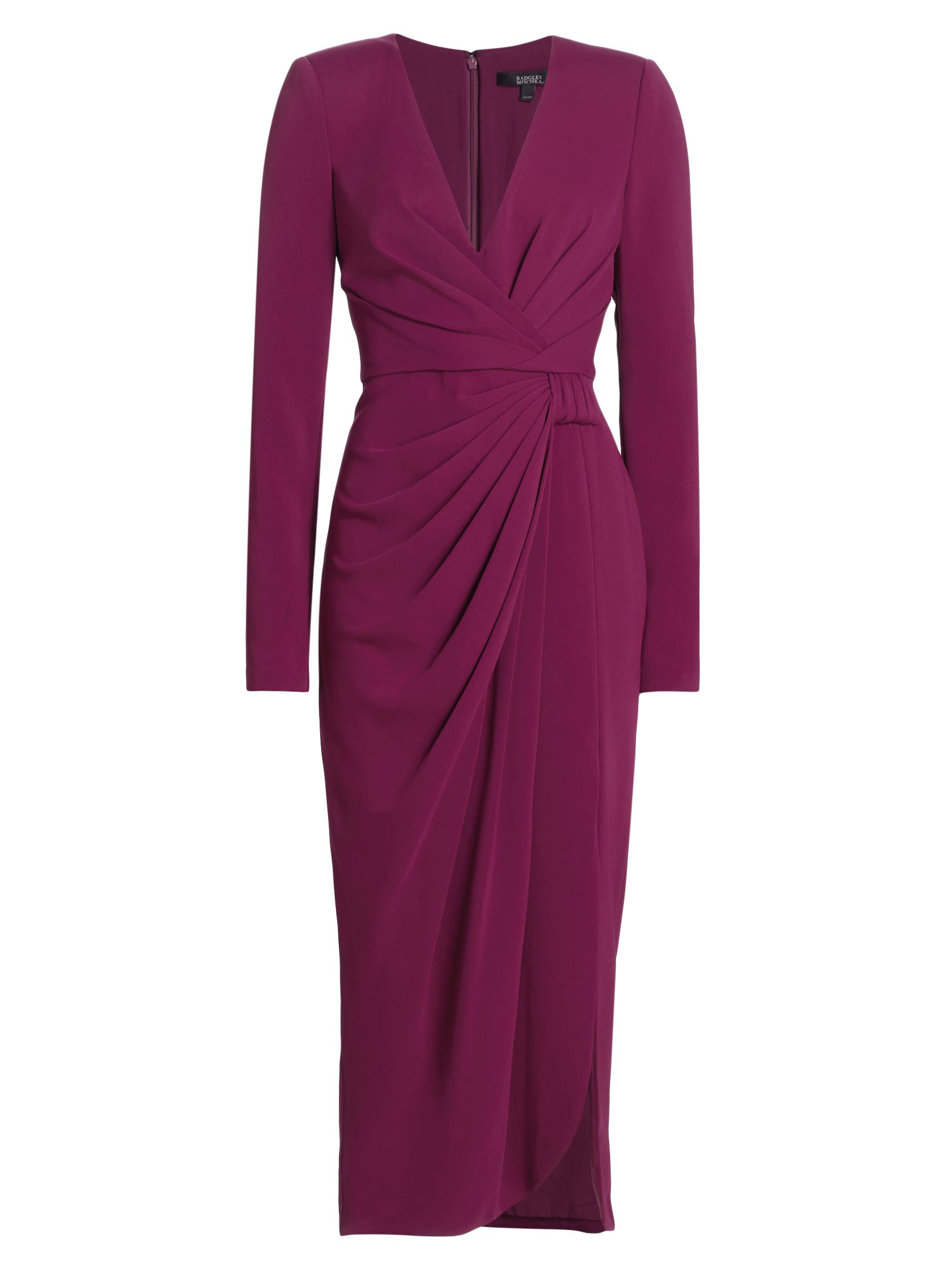 Badgley Mischka Gathered Crepe Midi-Dress