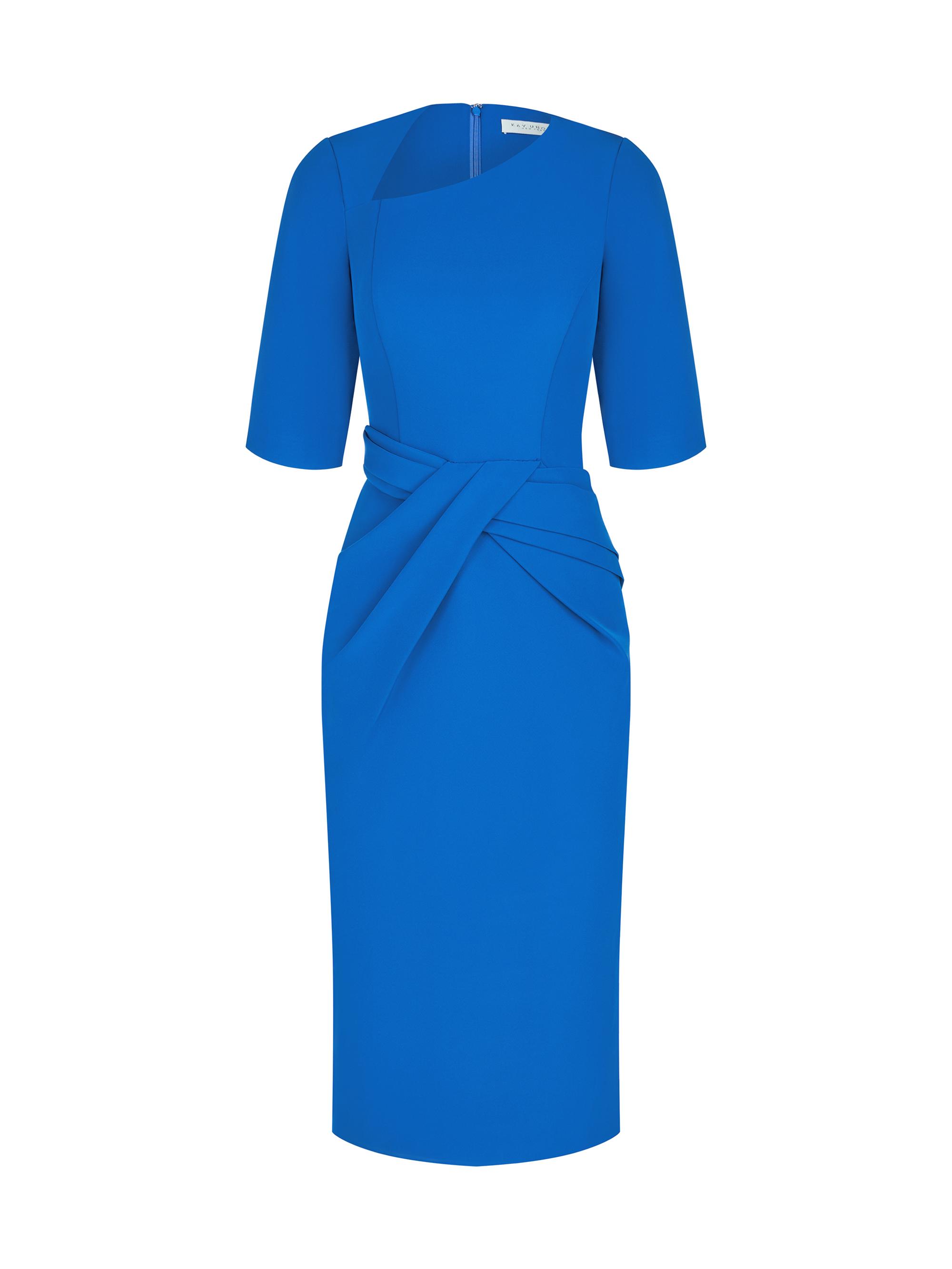 Kay Unger Alexa Pleated Midi-Dress DEEP BLUE