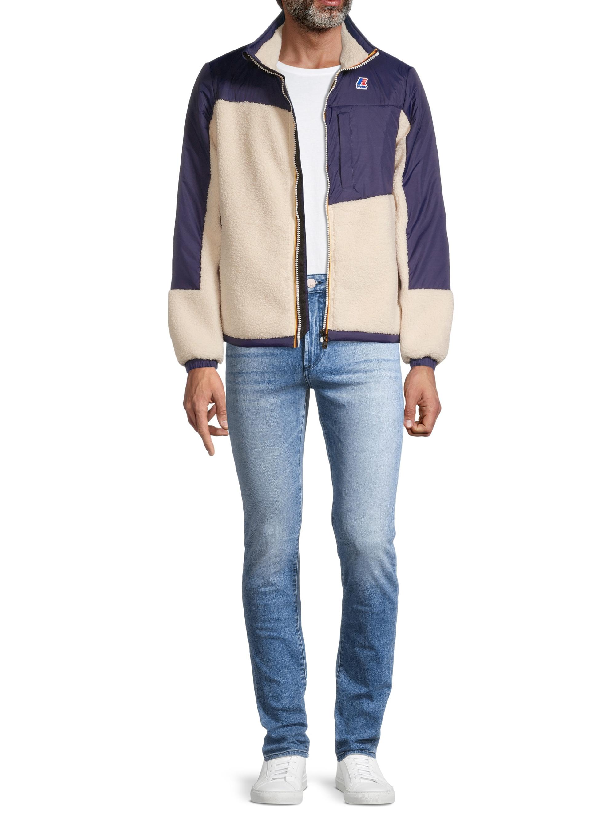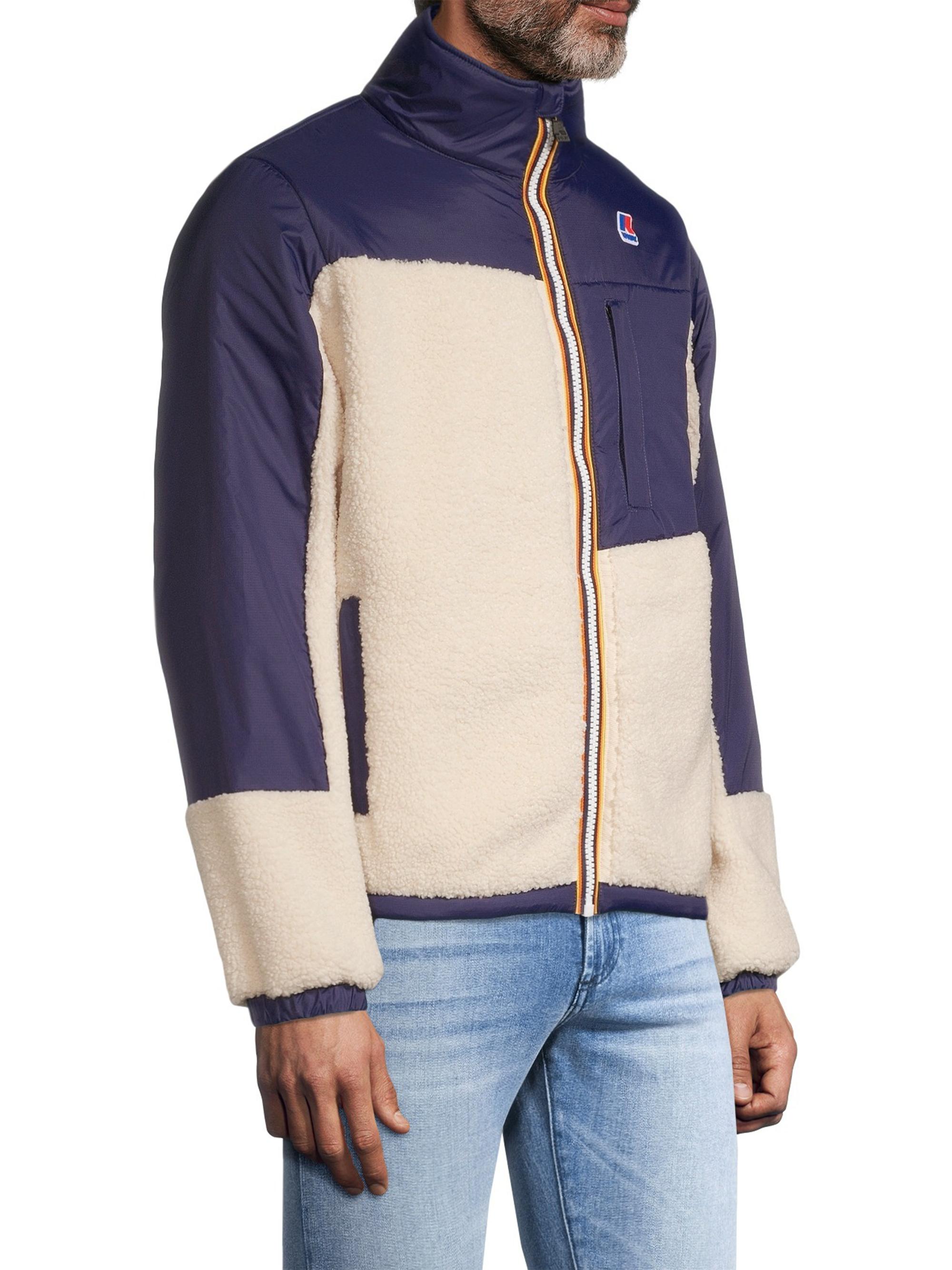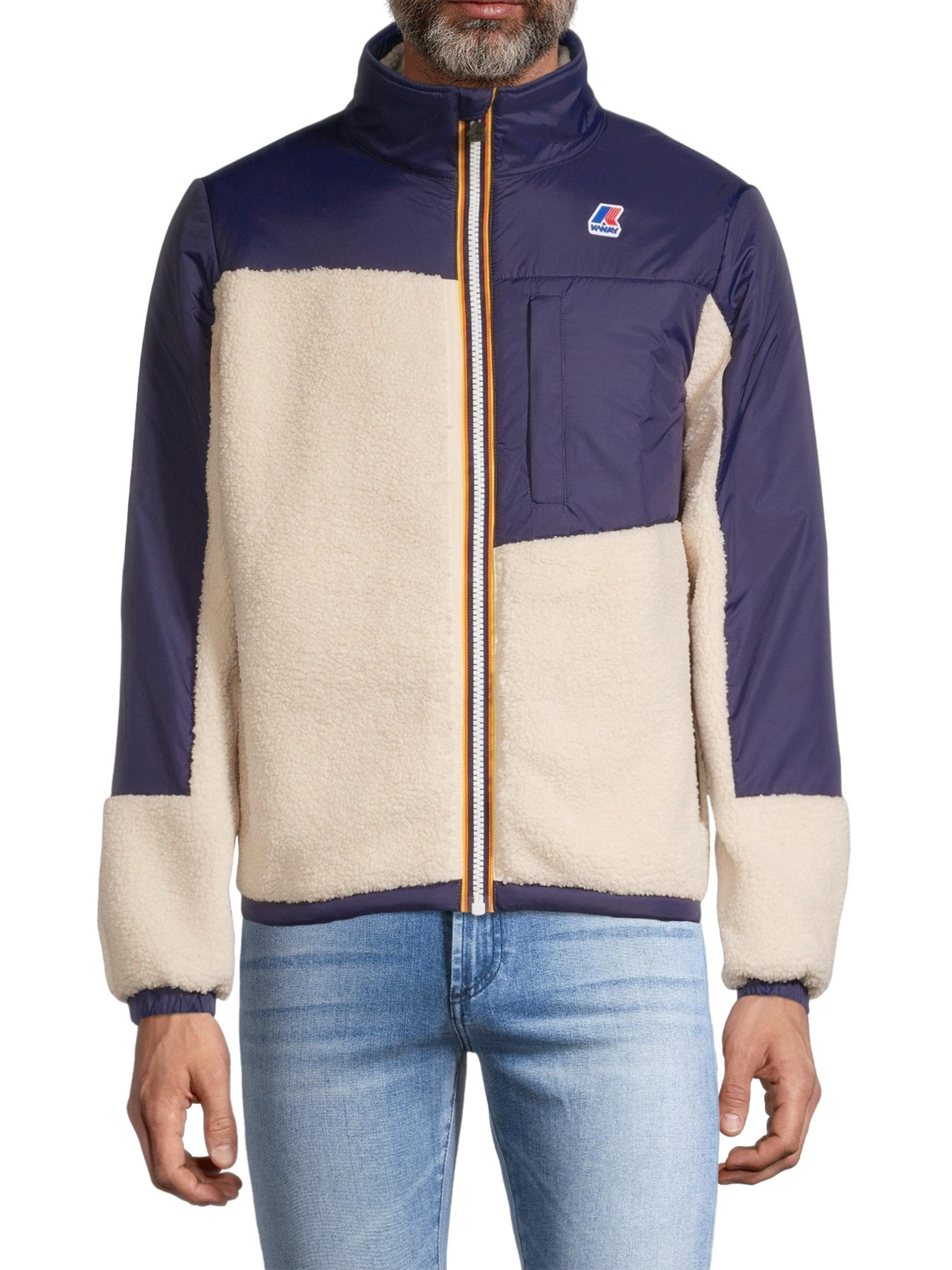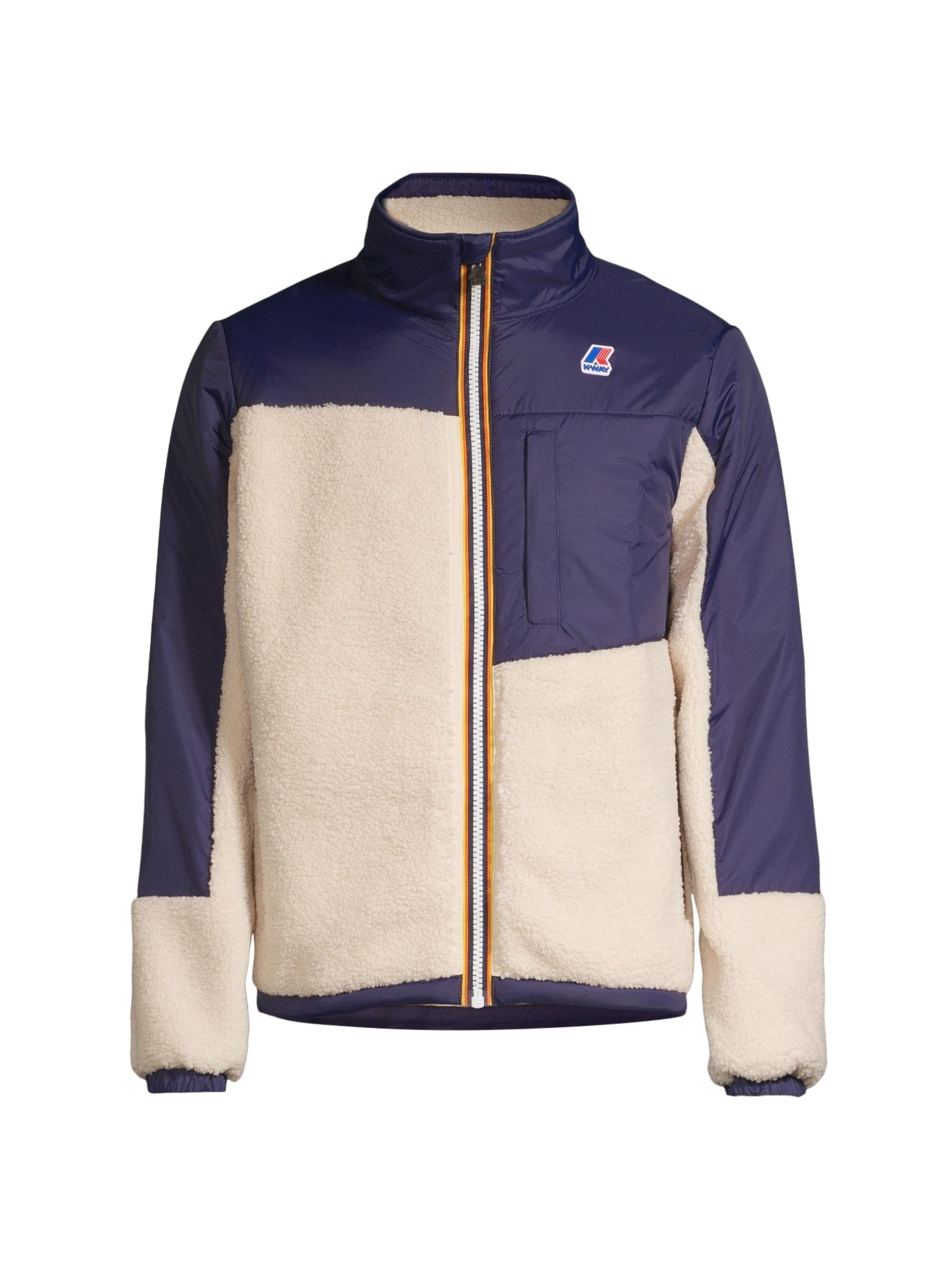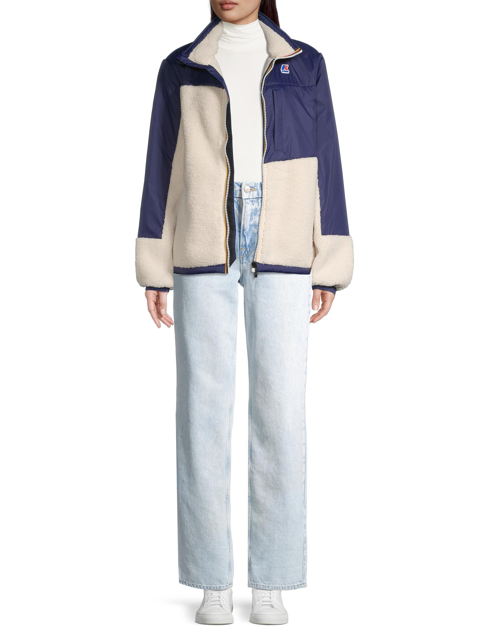 K-Way Unisex Collection Nersev Orsetto Zip-Up Jacket ECRU BLUE