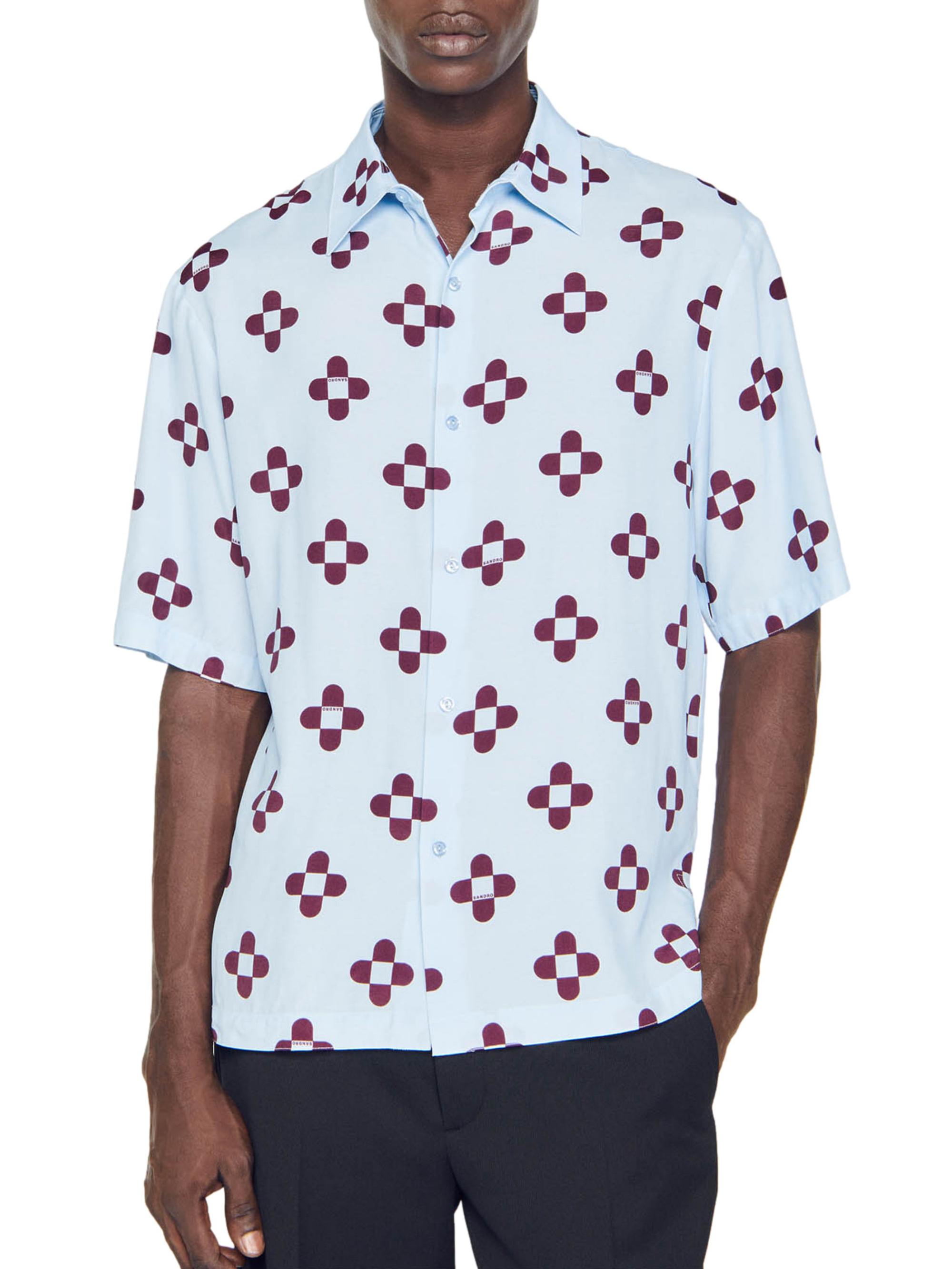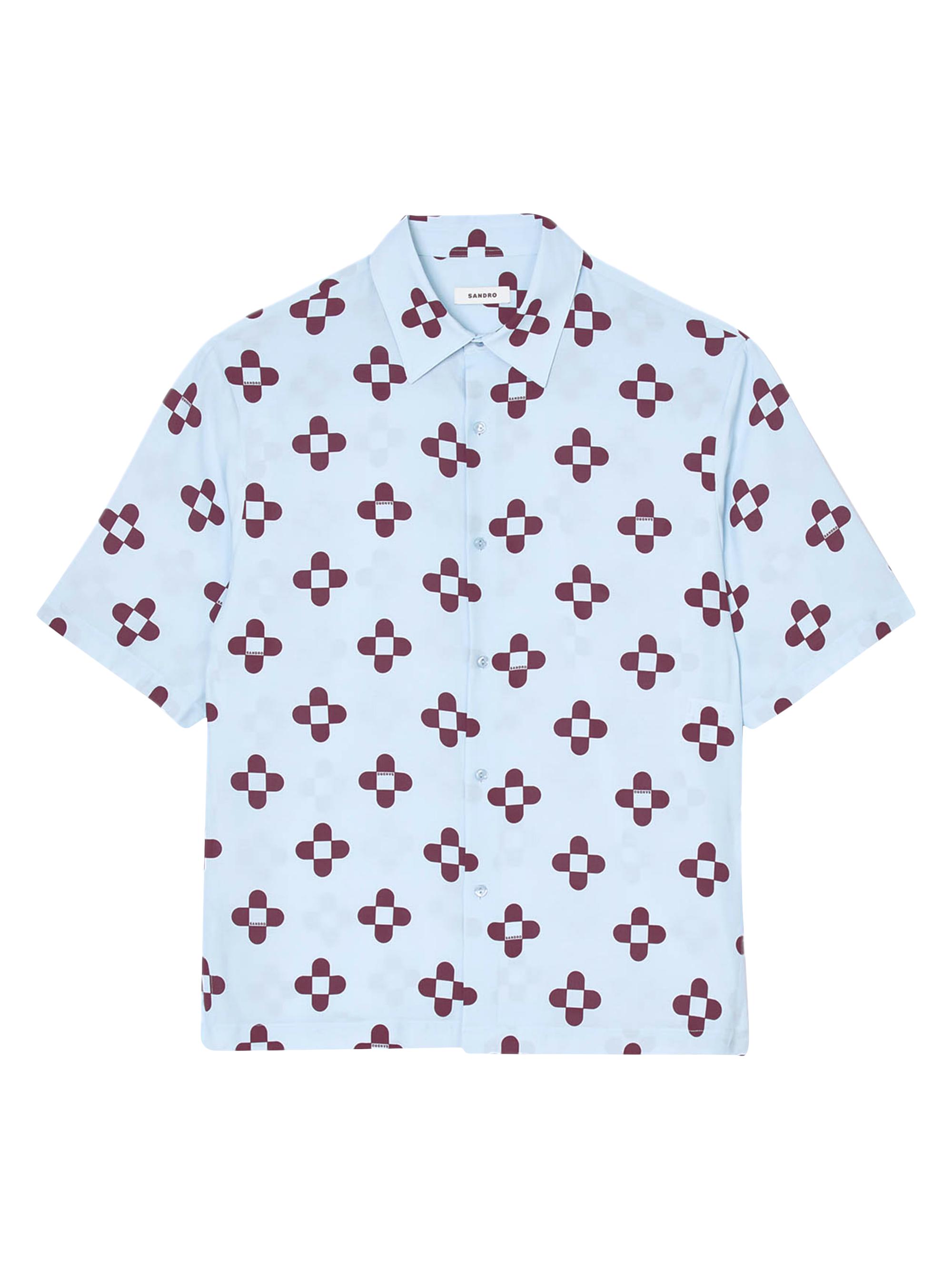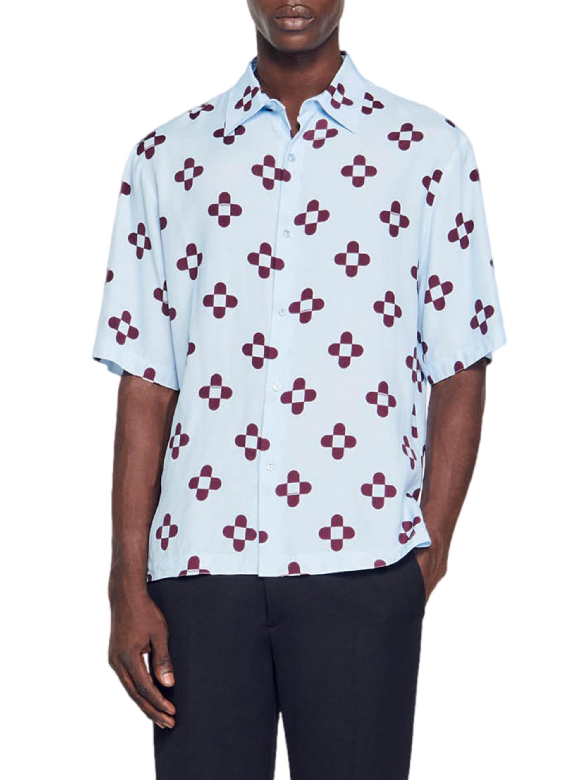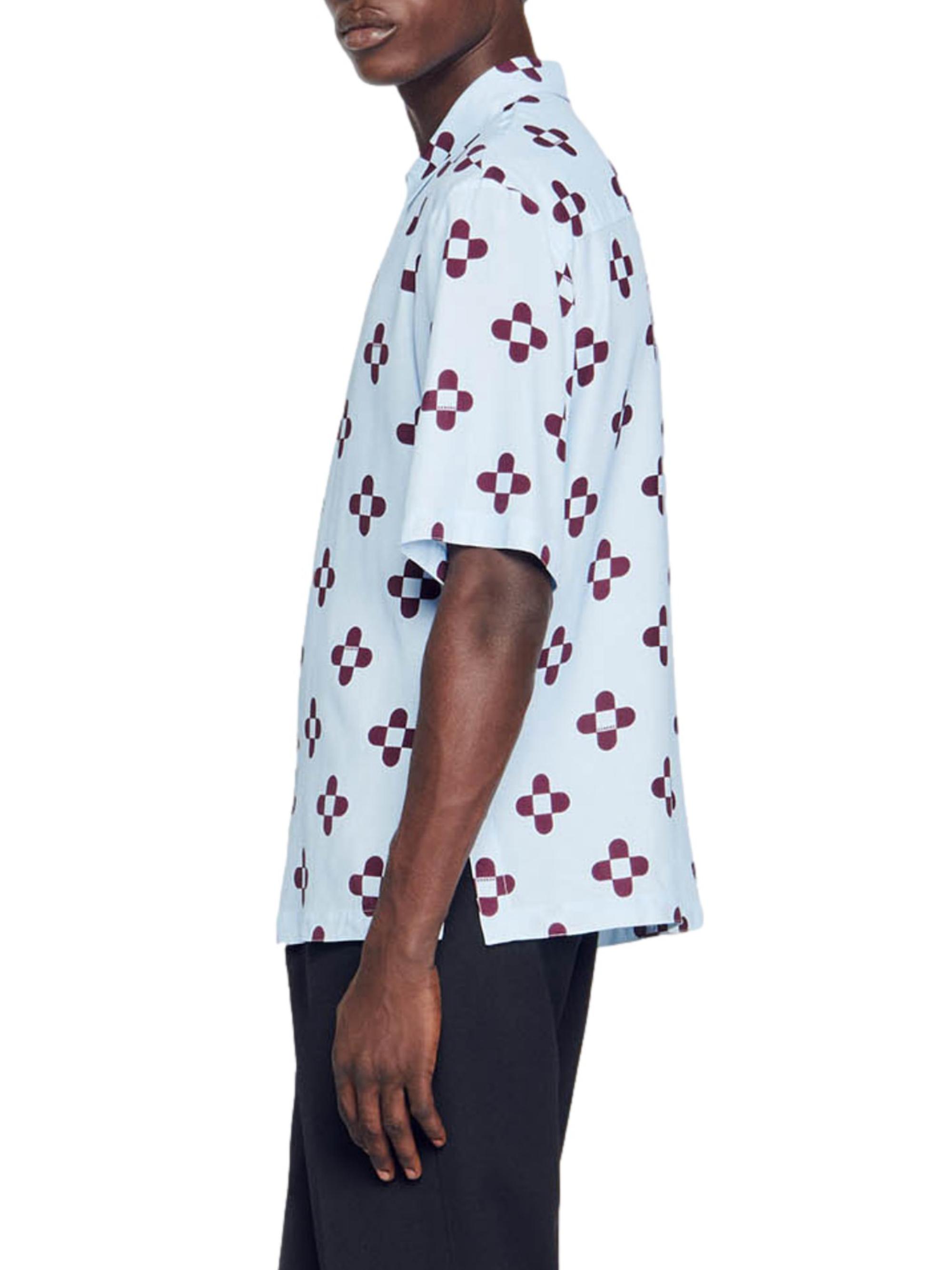 Sandro Cross Flower Short-Sleeved Shirt SKY BLUE