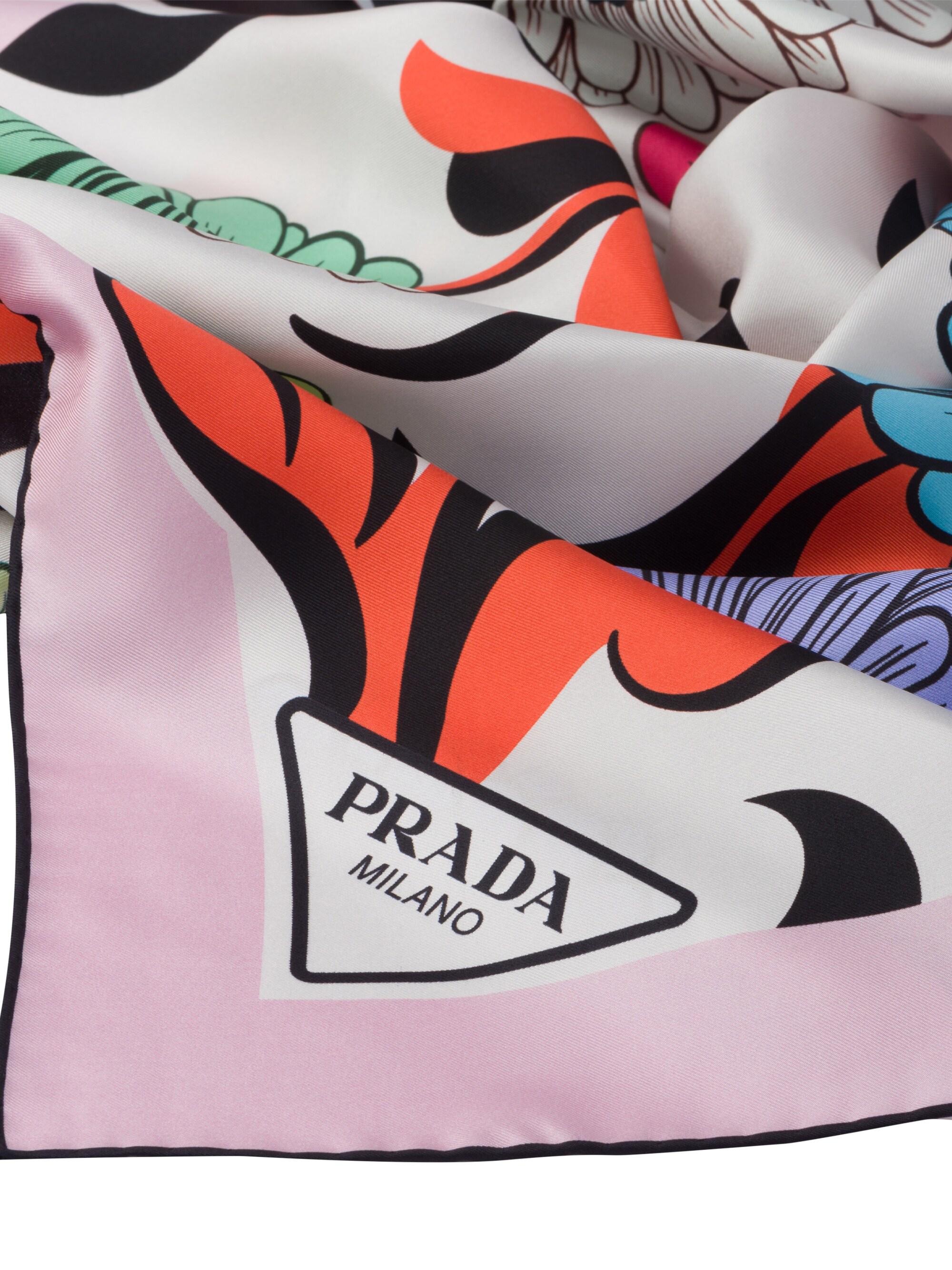 Prada Printed Silk Twill Scarf WHITE