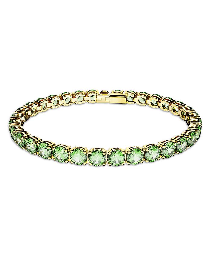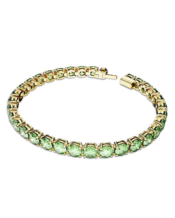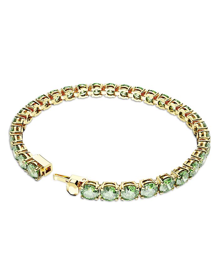 Swarovski Matrix Green Crystal Tennis Bracelet in Gold Tone