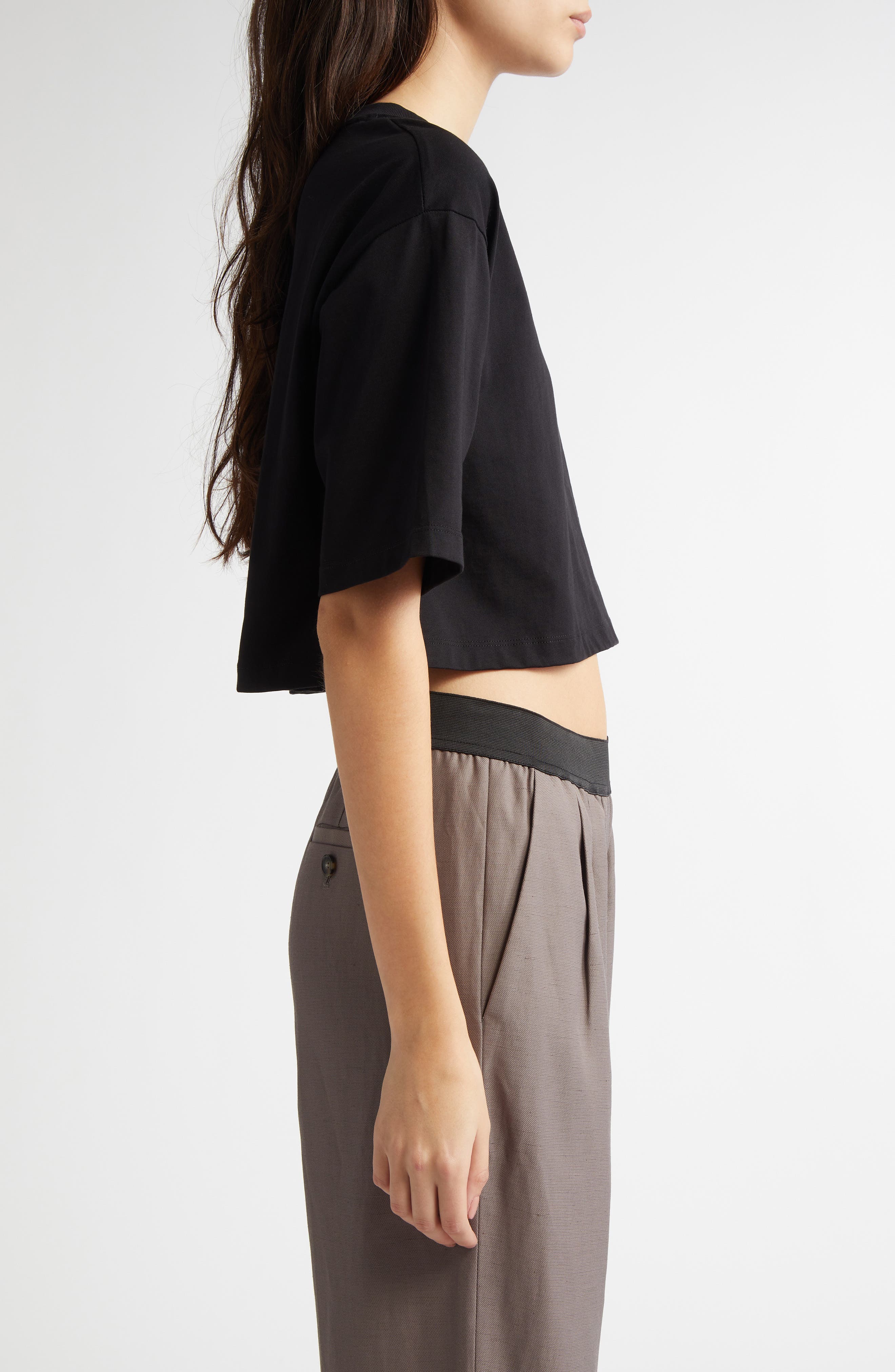 LOULOU DE SAISON Gupo Crop Supima Cotton T-Shirt_Black