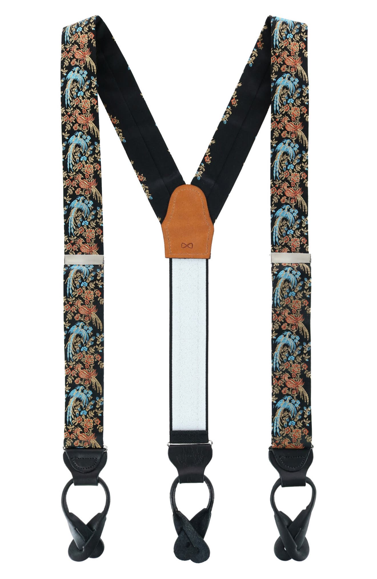Trafalgar Birds of Paradise Floral Silk Suspenders_Black