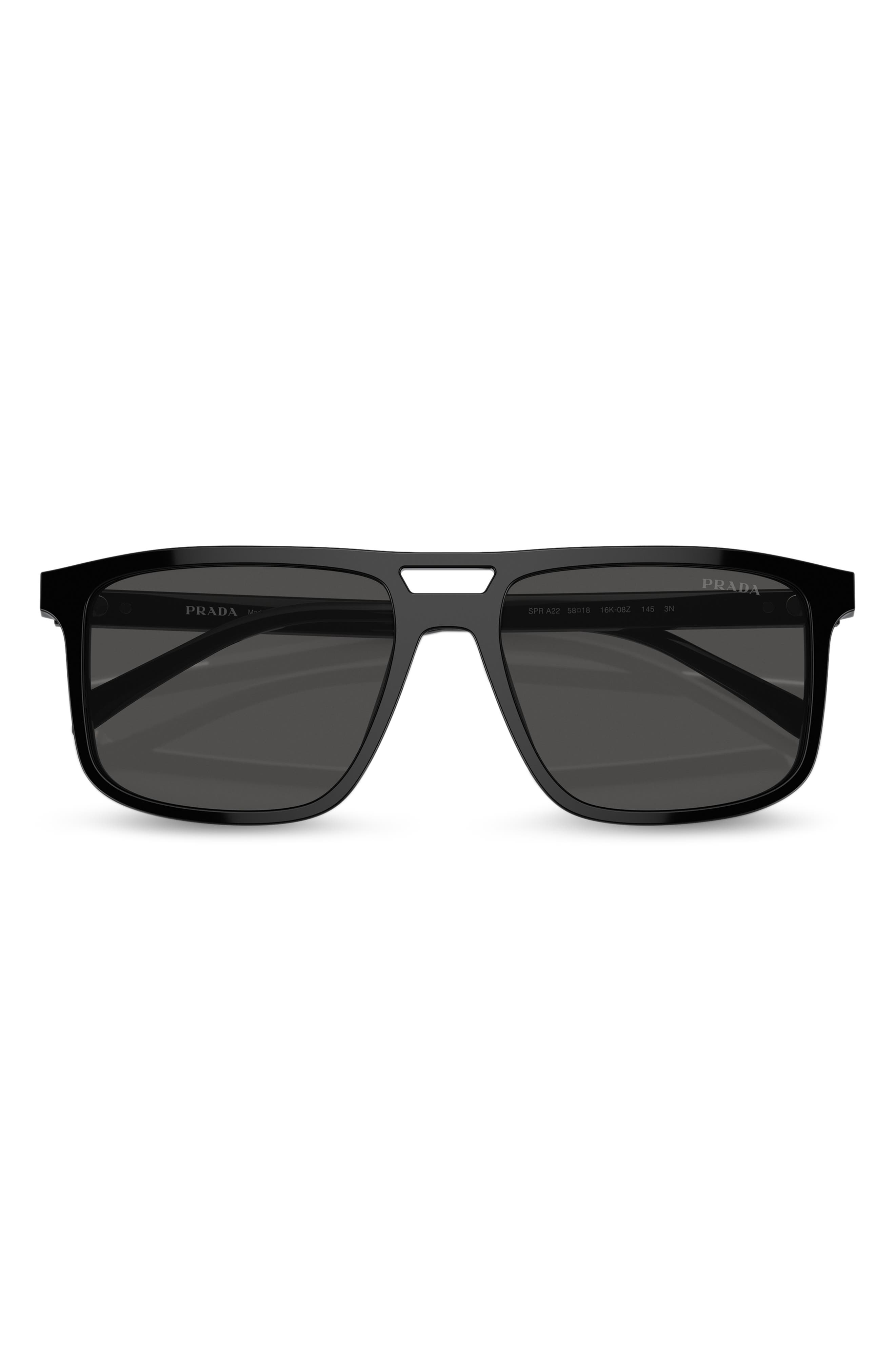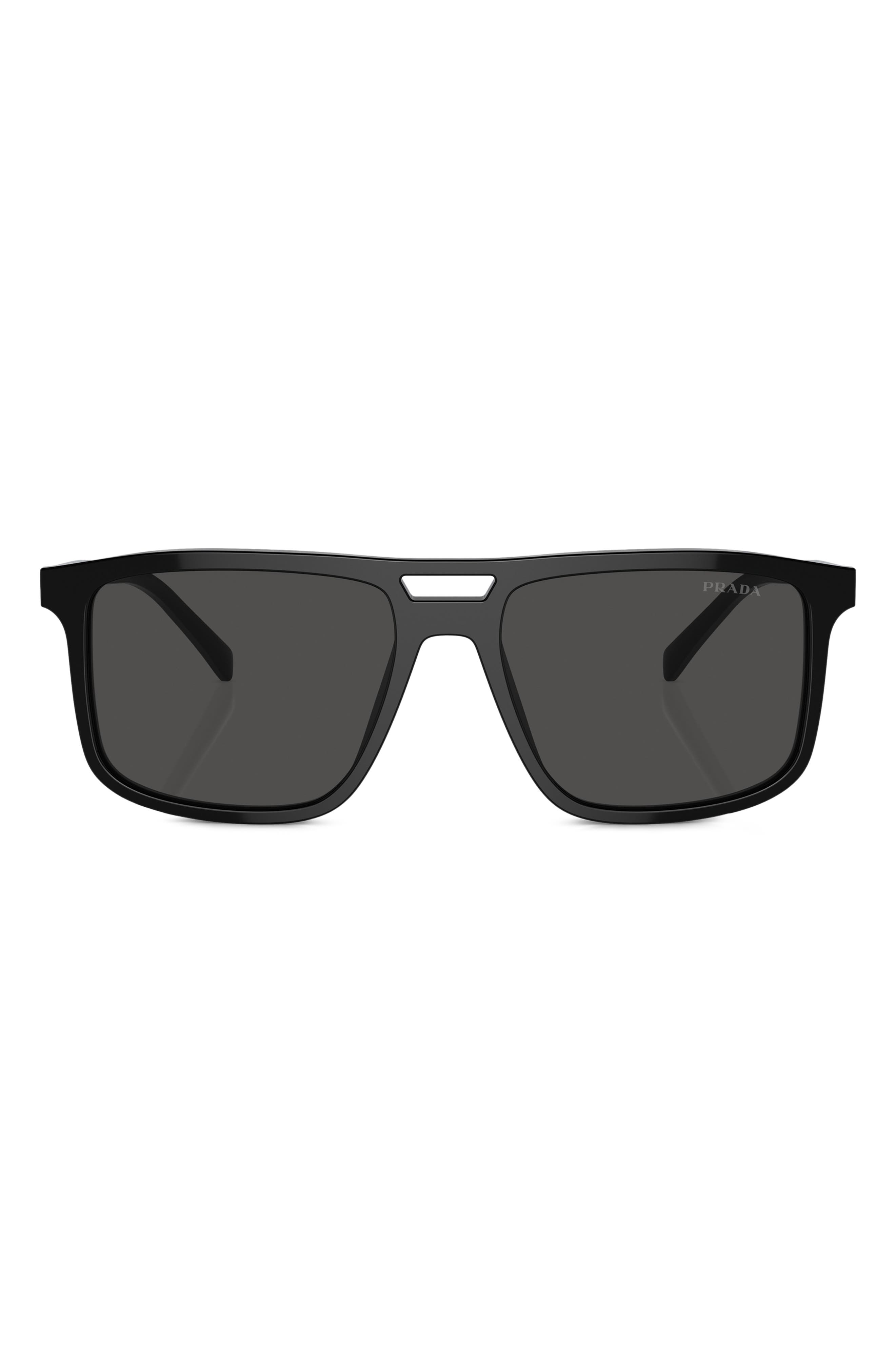 Prada 56mm Rectangular Sunglasses_Black/ Grey