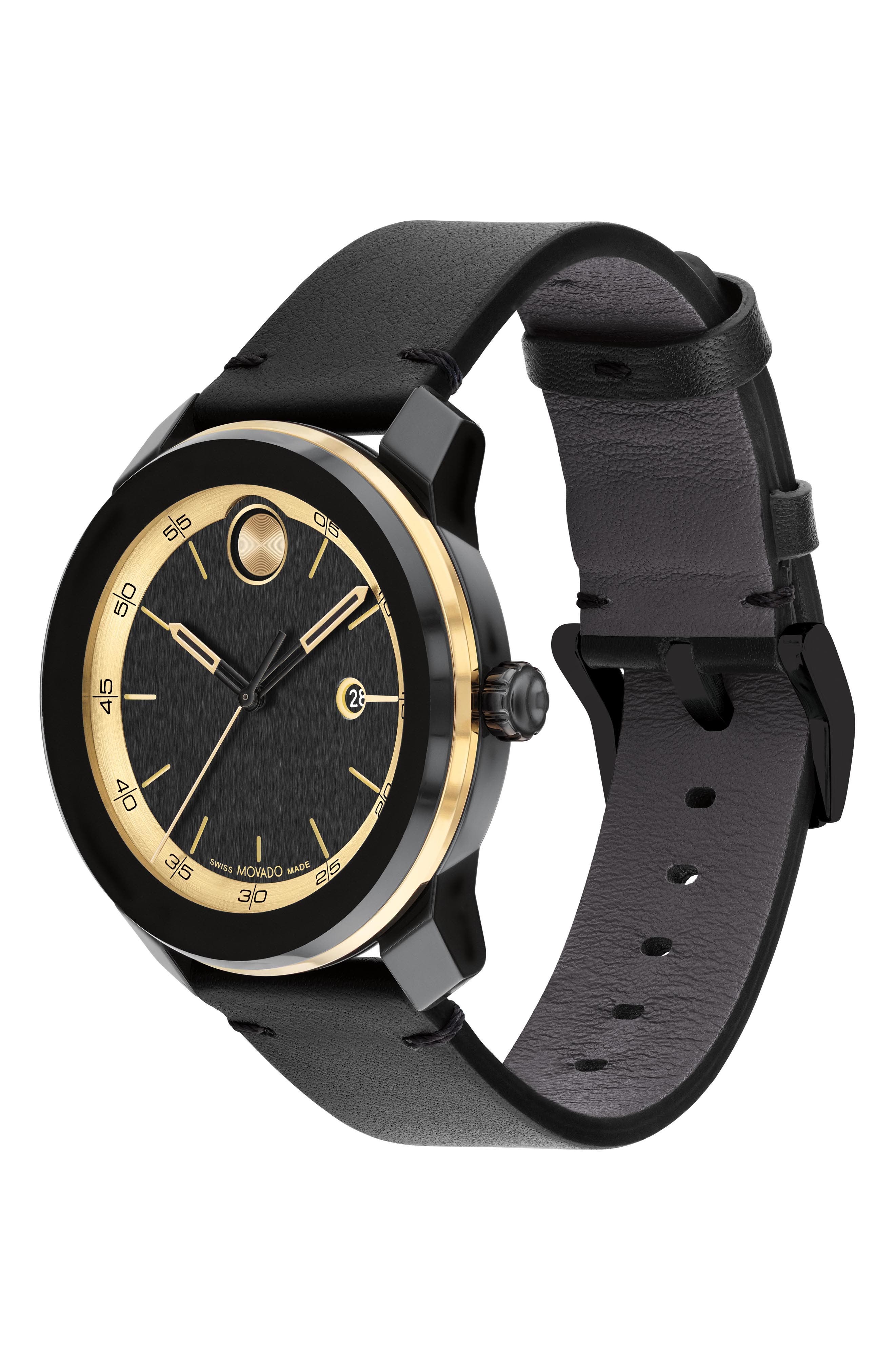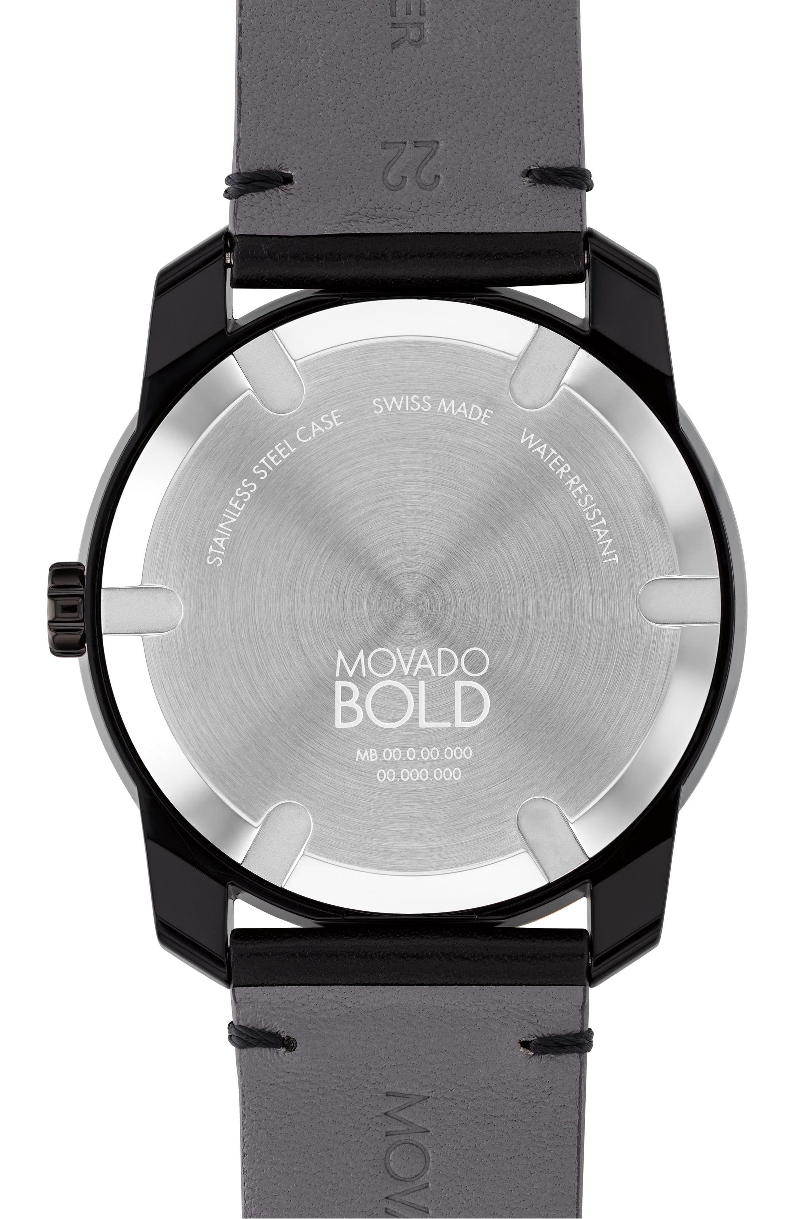 Movado Bold TR90 Leather Strap Watch 42mm_Black