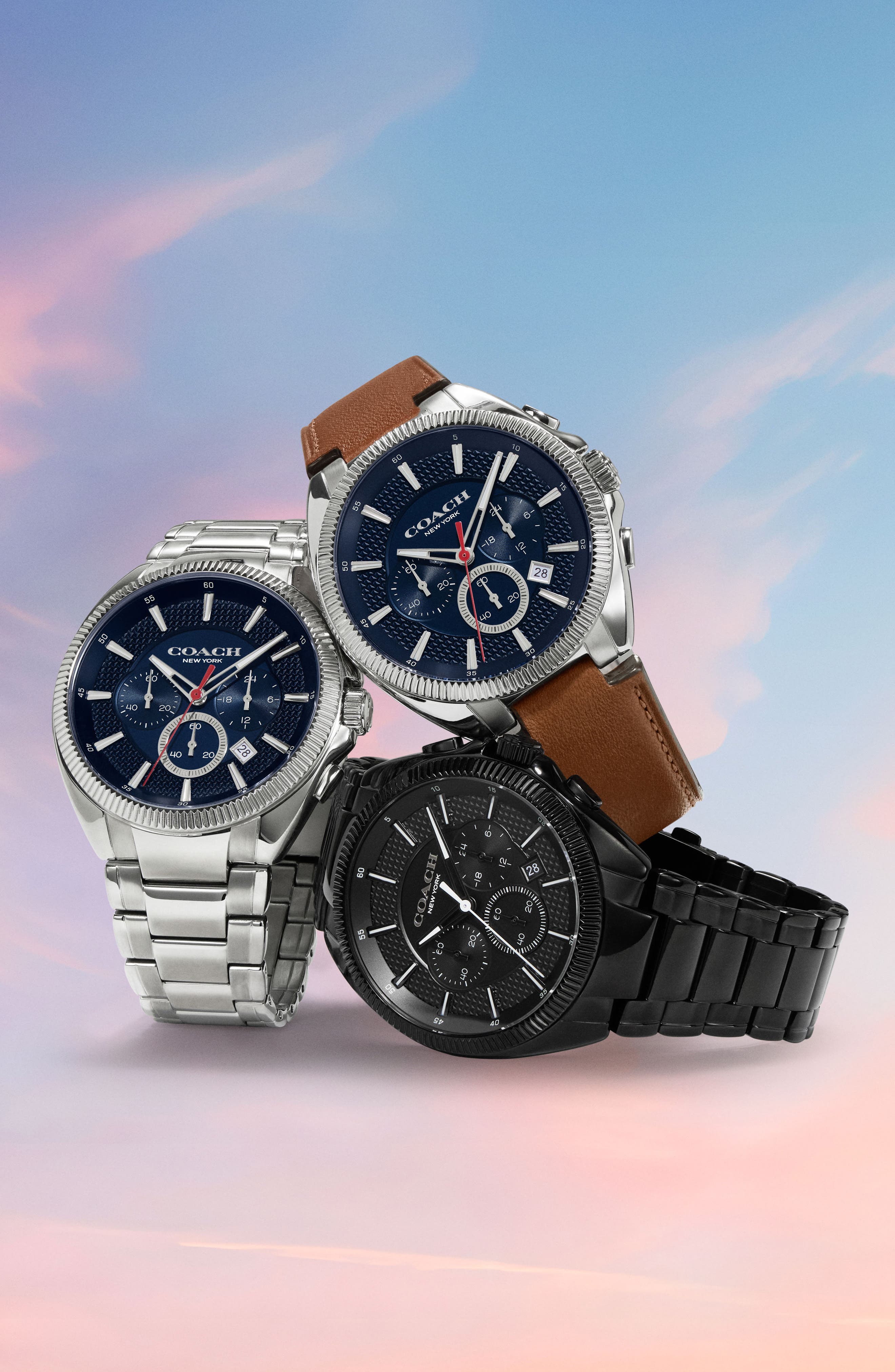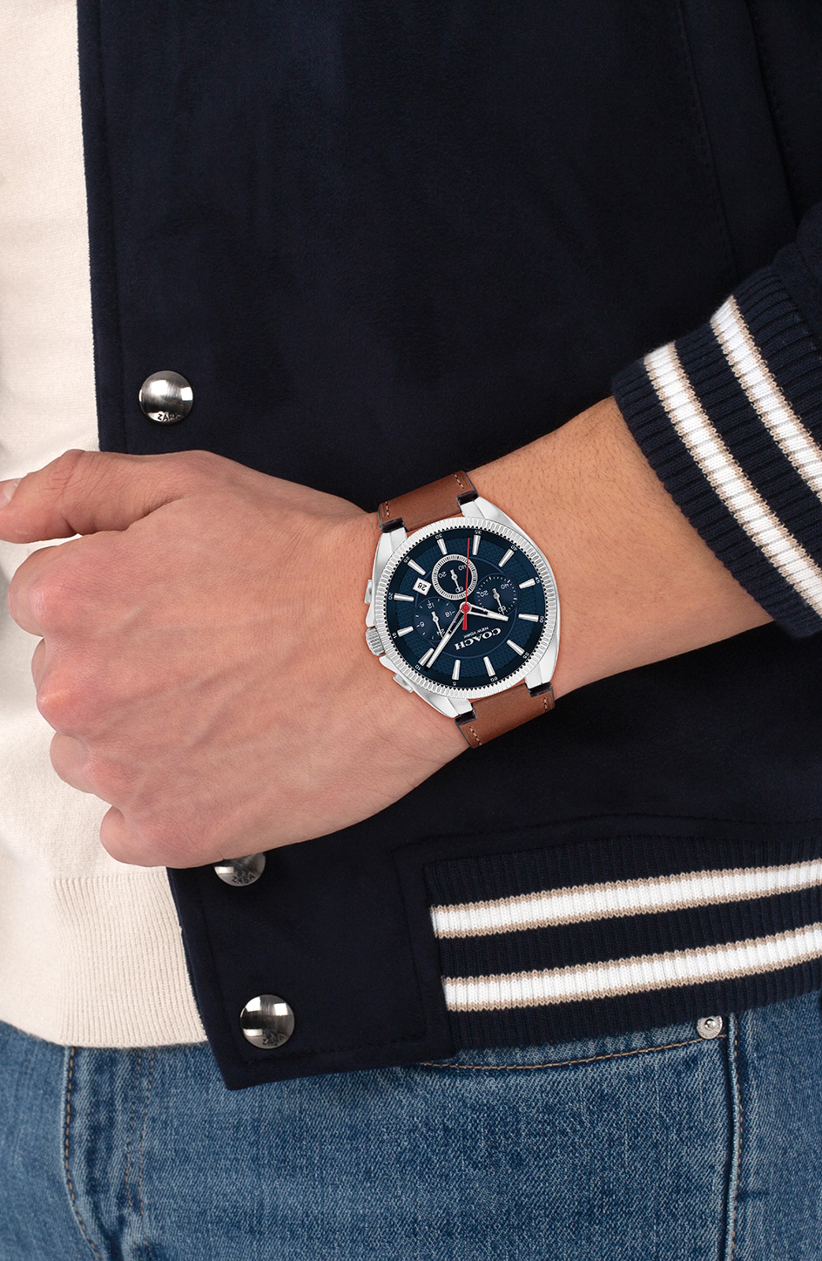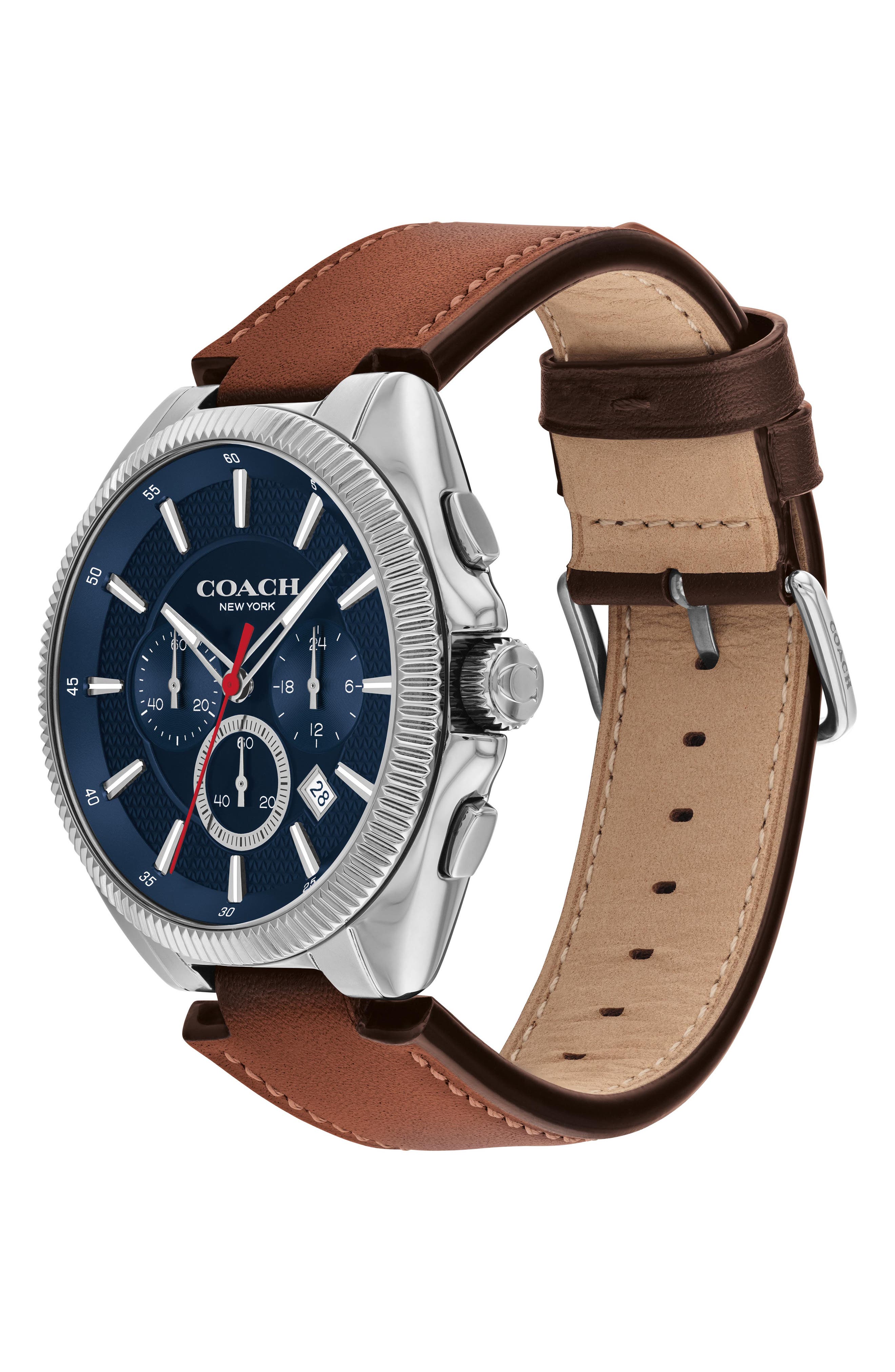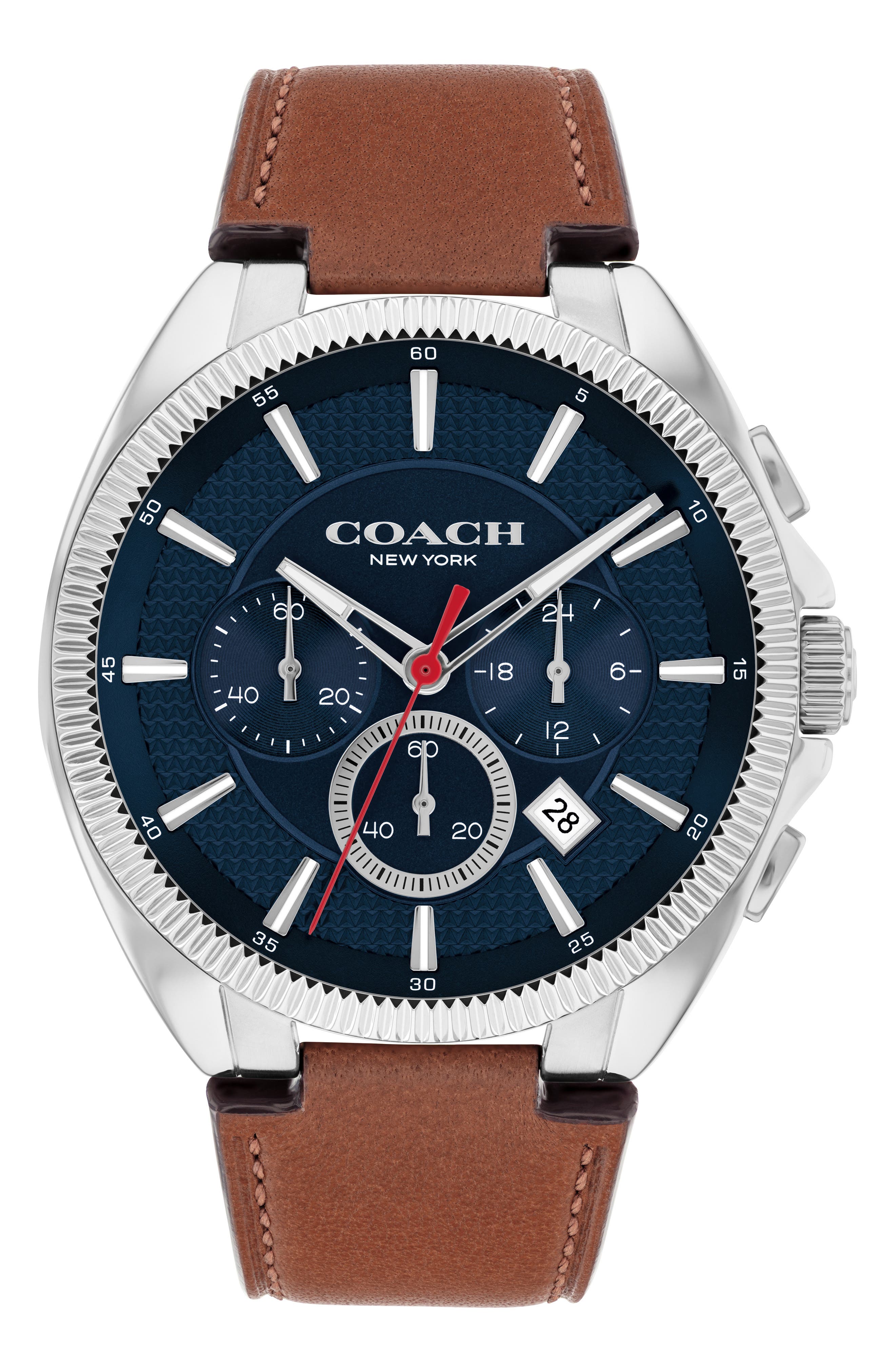 COACH Jackson Chronograph Leather Strap Watch 44mm_Navy