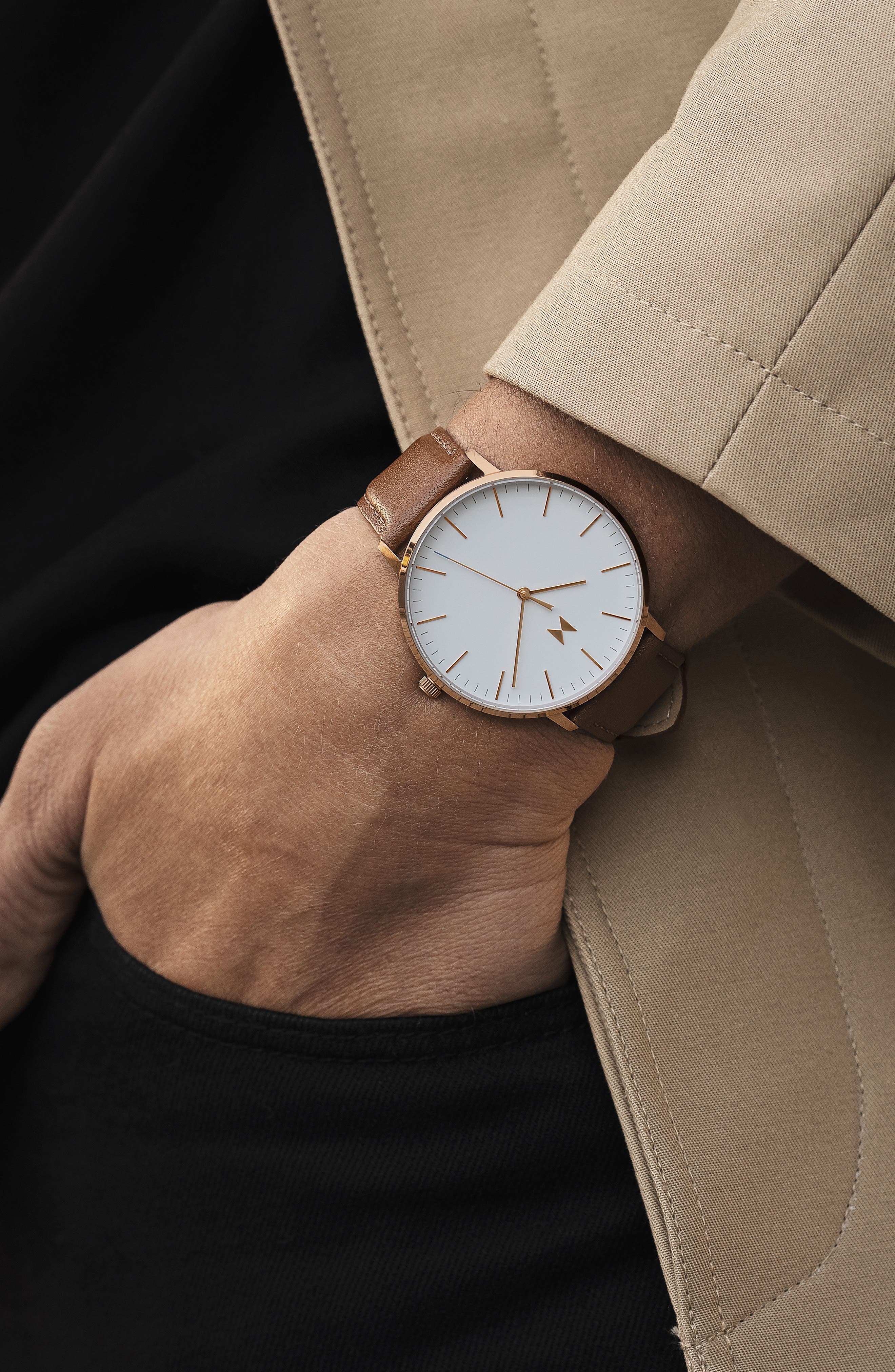 MVMT Legacy Slim Leather Strap Watch 42mm_Brown/White