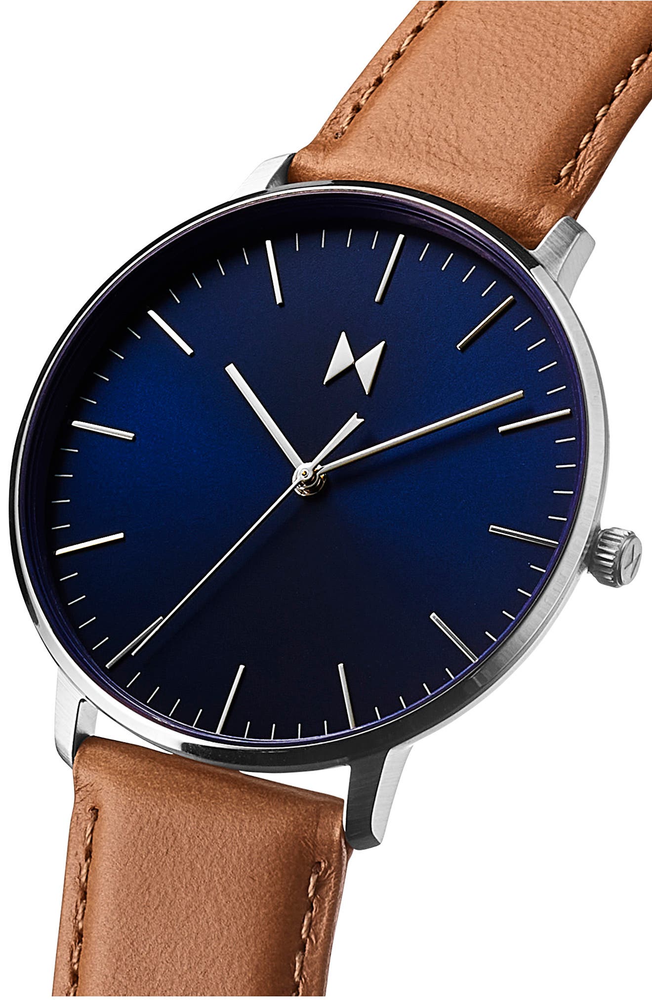 MVMT WATCHES Legacy Slim Leather Strap Watch 42mm_Blue