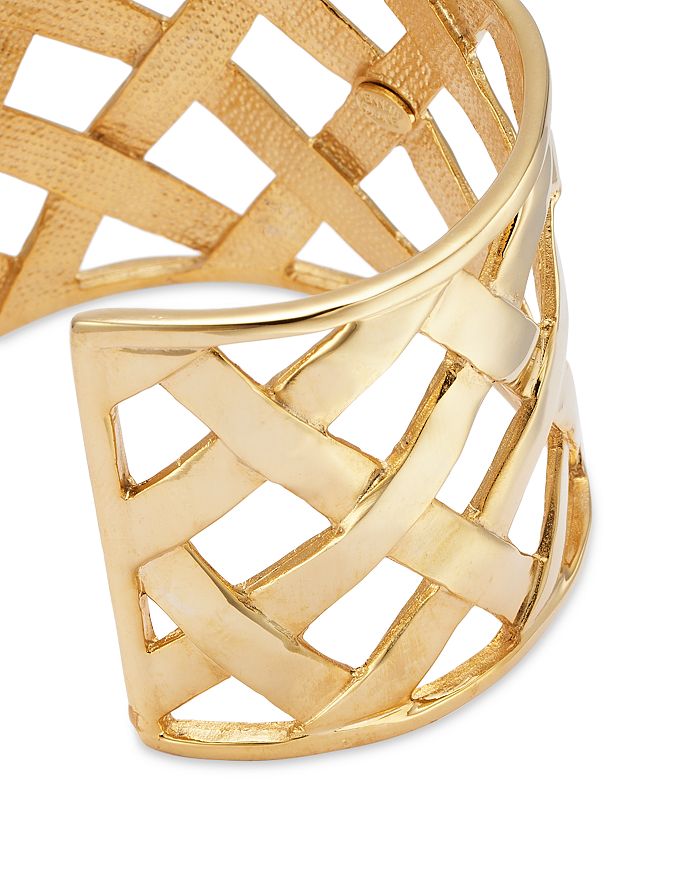 Kenneth Jay Lane Basket Weave Cuff Bracelet in Gold Tone