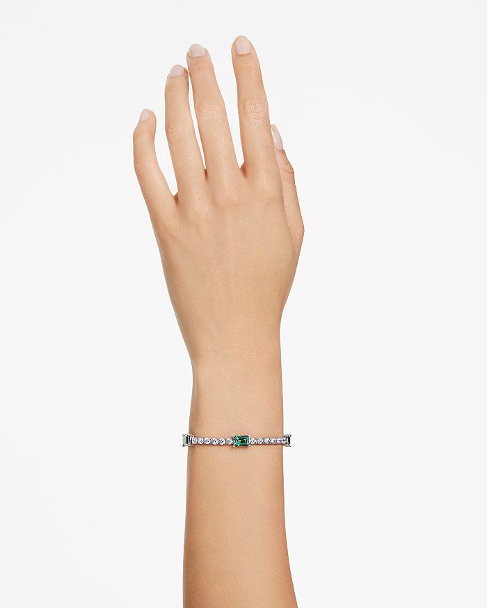 Swarovski Matrix Round & Emerald Cut Tennis Bracelet in Rhodium Plated