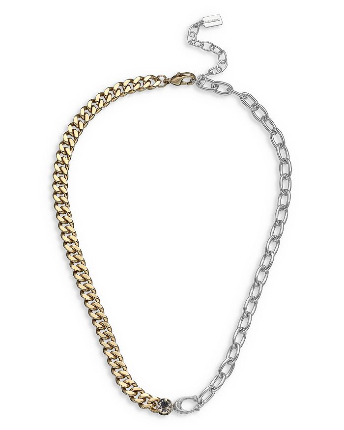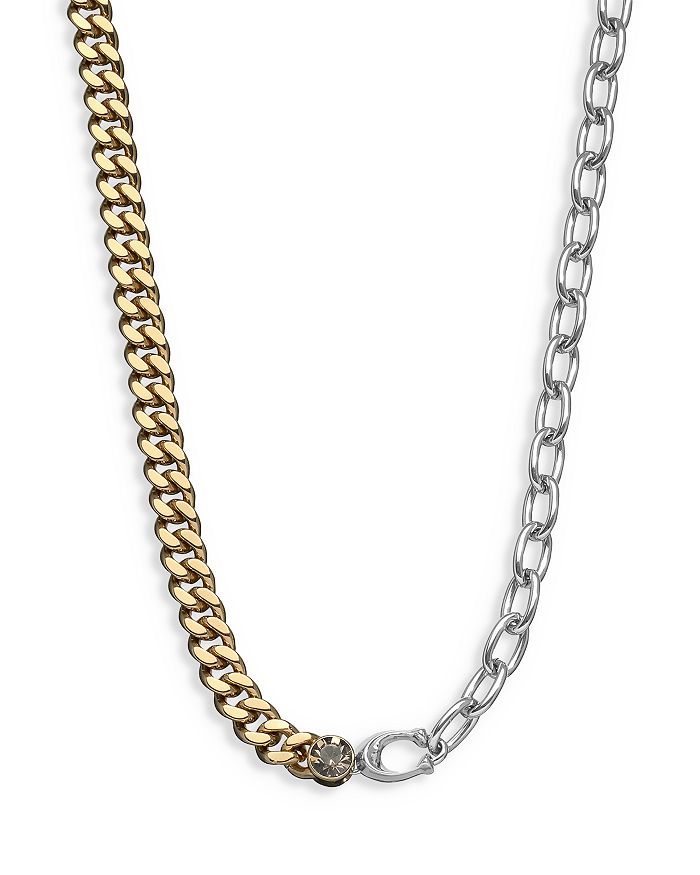 COACH Signature Sculpted C Accent Mixed Chain Collar Necklace in Two Tone, 16-18