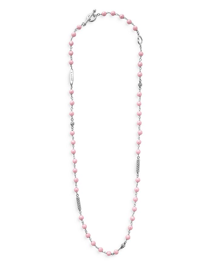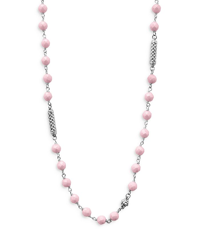 LAGOS Sterling Silver Caviar Icon Pink Ceramic Bead Station Collar Necklace, 16-18