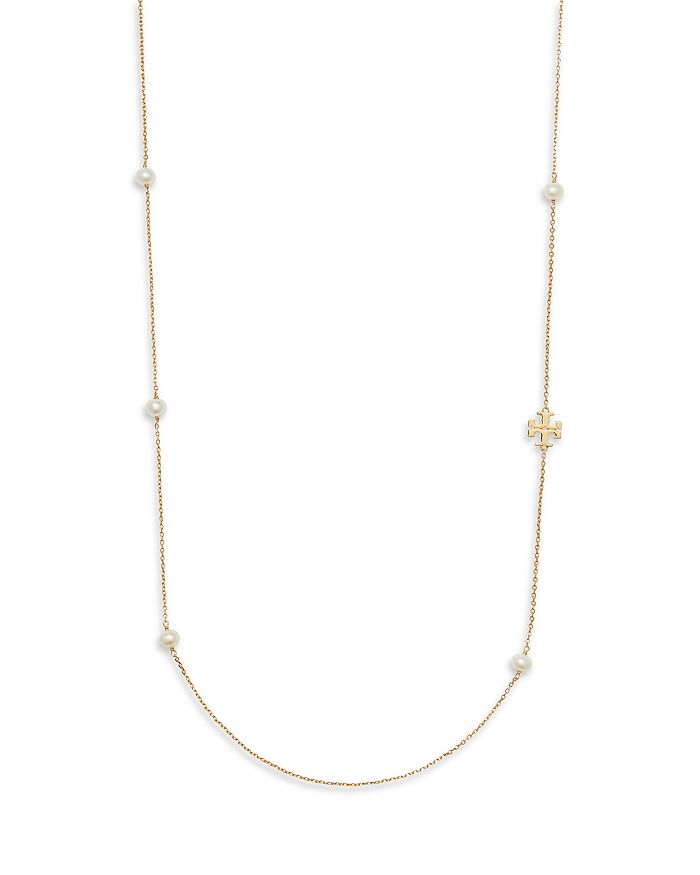 Tory Burch Kira Cultured Pearl & T Monogram Strand Necklace, 38