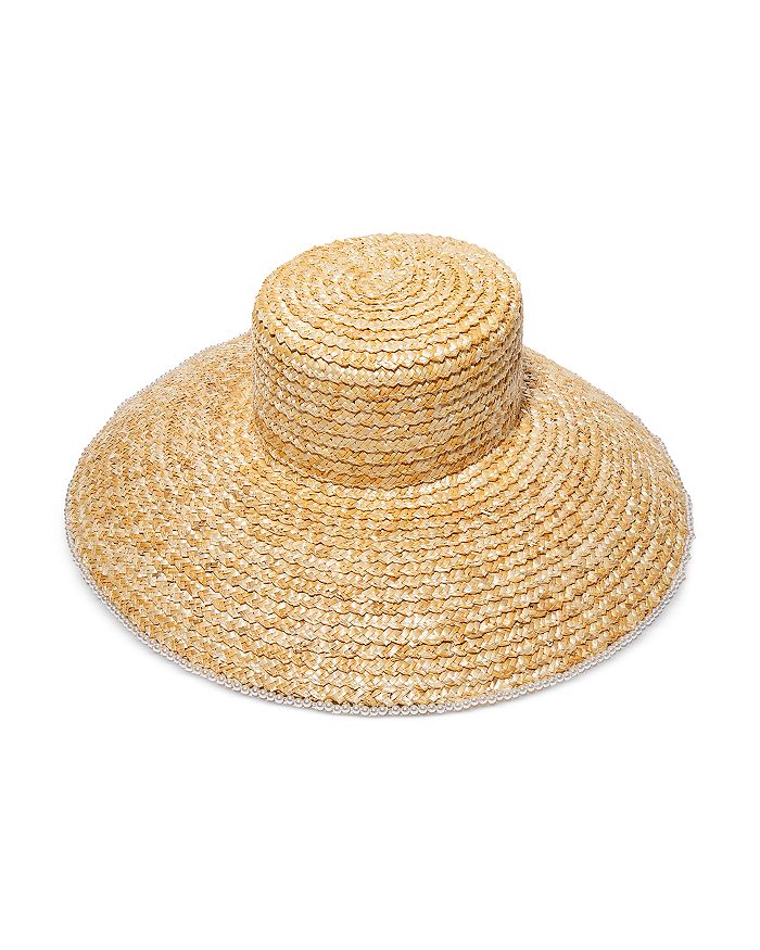 Lele Sadoughi Faux Pearl Edge Straw Hat